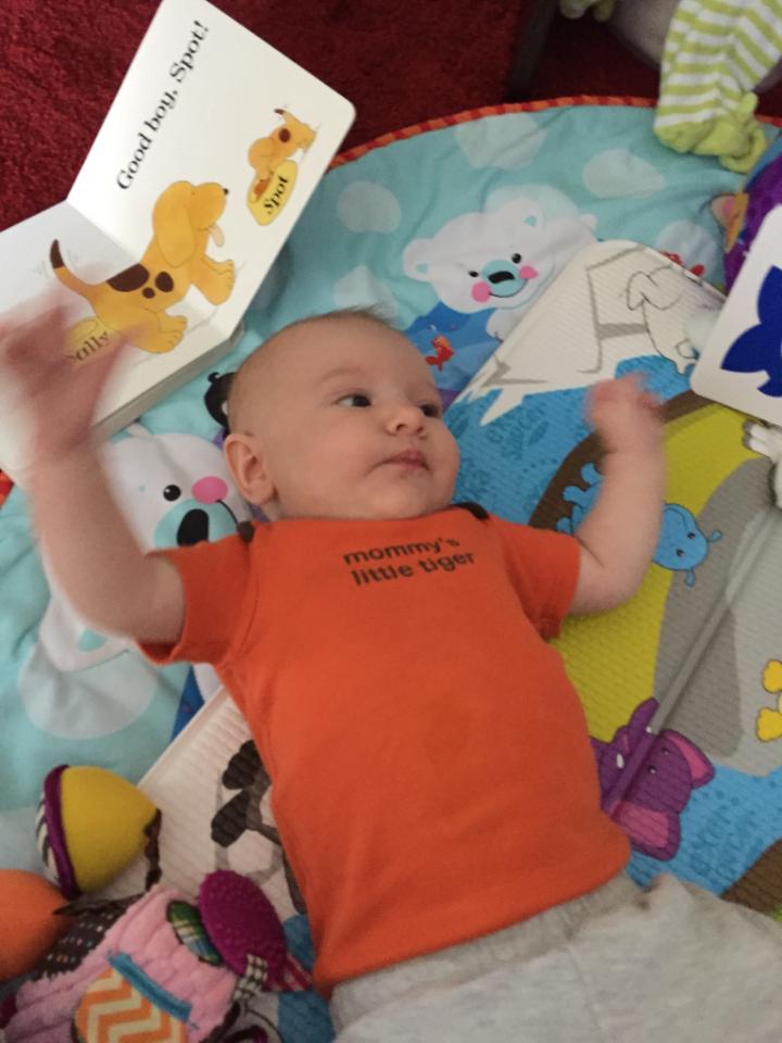 May 2, 2015: What a busy day! A walk in the park, hanging at the farmers market, bath time, and watching the Tigers game with Aunt Ellen. Here I am celebrating when Miggy hit a home run. I had so much fun with Aunt Ellen that I didn’t want to eat or sleep!
