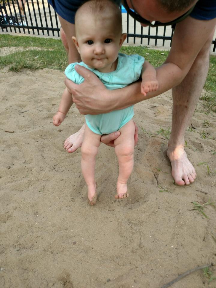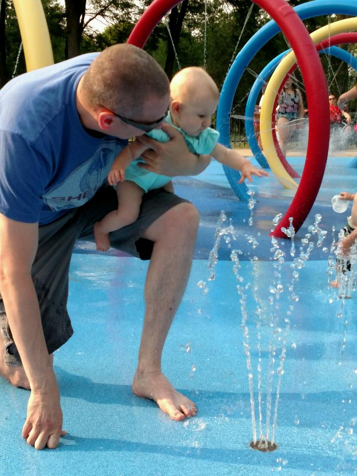 July 6, 2015: I love playing in the water when it’s bathtime. So you could imagine how excited I was when we showed up at a park with special fountains made for playing in the water – how awesome! Mommy and daddy called it a splash pad. We are very lucky because it is just down the street from our house. There were lots of other boys and girls playing. The water was a little chilly so I only got my fingers and toes wet, but when I get bigger I’ll play just like the big kids. Daddy also put my feet in the sand. Sand is weird.