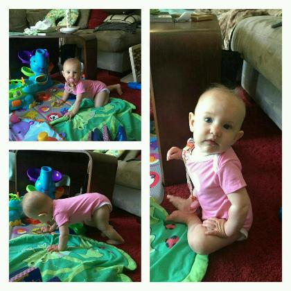 July 28, 2015: Aunt Ellen came to visit again today and we had a lot of fun. Mommy and daddy have been telling me how cool she is, but I had to check her street cred on my own. I was showing her some of my new break dancing moves and I ended up plopped down on my butt. She was impressed. I’ve never gone from my tummy to sitting position before, but I played it off like I had…unless the look on my face gave it away. I’ll show mommy and daddy another time. Mommy will have another milestone to check off my list, and daddy will be impressed with my new breakdance freeze.