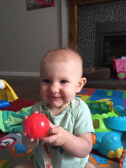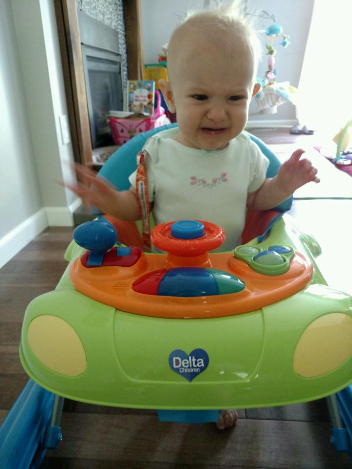 July 29, 2015: I can’t believe I was scared of Aunt Ellen when she came over to hang out with me last week. She is so cool and we’ve been having a blast! We laugh really hard at each other’s jokes, and she gets so impressed with all my tricks. Today I showed her how I like to move my toys from one hand to the other, and she was like “whooaaa!”. Later, when I was sitting in my car walker, I was getting very frustrated with the steering wheel. She taught me that road rage is not the answer and I was like “shut the front door!”. And we laughed and laughed.