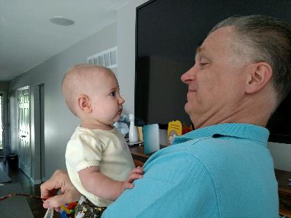 August 21, 2015: Grandpa’s brother came to visit us. Mommy called him Uncle Ray. I hadn’t met him yet because he lives in China and doesn’t come to Michigan much. She said China is very far away and it takes a long time to get there by airplane, whatever that is. I don’t think I’ll be going there anytime soon. I can barely handle short car rides. I stared at him a long time. At first I thought it was grandpa. But after closer inspection, I noticed he had a smoother face and gray stuff on his head. That scared me so I cried. Good thing mommy was there to rescue me. I’ll have to ask grandpa what he knows about this guy, and why grandpa doesn’t have any of that stuff on his head.