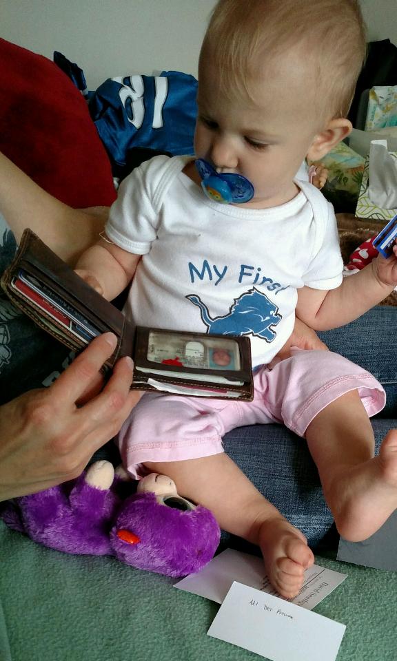 September 27, 2015: I found daddy’s wallet. There were lots of cards in it. After I picked through all the business cards, I found the good stuff – money! The paper money was nice, but I liked the plastic ones better. They were so shiny and pretty. Mommy said I had to put it all back and give daddy back his wallet. I think I’m gonna look for grandpa’s wallet next because he can’t say no to my cute face. Daddy just called me a grifter. Maybe daddy wouldn’t call me that if he knew my plan was to use the plastic buy a puppy?