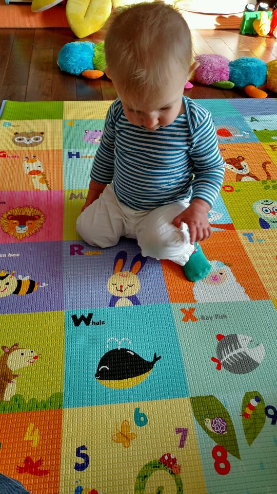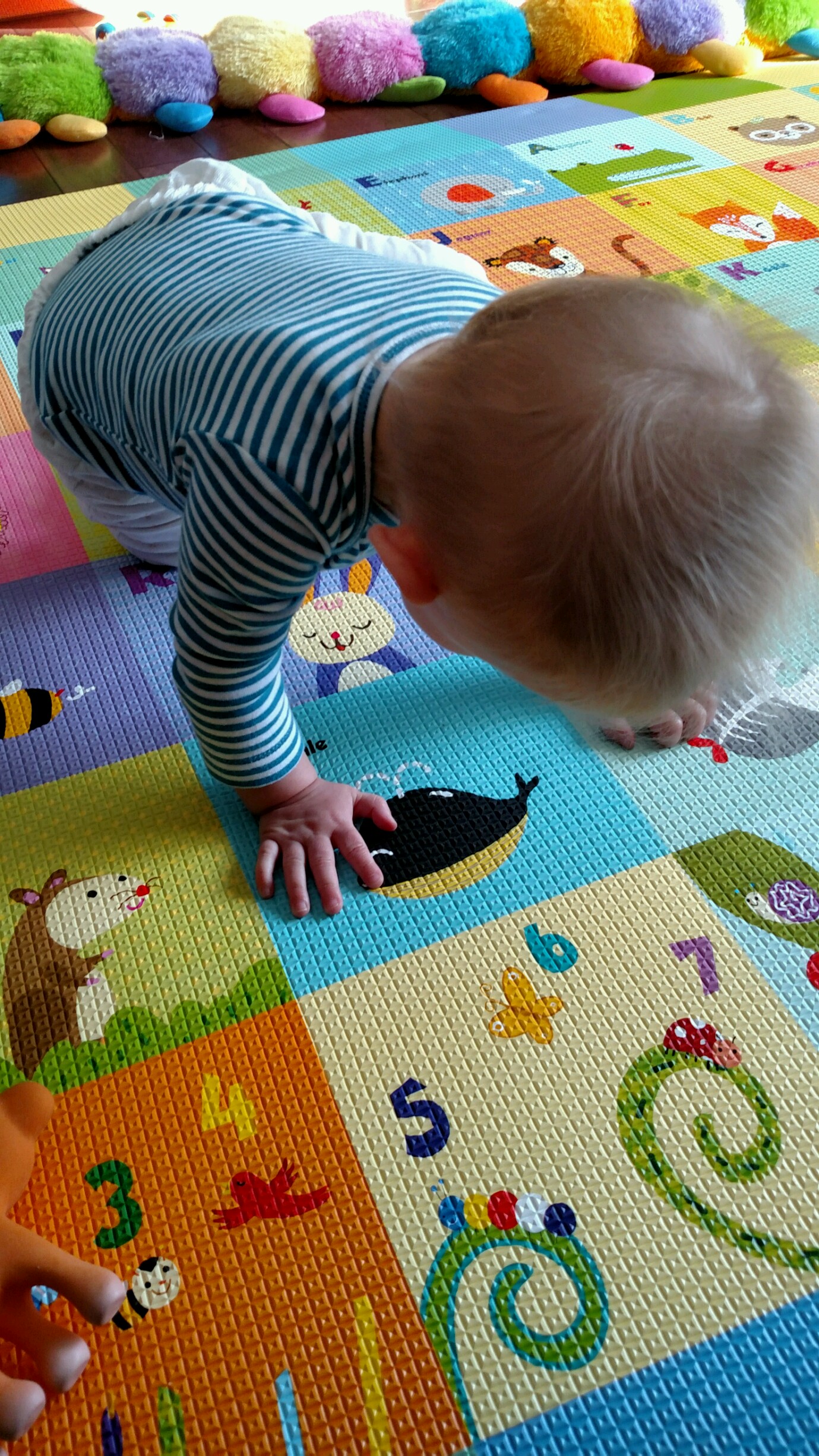 October 22, 2015: My play mat has two sides. One side has a woodland scene with a bunch of animals. I had been pointing out the butterflies and flowers on that side for a long time. It got to be pretty boring. The OTHER side has a ‘W is for Whale’ on it. I mean, there are other animals and letters too, but they aren’t as good as ‘W is for Whale.’ Mommy flipped my mat over yesterday and I’m so geeked to look at it again. I like to kiss and snuggle the whale. Today I wore my sailor outfit so I could get the full effect. Mommy thinks maybe I’ll be a marine biologist. She says they get to swim with Wwwwwhales. I love to splash in the water. I love animals. I’m really smart. And, I look good with my hair wet. Y is for Yes!