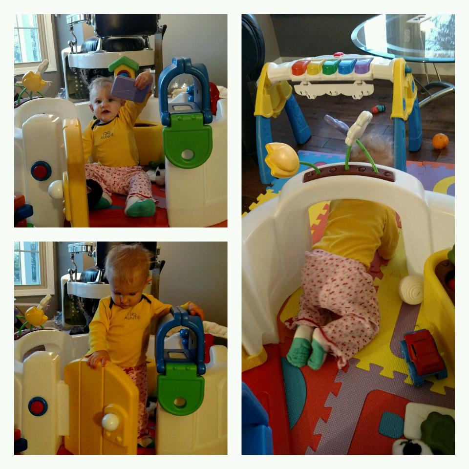 November 3, 2015: I have a pretty neat yard setup in our living room. Mommy found it at a garage sale this summer for $10. I don’t know how much that is, but it’s worth every penny. It has a door, doorbell, mailbox, birdies, flowers, vegetable garden, and an arch. It’s so cool because everything around here is so much bigger than me, but my yard is my size. My favorite part is the mailbox. I love checking it for mail. I still think I might want to make deliveries like mommy’s friend Katie. Daddy said that I’ll have to be able to deliver the mail under any circumstances and be very fast. I’m pretty fast, but I want to be prepared so daddy is helping me train. I practice opening and closing the door, putting mail in the box, and crawling under the arch. It’s all pretty easy. Now I just have to get faster!