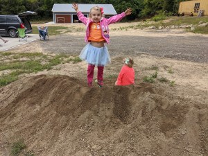 September 6, 2020: When you work on a farm you’re supposed to get dirty. So what did daddy expect we would do when we visited Aunt Ellen today. We got to help feed the chickens, pick eggs, dig for rocks, and loosen Uncle Aaron’s soil pile. All that work means we’re going to get a little dirty.