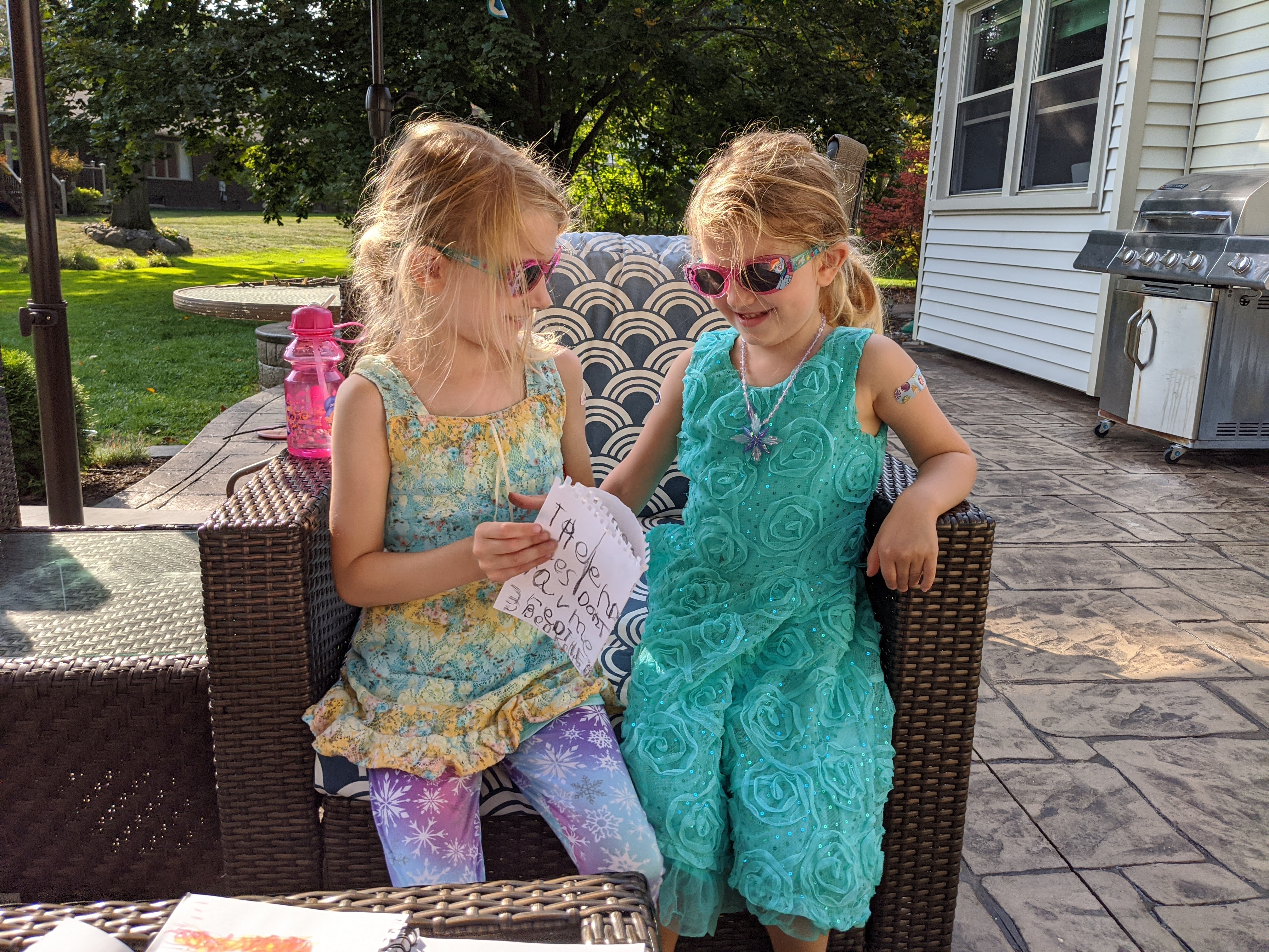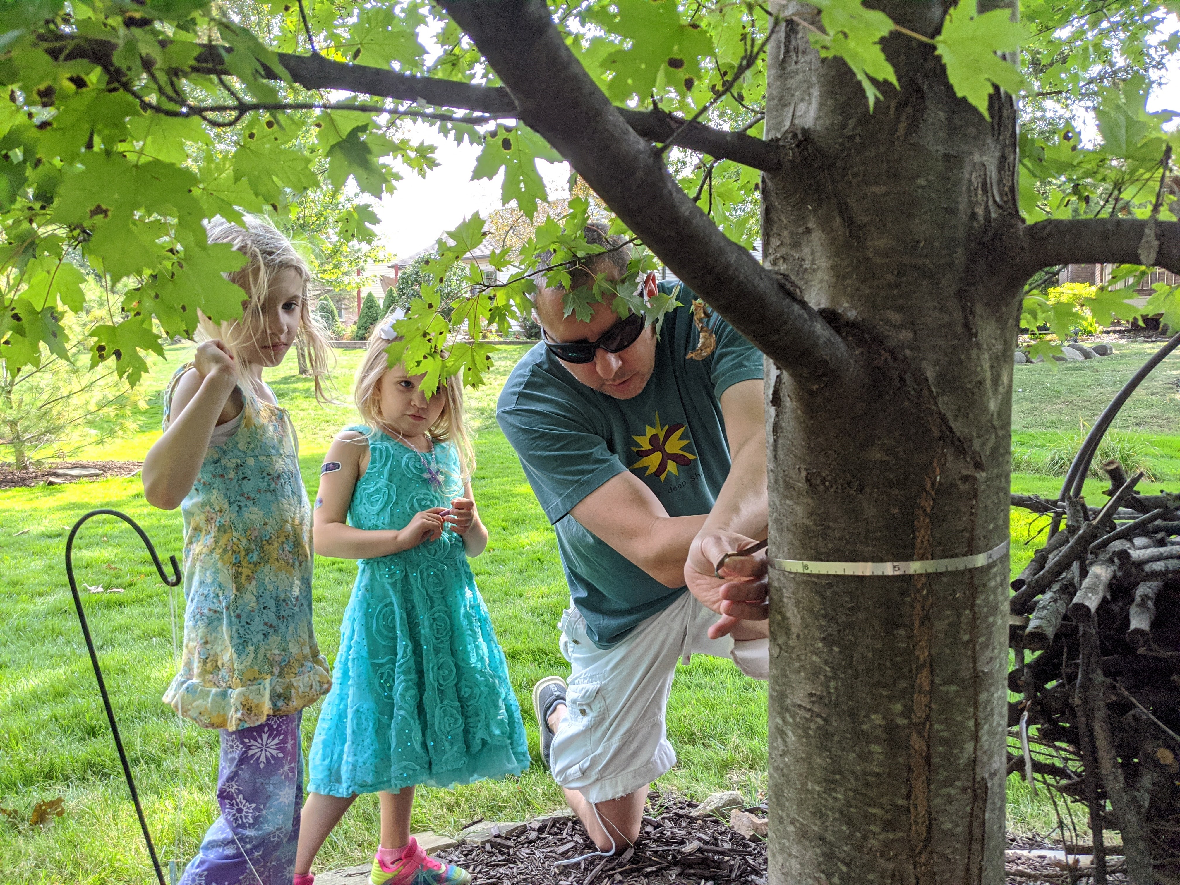 September 27, 2020: Mommy and daddy told us today is the last day of really nice summer weather. Tomorrow it’s going start the cool and rainy weather. We tried to play outside a bunch. Daddy even read from our school book in the clubhouse. Then he showed us how to measure trees. We both picked our favorites and wrote a “J” and “F” on them. We finished the day with a fire in the firepit and some s’mores. If today was the last day of summer weather, we did our best to say goodbye.