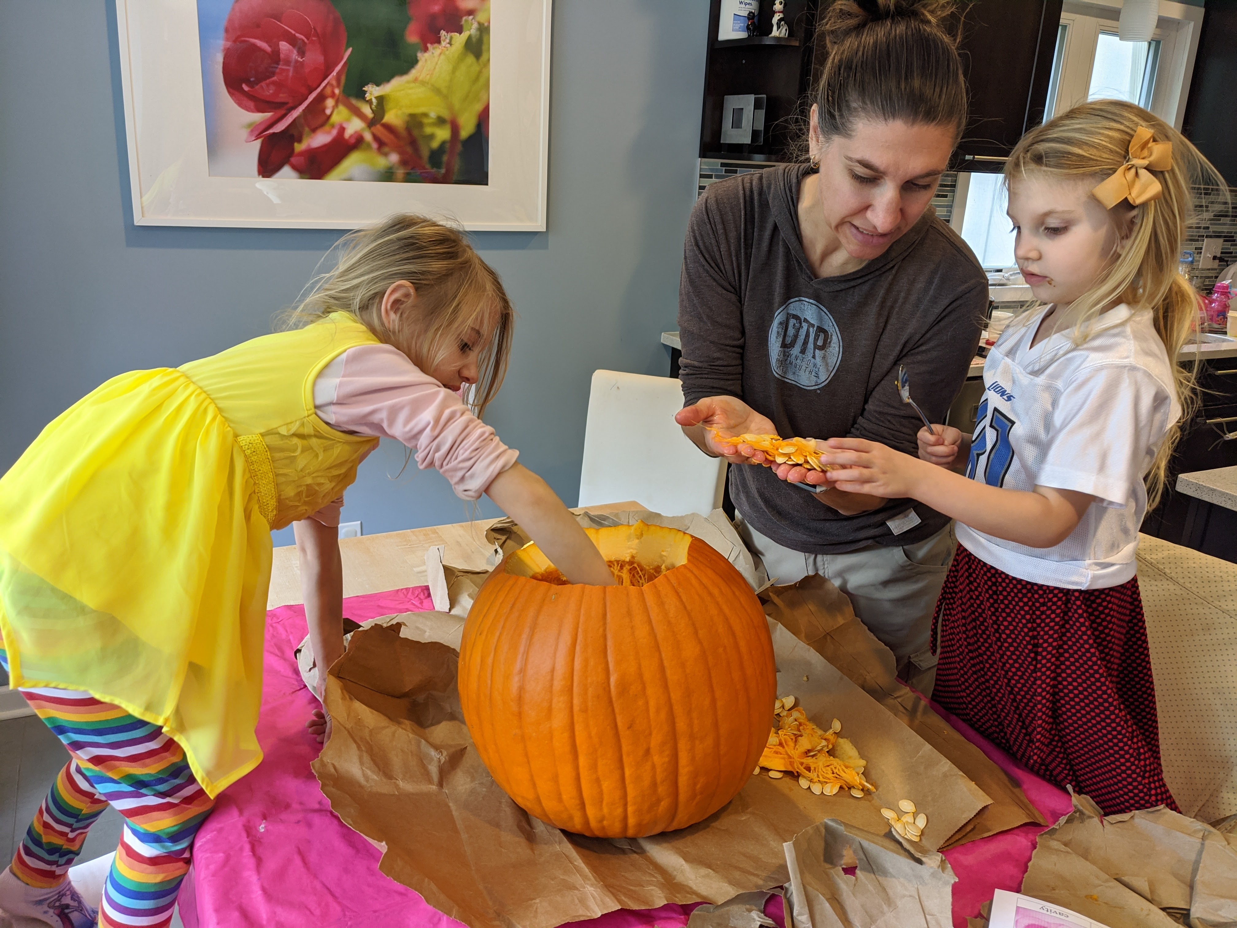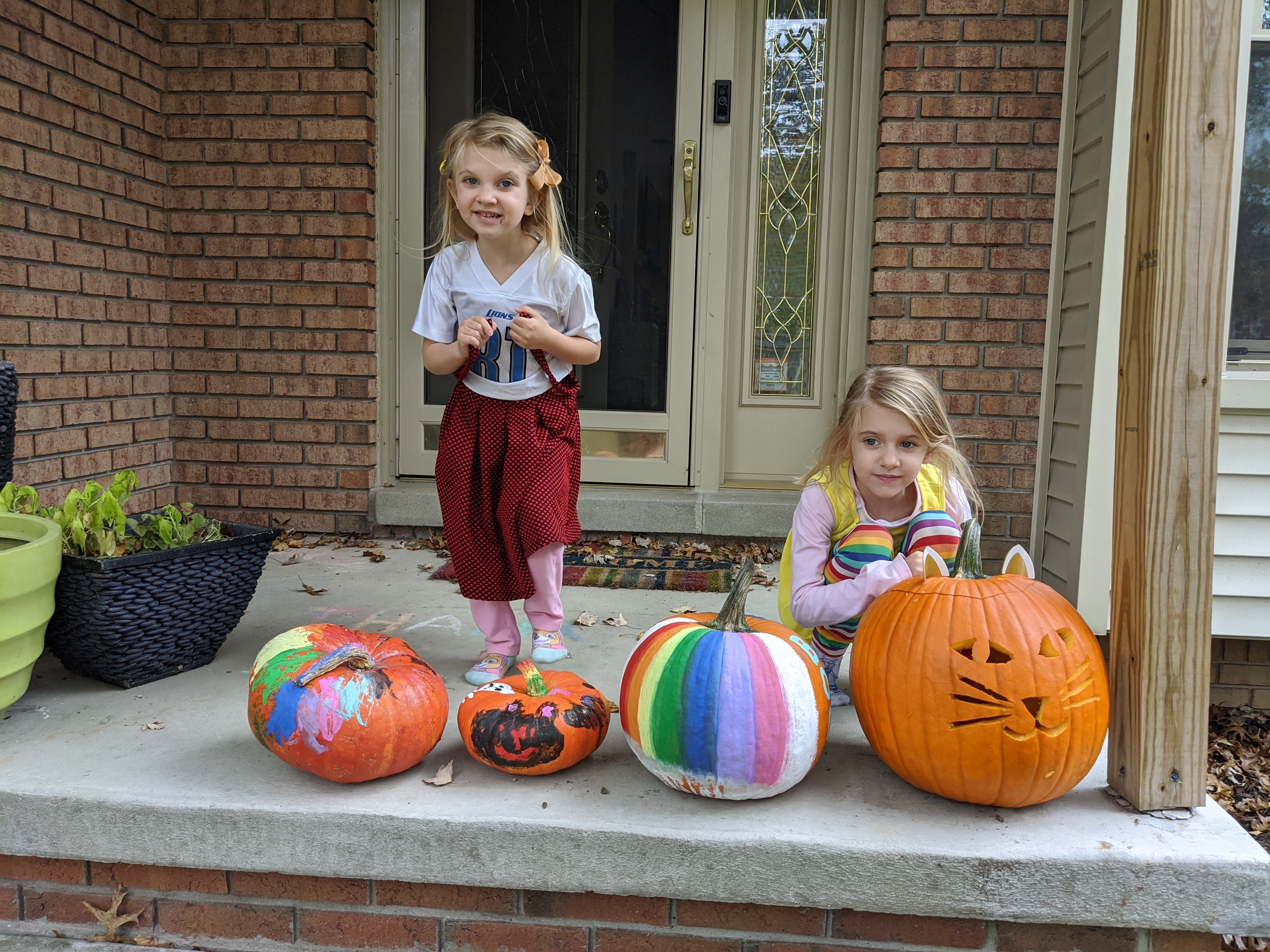 October 18, 2020: I can skip now. I also realized today that I really like the feeling of squishy pumpkin insides between my fingers. Jameson doesn’t like that feeling. She does like it when mommy carves the pumpkin into a cat. I like that too. We both like the smell of daddy’s famous soup. I kinda like the taste of it, but prefer chicken noodle soup from Panera. Jameson likes the broth and the carrots, but not how the rest of the soup feels in her mouth. Also, the leaves are really changing color now. It’s so pretty outside!