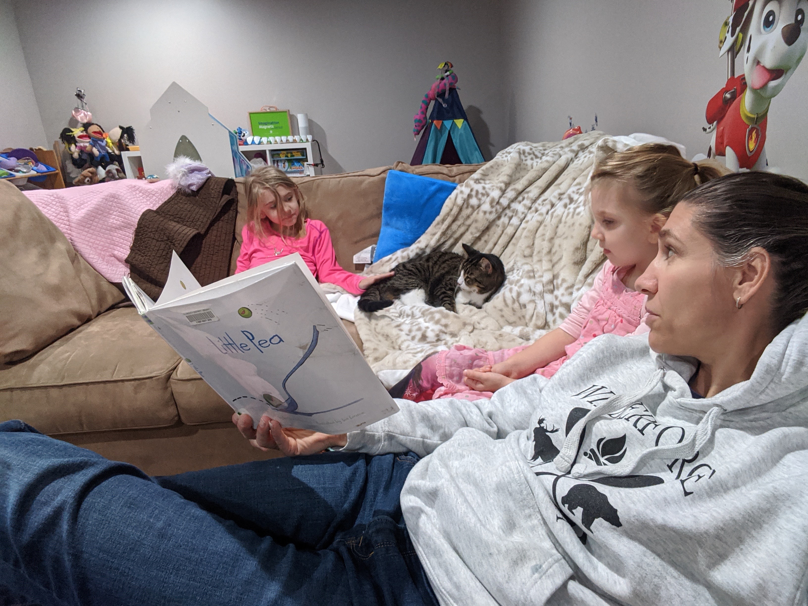October 22, 2020: We have the smartest cat ever. Harley goes to school with us and he loves to listen to stories. We love it when he curls up next to us when we read. Mommy says he’s just sleeping. But we know he’s really paying attention. He just doesn’t want her to know how smart he is. We do that to mommy too!
