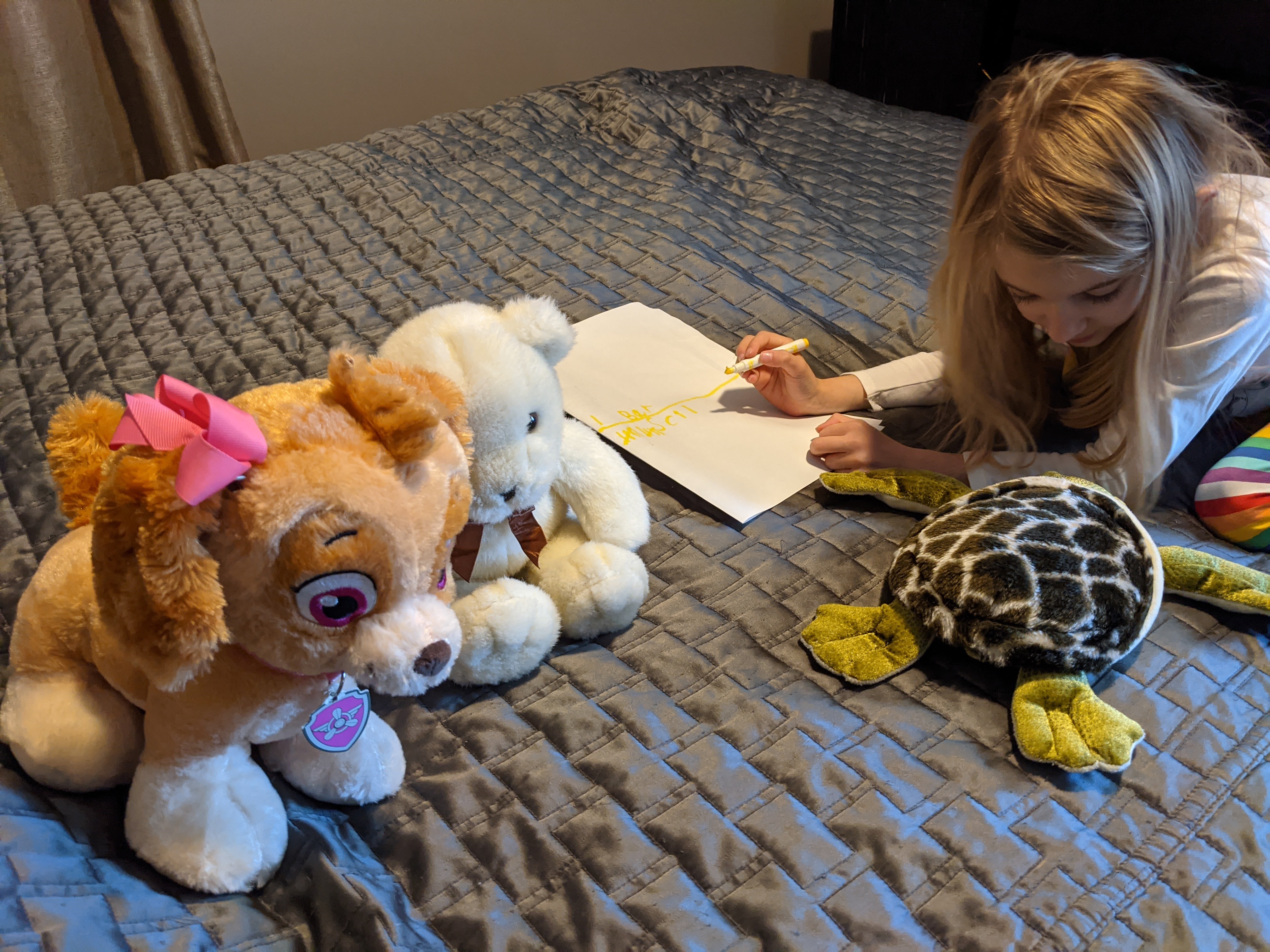 November 3, 2020: There’s a tight race going on today. I’m sure you’ve heard about it on the news. The election is going to be close. Of course I’m talking about the mayoral race between Skye and Bear. All the stuffed animals voted and it was very close. So close that Bear requested a recount. In the end, the vote was still close, but the count was accurate. Mayor Skye won 21-6. Congratulations, Skye!