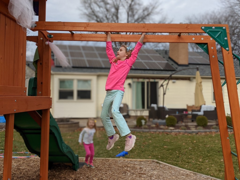 November 20, 2020: I did it! I can’t believe it! I really did it! I did the monkey bars all by myself! I have been working on it all summer. Daddy has been saying all along that I didn’t need him to hold me, but I just didn’t have the confidence. Well, today I thought I could do it and I totally did. I am so proud of myself!