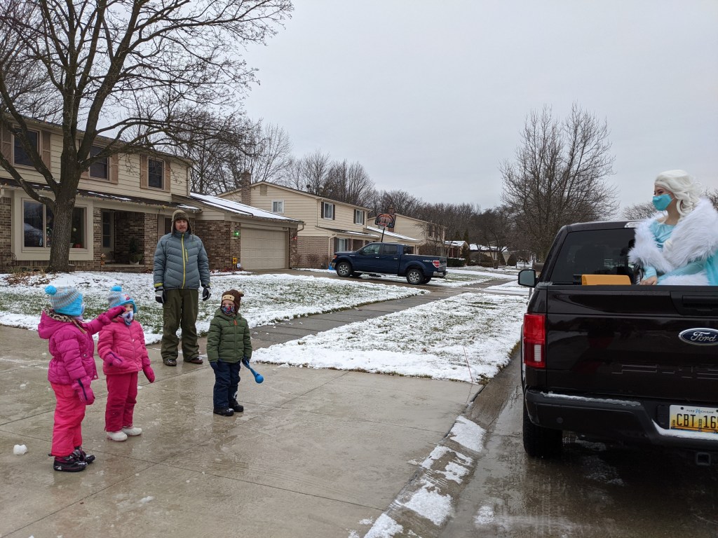 December 19, 2020: Christmas is almost here, but Elsa managed to sneak away from Arendelle to visit our neighborhood this afternoon! Anna wasn’t able to make it but we understood. Someone has to stay home and get the castle ready for the holidays. It was so nice to chat with Elsa even though we couldn’t get close and had to wear a mask!