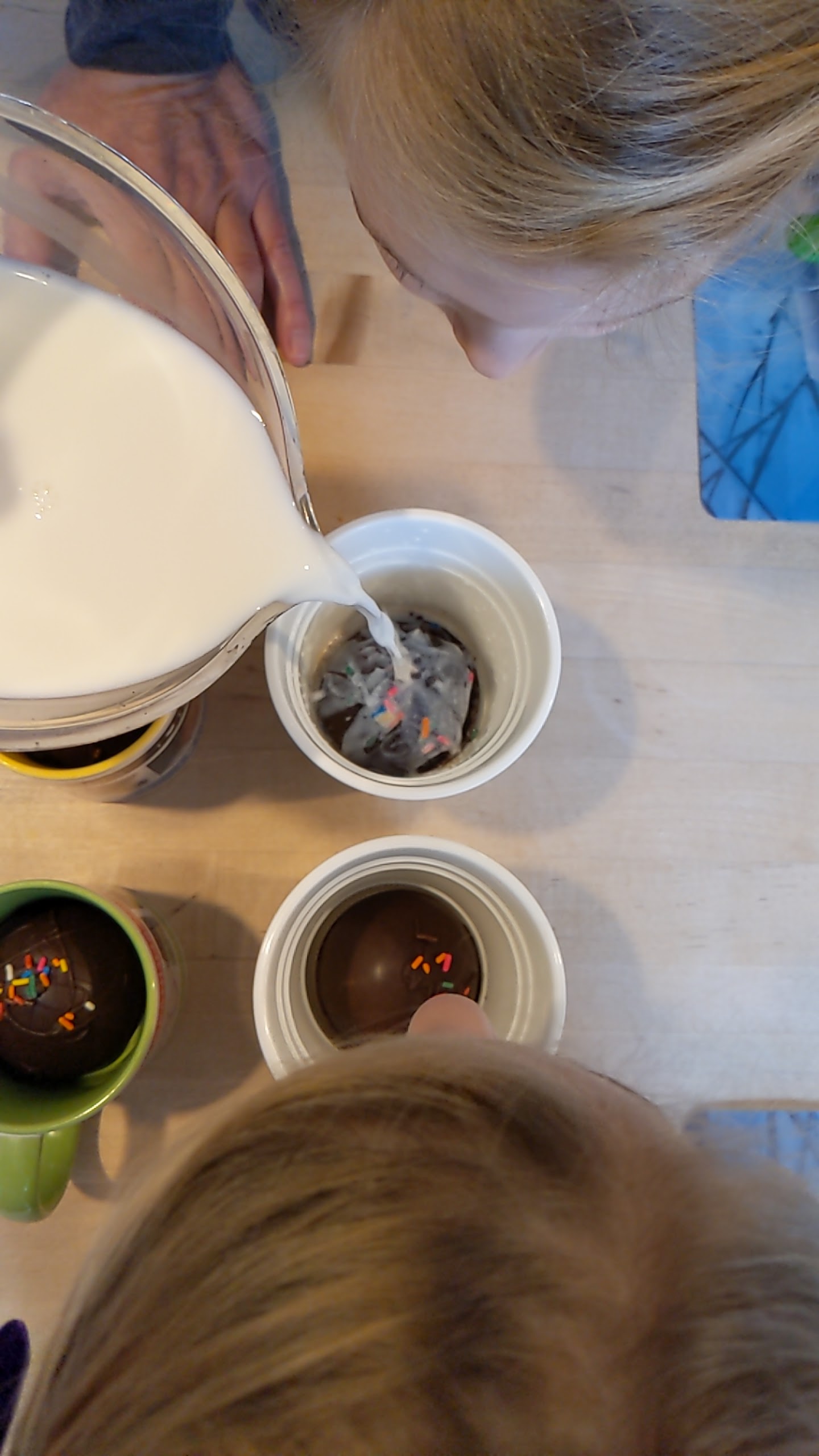 December 20, 2020: Mmmmmm CHOCOLATE! That’s one of my favorite lines from Frozen. Plus chocolate is really one of my favorite treats, so when our neighbor dropped off something called a chocolate bomb, I was geeked! Chocolate that melts and reveals a marshmallow surprise?! Yes, please!