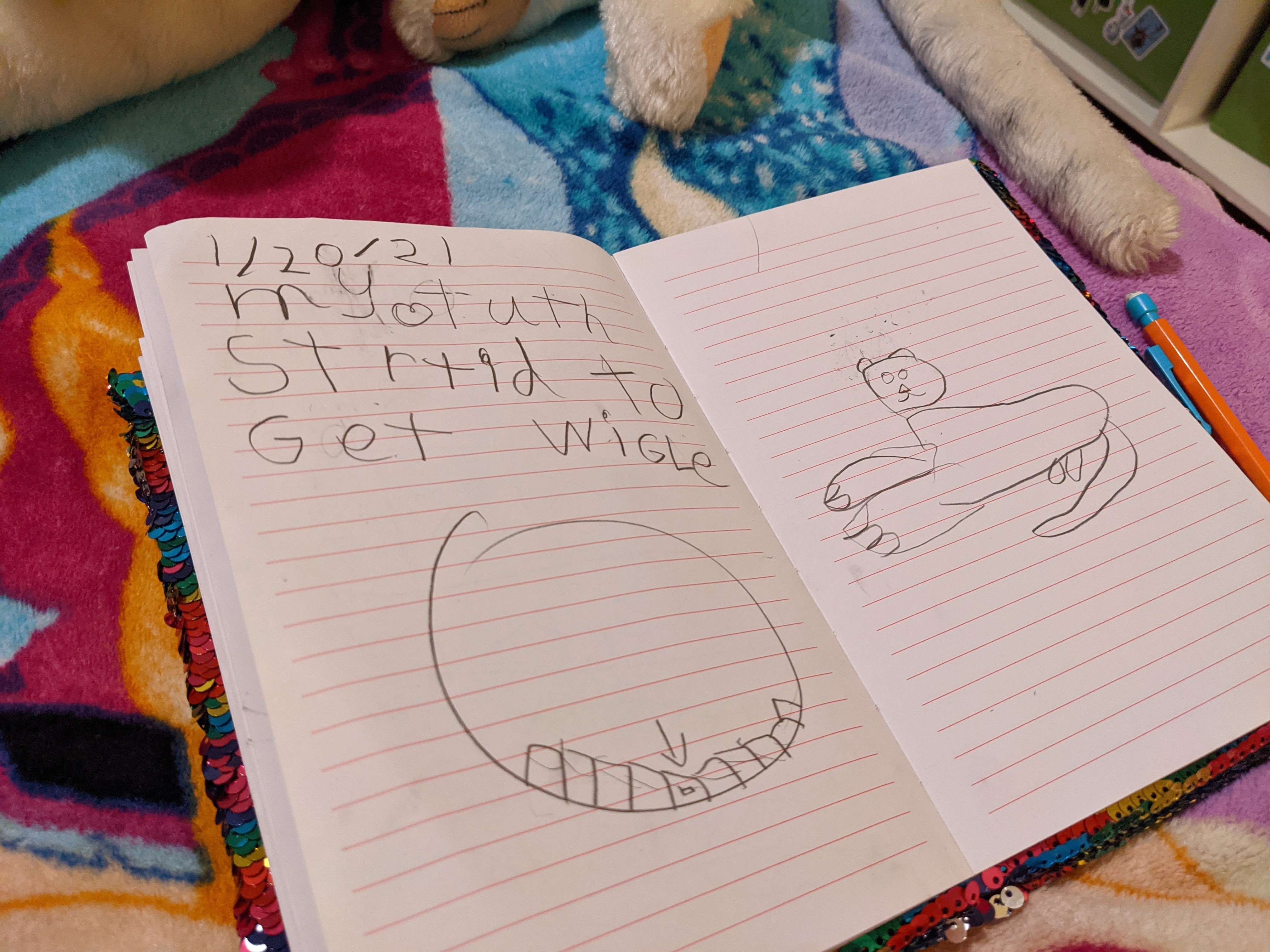 January 21, 2021: Jameson’s tooth started getting all wiggly yesterday. She’s been very busy trying to get it more wiggly. She wants to see if it can fall out before her birthday. Daddy says it will take longer than that and not to push it. All this tooth drama has inspired a few more dress designs. I wonder if the Tooth Fairy would be interested in a new outfit?