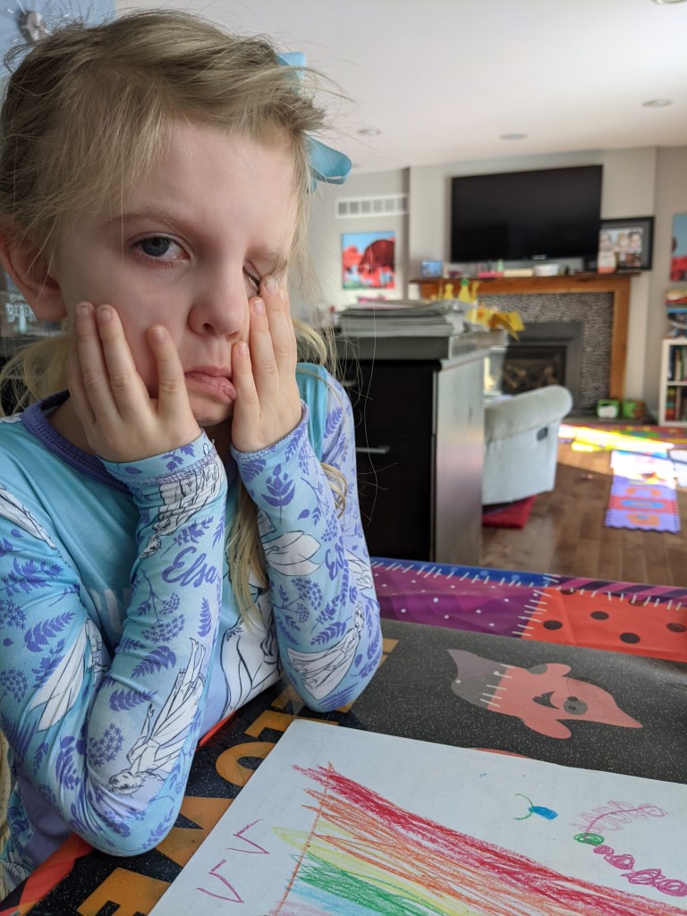 January 27, 2021: I was very cry’ie today. Maybe it was because I’m sick of sick week. Maybe it’s growing pains. Whatever it is, today was not the day to tell me that grammie and papa are going back to Florida again soon. No matter how much fun I’m having or how cool painting homemade necklaces is, I just can’t take anymore right now.