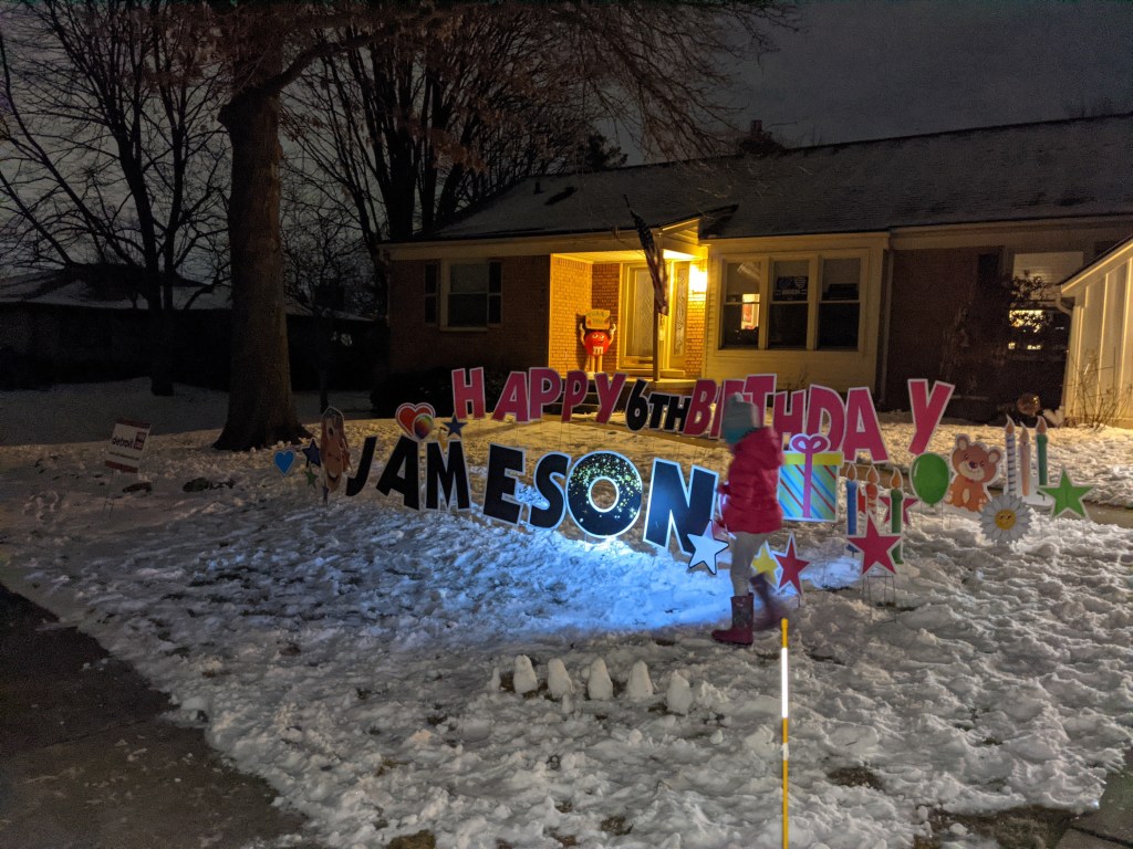 January 30, 2021: We keep talking about the things Jameson has been doing for the last time as a five year old. Well today is the last day we get to do that because tomorrow she turns six! We took care of the final arrangements today. Luckily grandma and grampa know how hard it is to wait to open presents and eat cake cause they came a day early! Don’t worry, we ate the extra cake we got for mommy. Tomorrow my sister will be an even bigger kid!