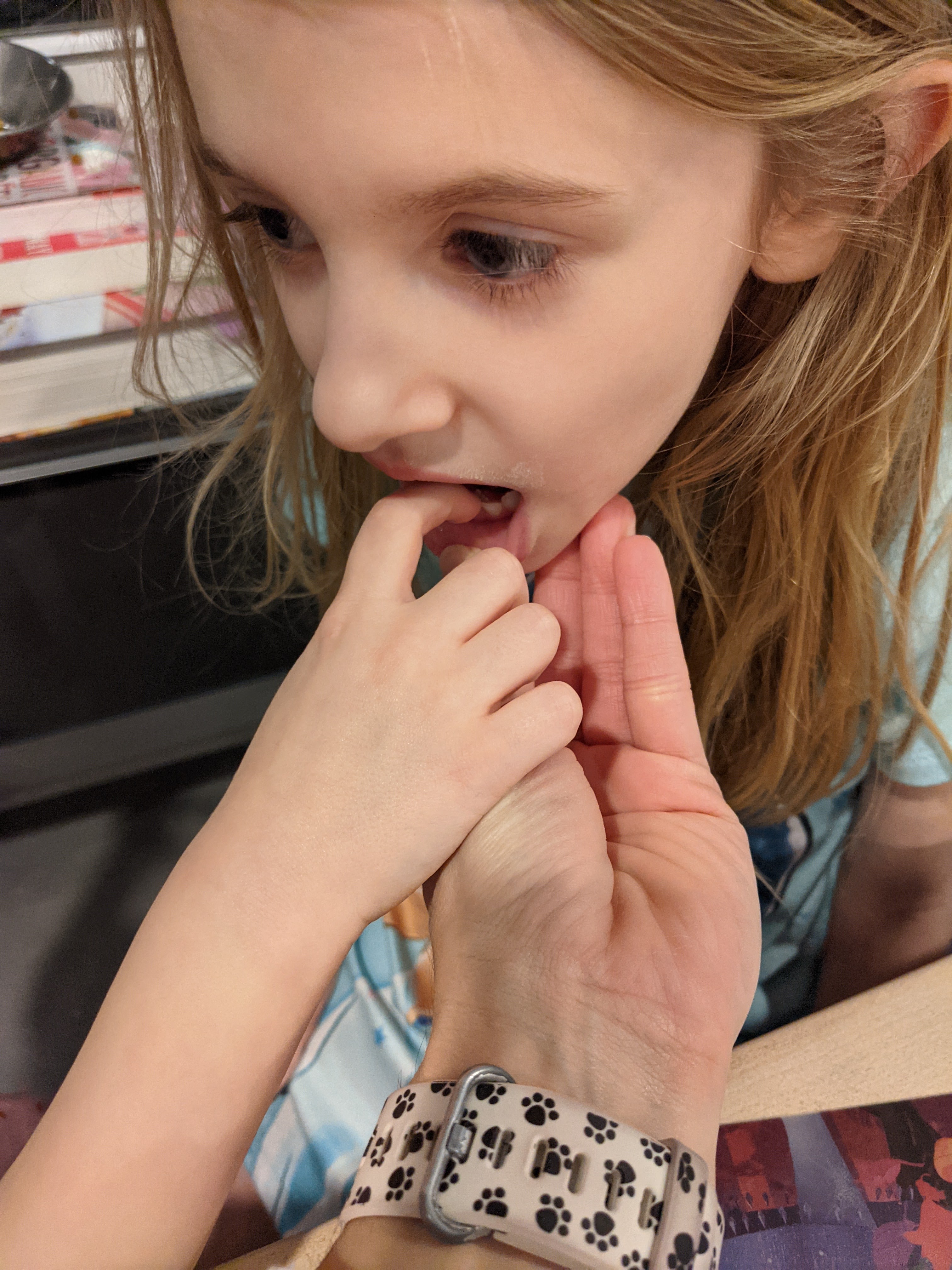 February 3, 2021: The excitement is building! Jameson’s tooth is getting a lot more wiggly. She told me it was ok to wiggle her tooth and I did it…so crazy! Mommy took a turn too and she found there is another tooth coming in! It’s wiggly too but not as much. I don’t know what to think about all this, but I’m glad I have a big sister who has to go through it first.