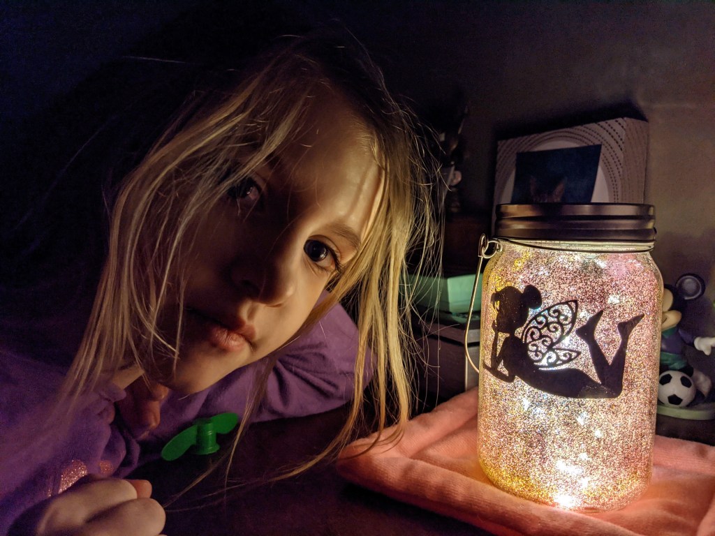 February 10, 2021: I got a cool fairy lantern kit for my birthday. We didn’t finish all the decorating but we got the best part done…glitter! As far as we’re concerned, adding fake flowers and butterflies might be a distraction, so for now, the lanterns are done and in our rooms. Two thumbs up!