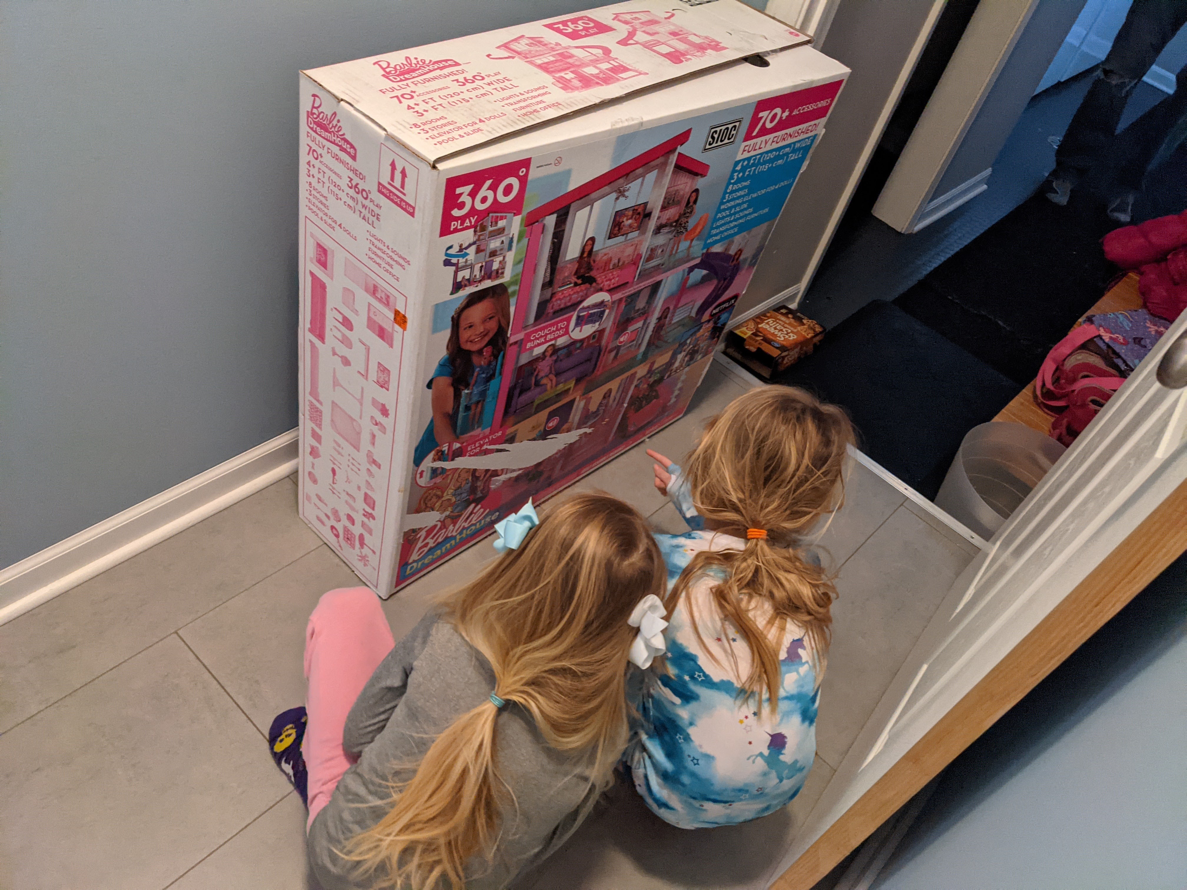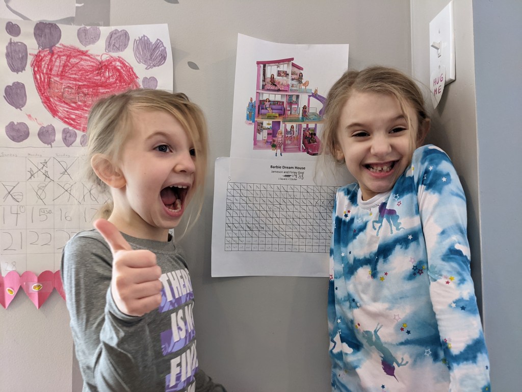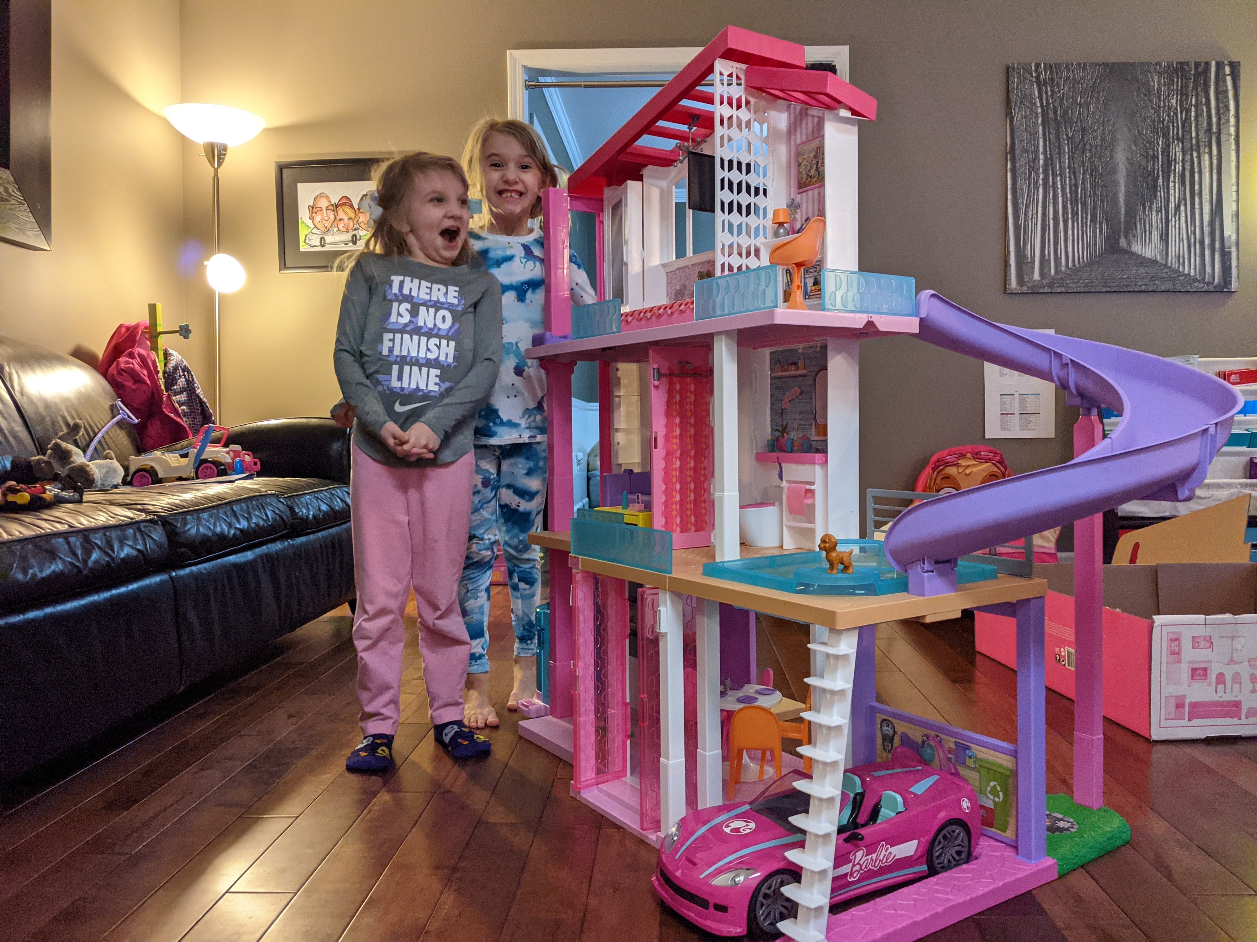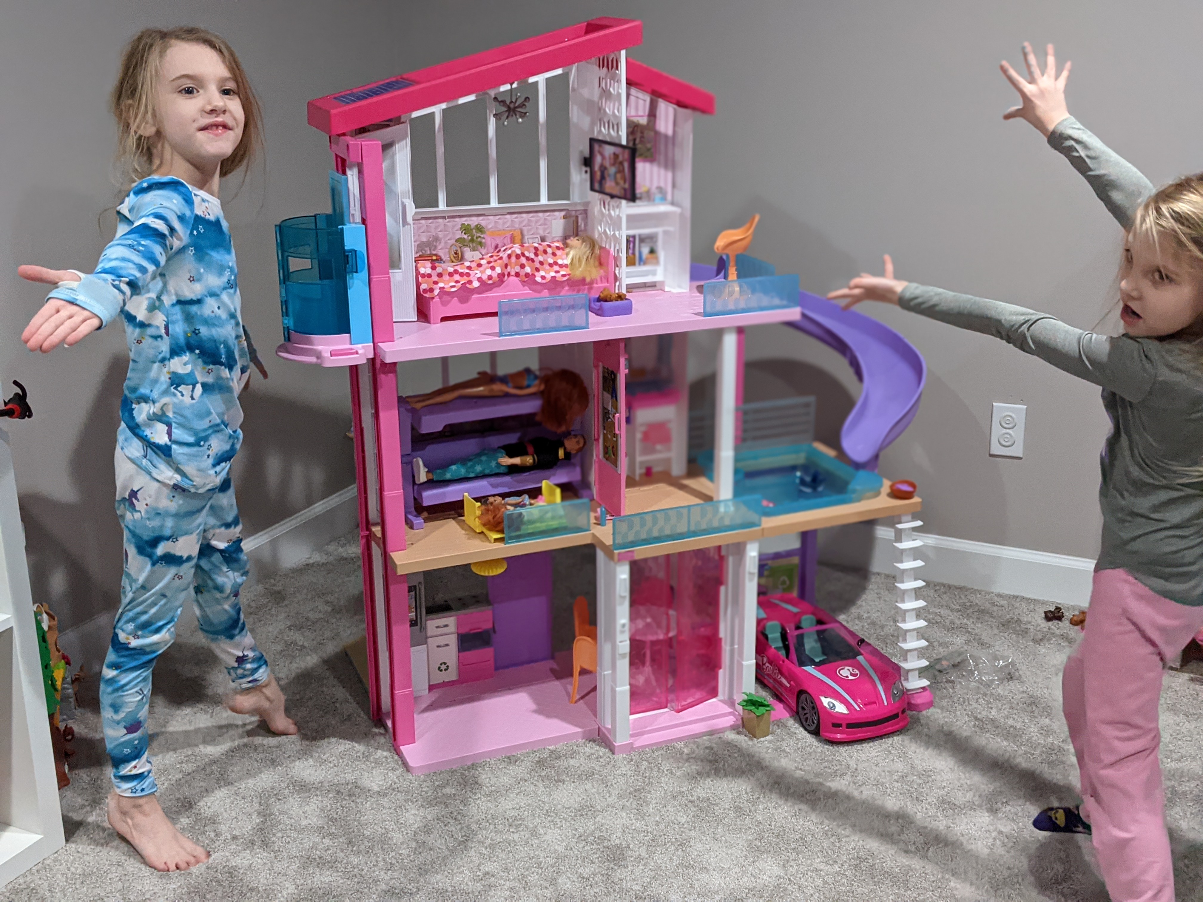 February 15, 2021: We did it! It was a long 35 days, but we worked hard and it was totally worth it! We shoveled the driveway this afternoon to earn our last couple of dollars and we completed our Barbie Dream House goal! It feels so good. Daddy took our $143 to grammie’s house and got the Dream House. Then we built it. Then we PLAYED with it. Totally awesome. If you need us, check the basement. We’ll be playing with our new Dream House!