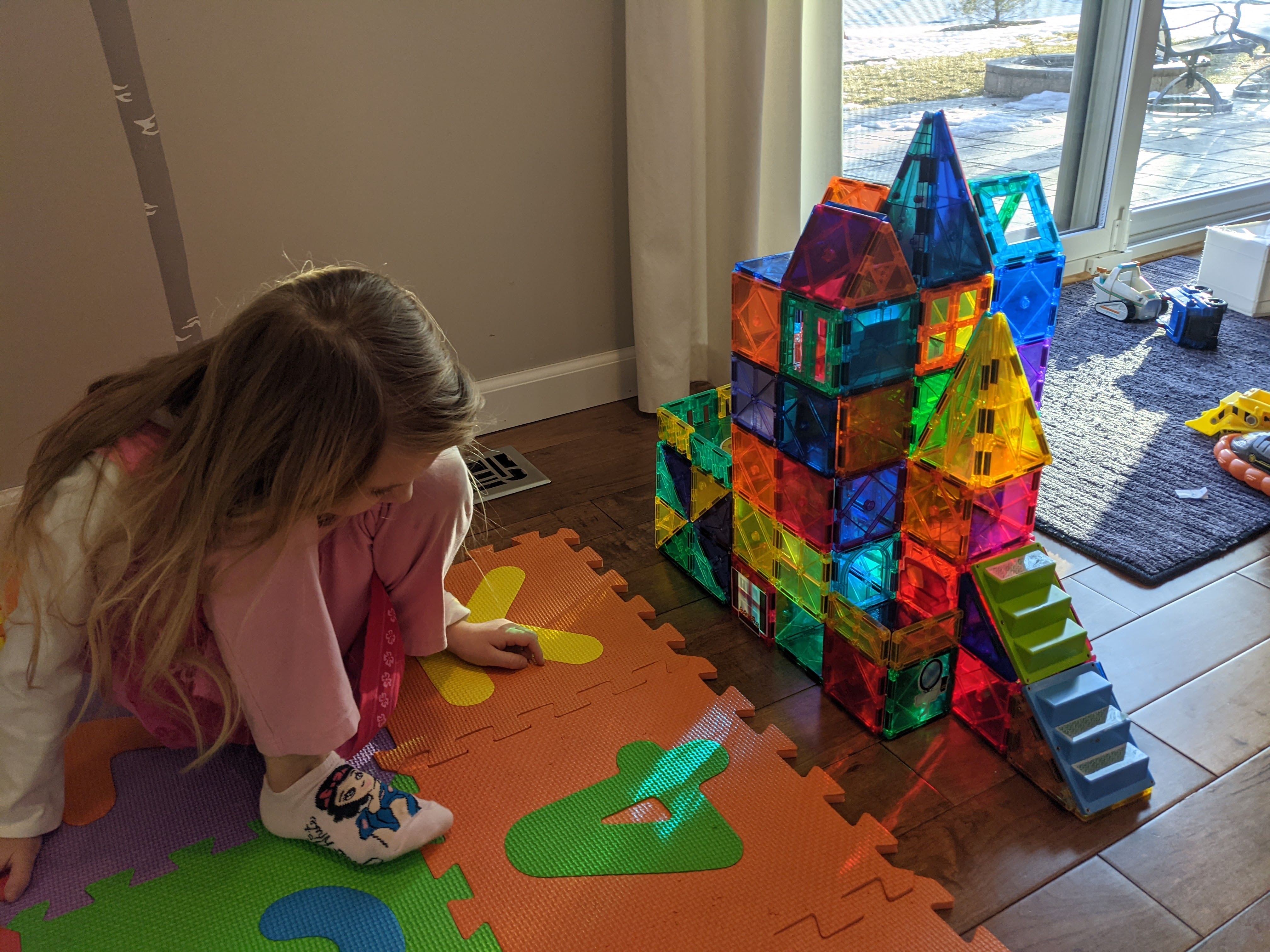 February 25, 2021: Mommy keeps telling people that we go to school and that she is our teacher. Ha! If people knew that we play with robots, build castles, and do puzzles, we’re pretty sure no one would believe her. Now is not the time to burst her bubble though, so we’re gonna keep playing along.
