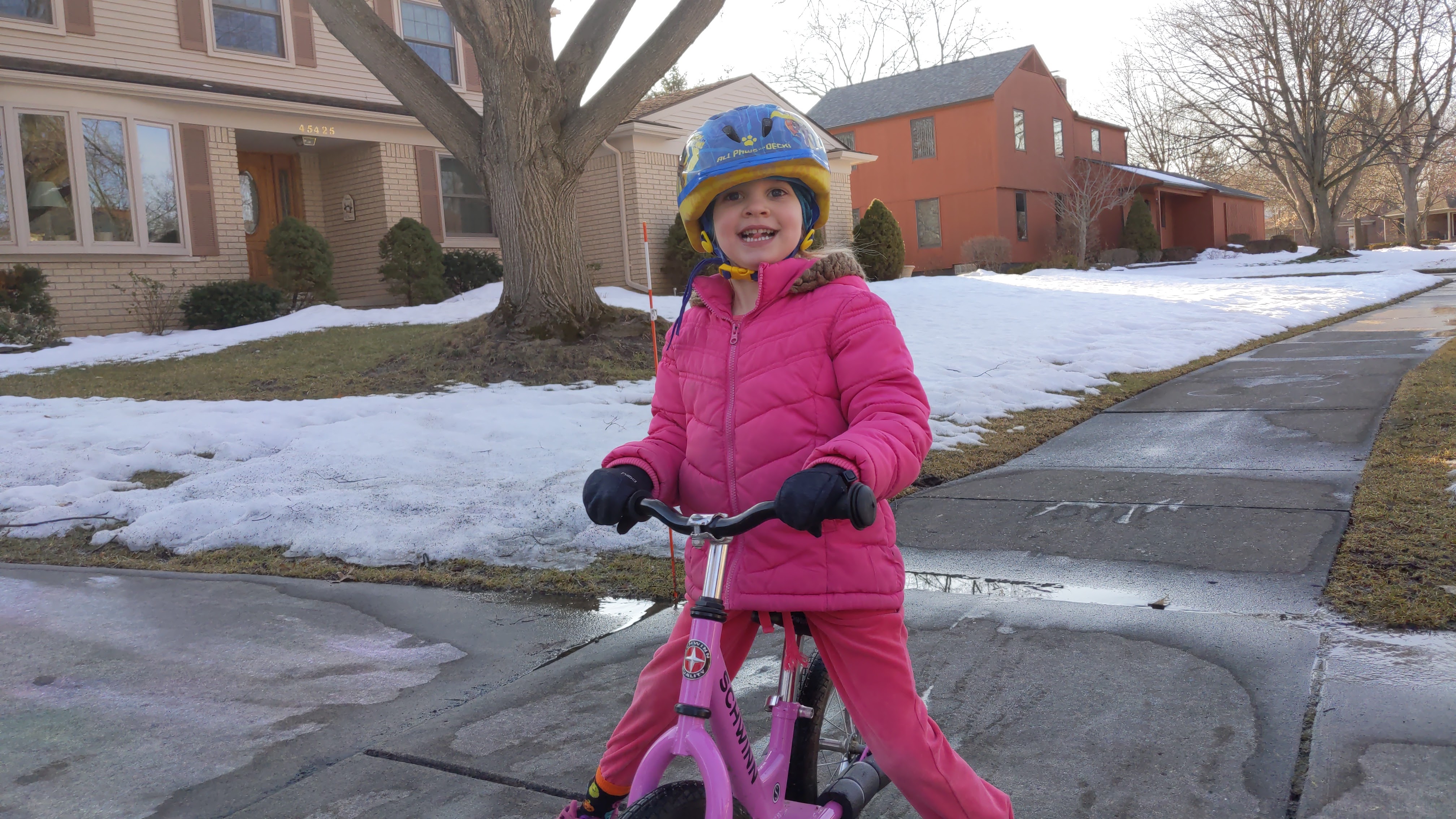 February 27, 2021: Poor Jameson. We had a little bike drama today because Ava got the bike she was waiting to ride when she got to be a bigger kid. I felt sad for her, but the bike I want to ride was still there. I know what will make her feel better. I need to ride a two wheel bike so we can go riding together. Jameson said the balance bike is the best way to learn. Ugh…it’s so tippy! I practiced hard and I really like it now. Maybe tomorrow I will be ready to ride!