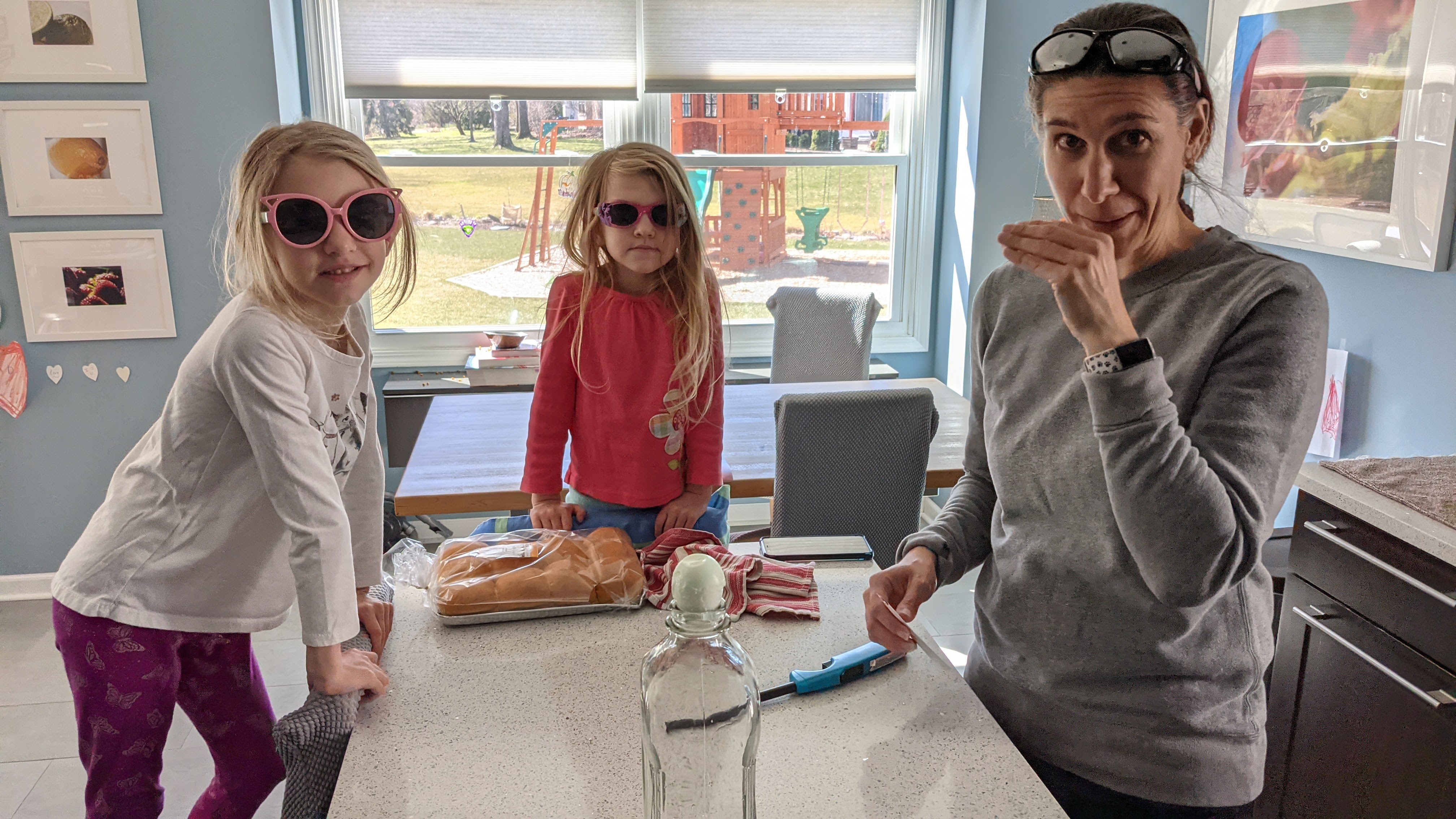 April 2, 2021: Yesterday was April Fool’s Day and daddy, Finley, and I played a few silly jokes on each other. Mommy didn’t get a chance to play any tricks. That’s why I thought she was joking when she told us about today’s science experiment. Drop a lit match in a bottle, cover the hole with a pealed hard-boiled egg, and watch it get sucked into the bottle? Uhhh…we aren’t falling for that one mommy. Well guess what?! It worked! She wasn’t fooling!
