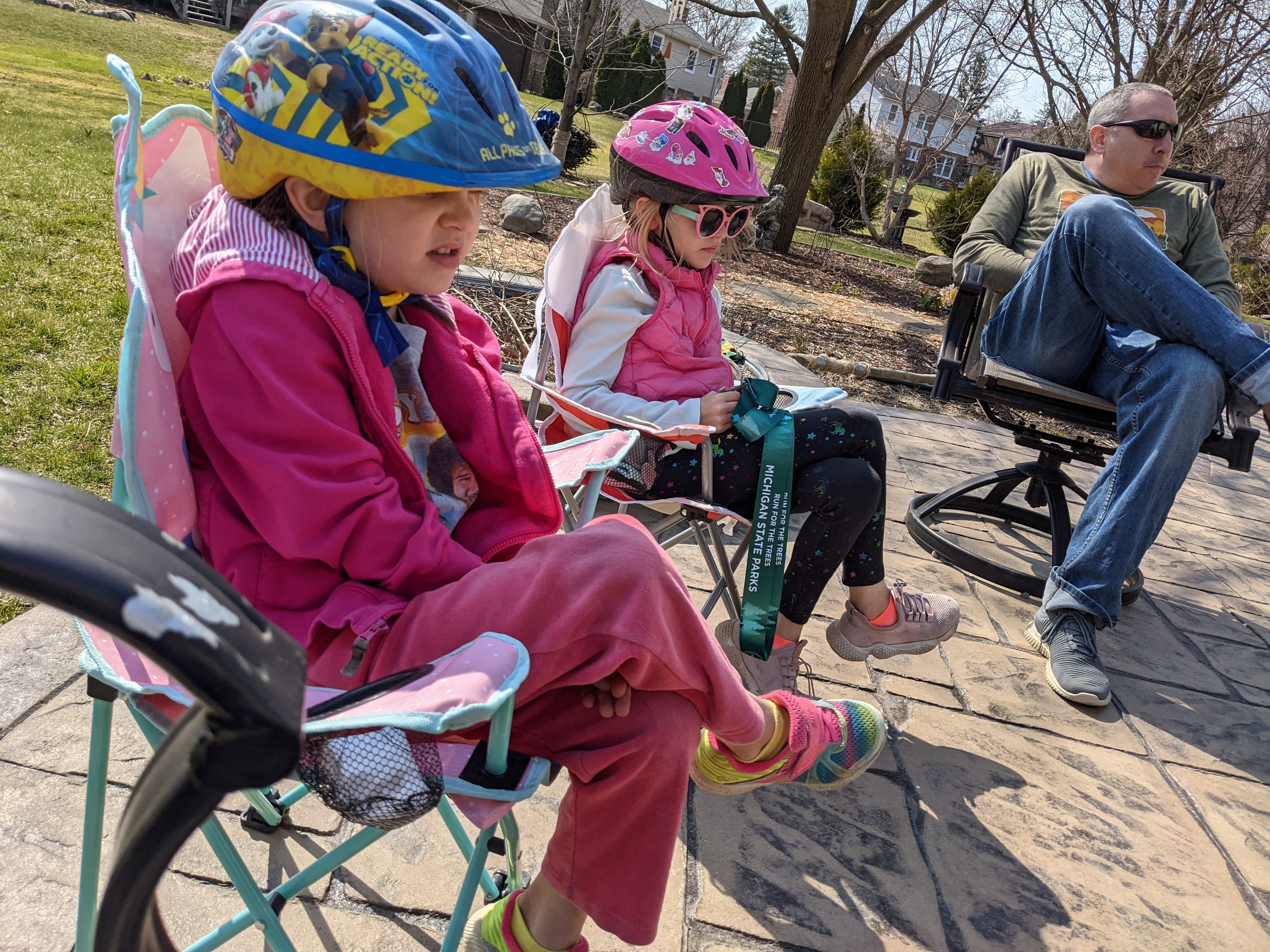 April 3, 2021: Grandma and grampa came to visit today. I guess we were too excited to get pictures of them. Don’t worry, if you want to know what they look like, just imagine older versions of us sitting with their right leg across their left knee. According to this picture that’s how McGahey’s sit.