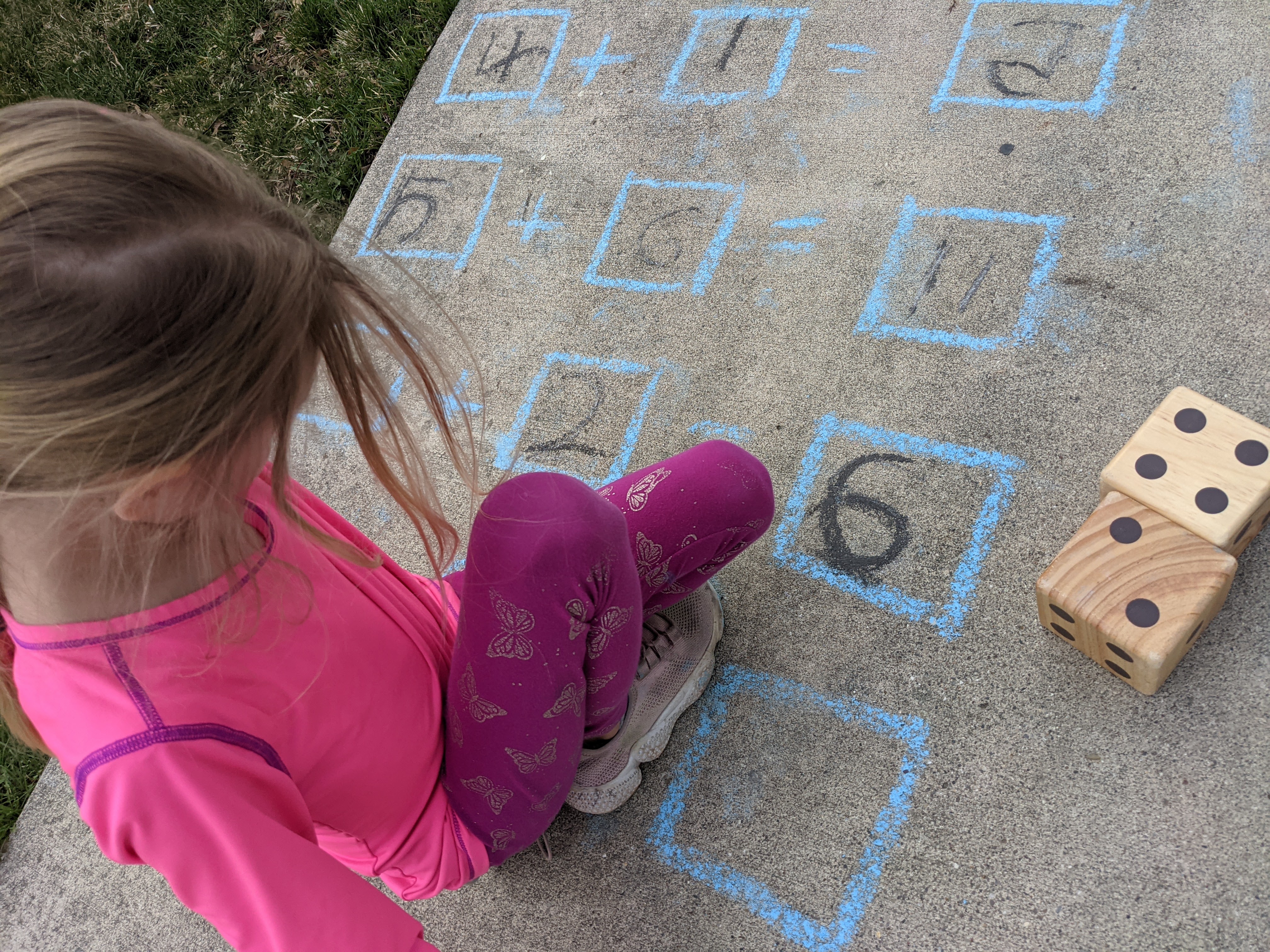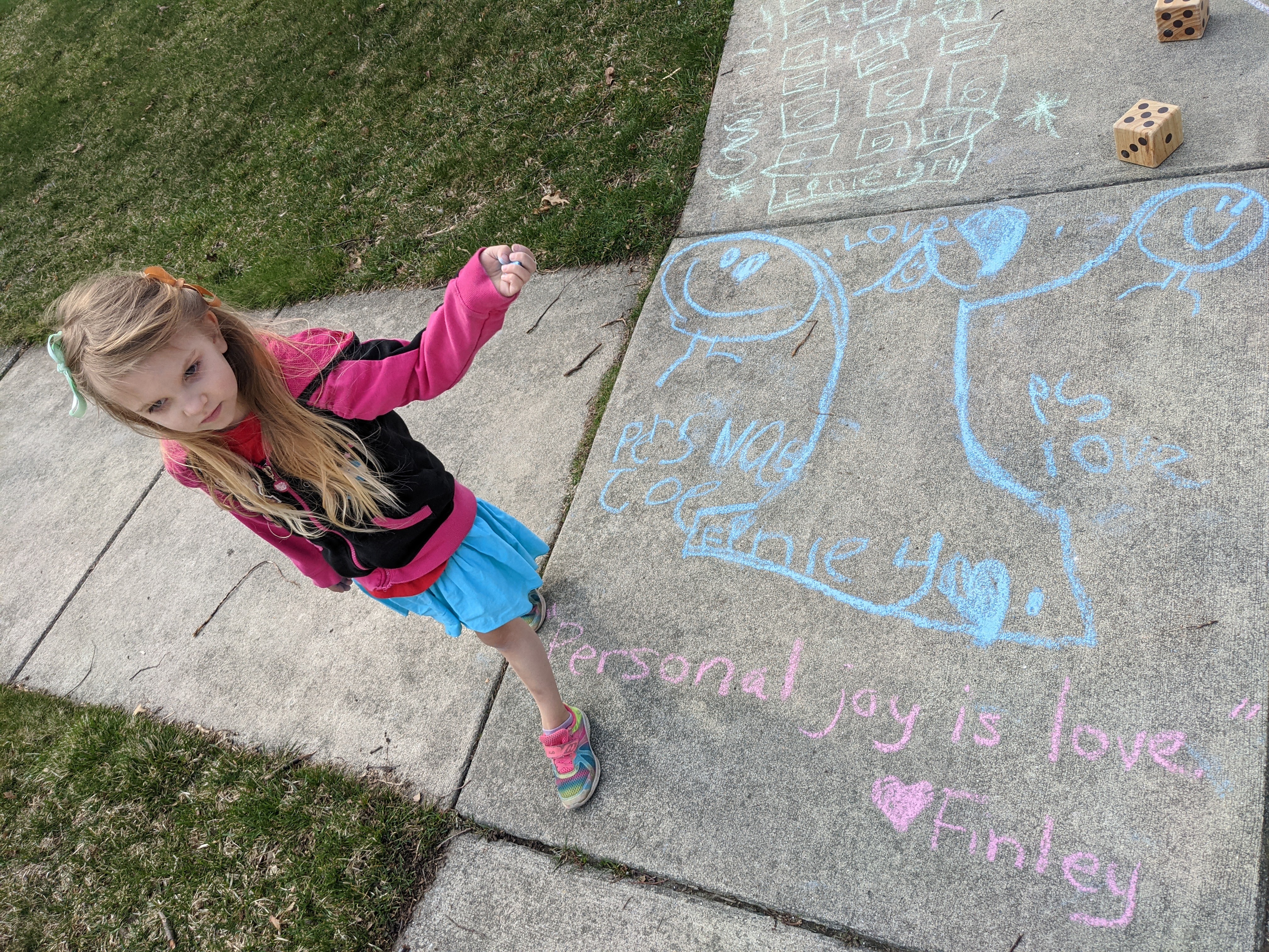 April 8, 2021: It feels so good to be back outside since the weather is warmer. Of course we’d rather not have to do school at all, but school is a little nicer on the driveway, with chalk, and the sun on our faces.