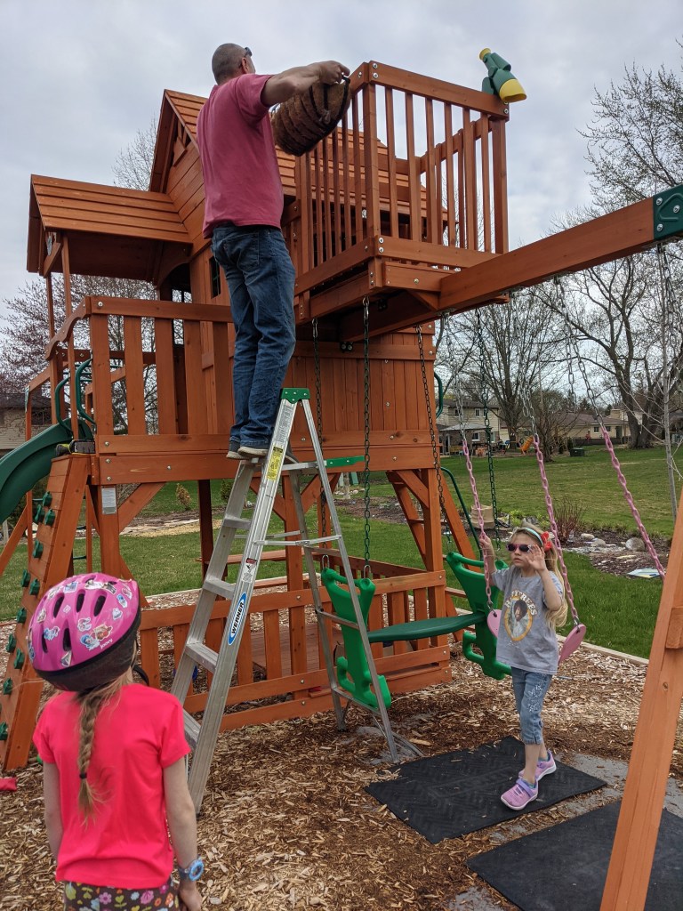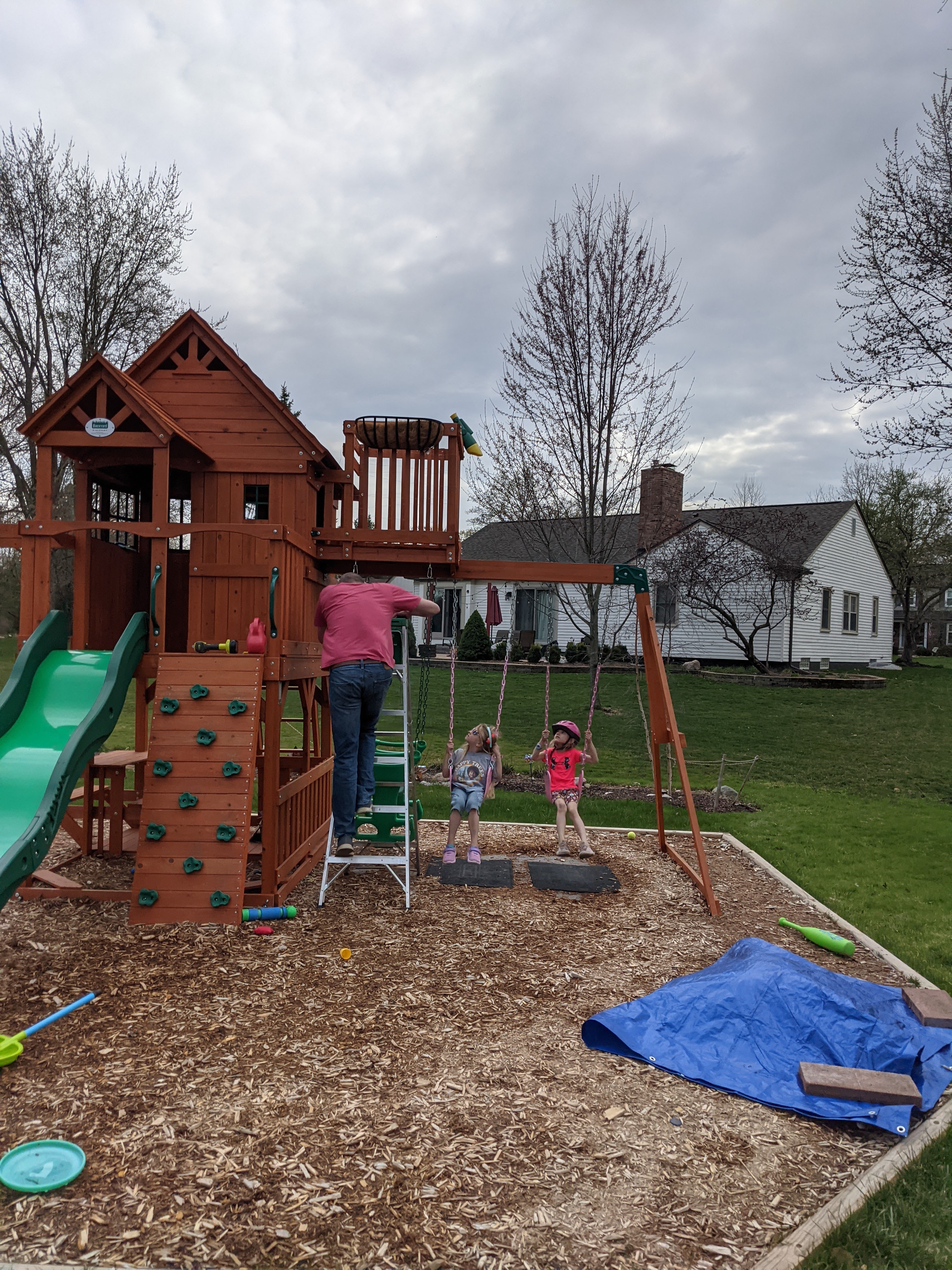 April 9, 2021: Mommy and daddy are doing some garden projects. We figured if they are already getting dirty and have their tools out, why not spruce up our playhouse too. We added a flower box and thermometer. Looks great!