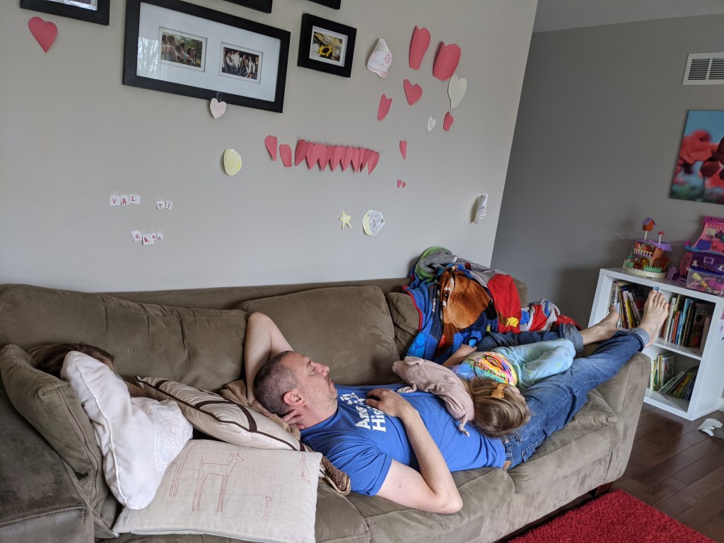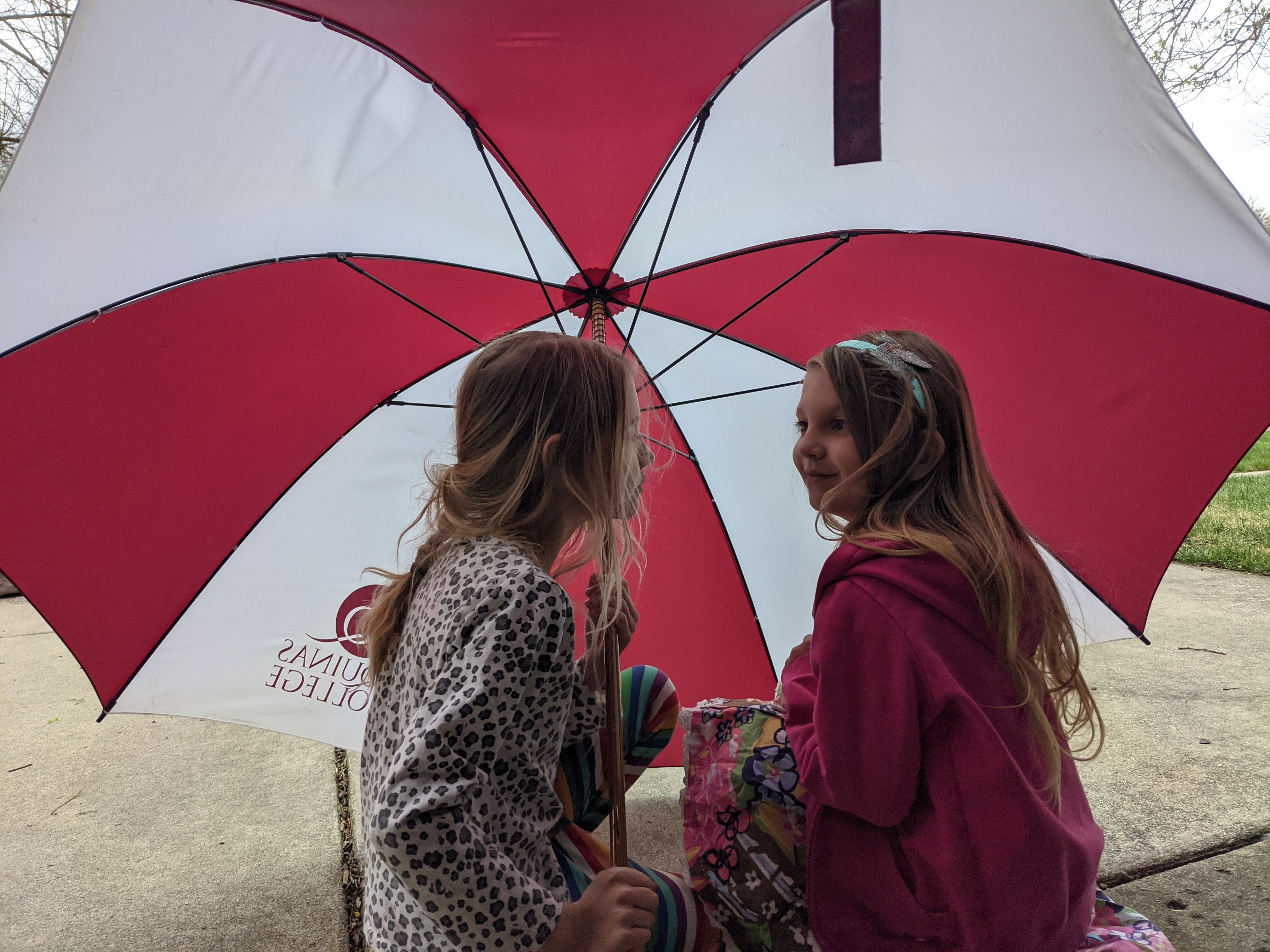 April 11, 2021: Daddy has really good ideas on lazy, rainy Sunday mornings. Should we have tater tots with our pancakes? Yes! Should we watch a couple episodes of America’s Funniest Home Videos? Yes! Should we go for a walk around the block between rain clouds? Yes! Should we clean the house? Ok, that one was mommy’s idea, but we all agreed it needed to be done.