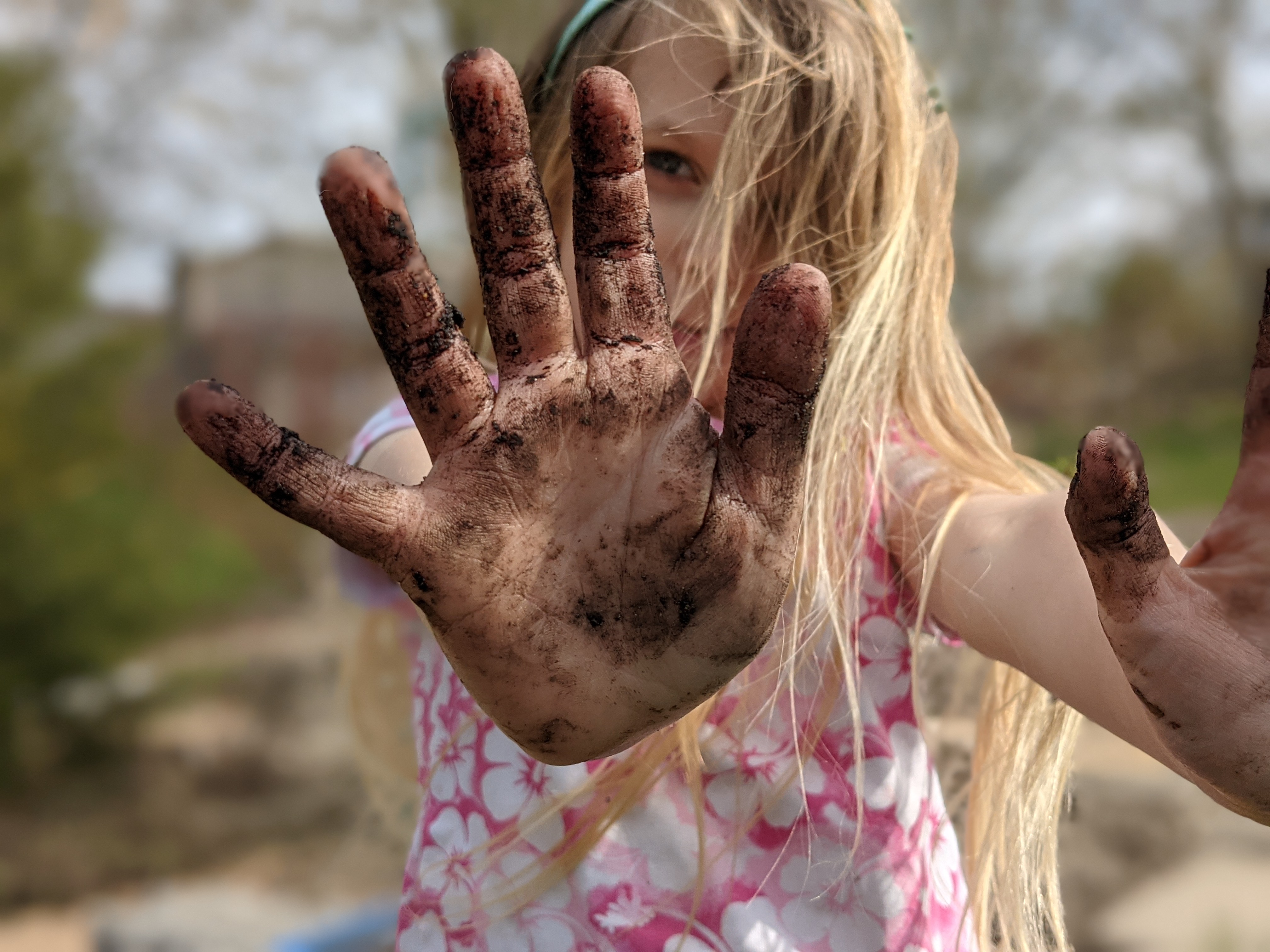 April 23, 2021: Sometimes I complain about getting my hands sticky during meals, but I’m realizing getting them dirty in the dirt us fun! Either that or it’s fun to see daddy’s eyes when I show him my hands the day after bath day!