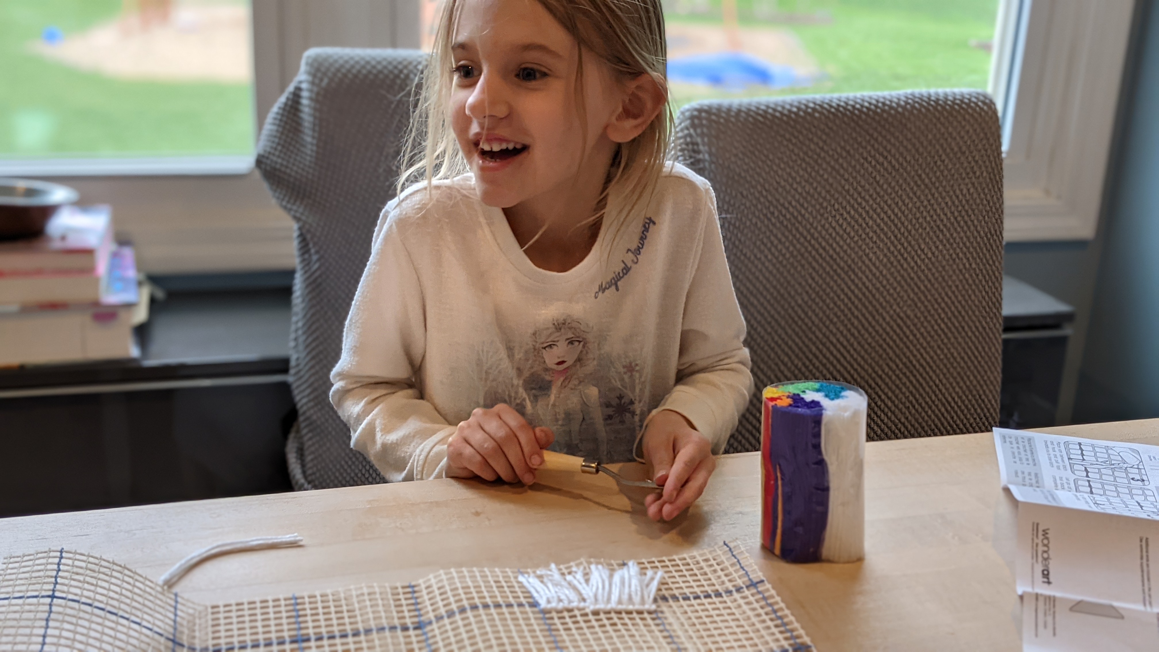 April 24, 2021: What a perfect day! Here’s why. We’ve been busy. We seem to always have something to do and we don’t like to waste nice weather inside. That’s great and all, but I’ve been bugging daddy to teach me how to latch hook. He told me that was a rainy day activity. So this morning we ate with our baby caterpillars, went rock shopping, mowed the lawn, cleaned in the garage a little, worked on daddy’s car and took it to the doctor (personally I think daddy and I already fixed it). Then when the rain came I got to do some latch hook and we watched Paw Patrol Live during dinner. (Don’t tell daddy, but it didn’t even rain that much!)