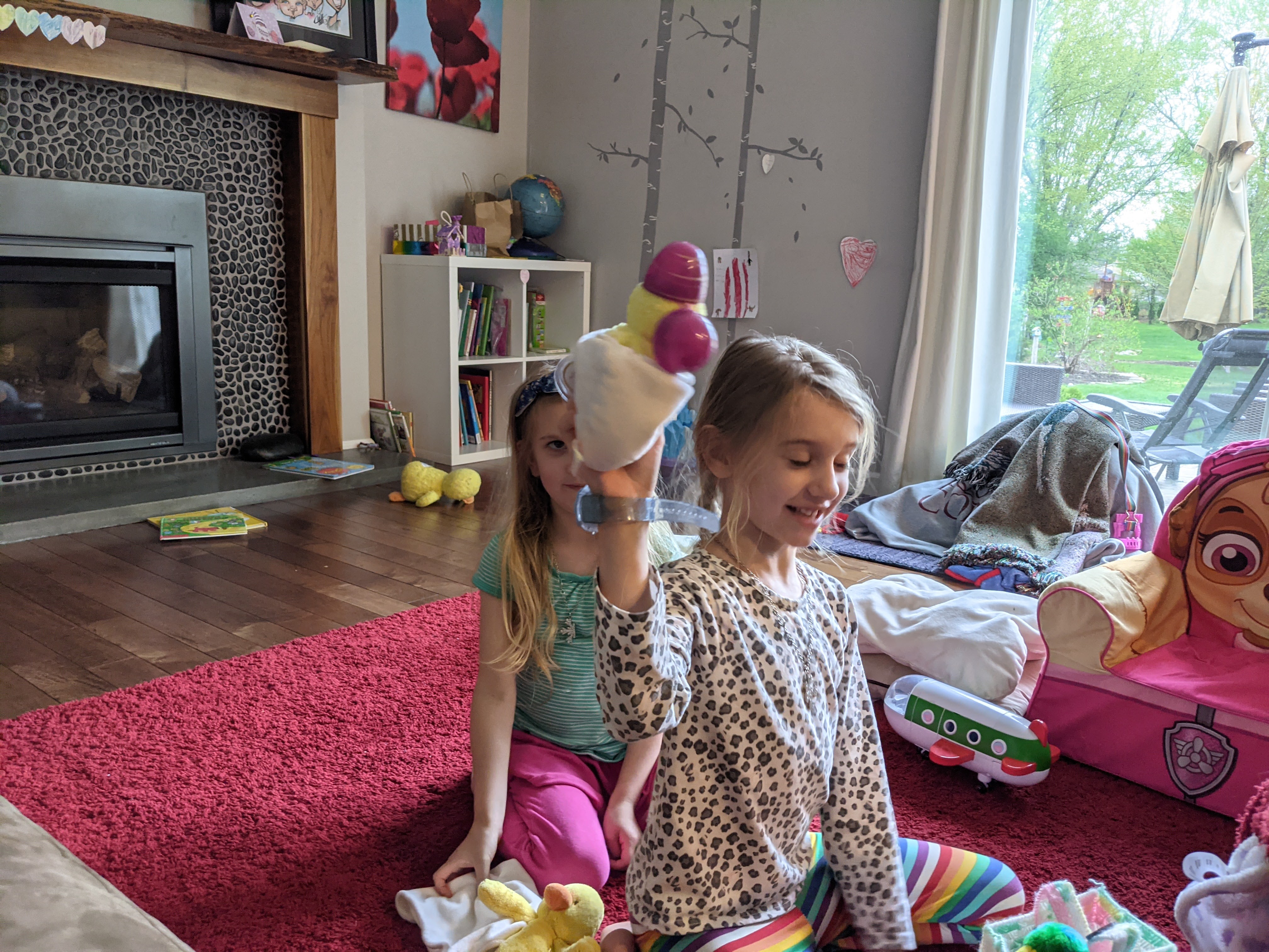 May 3, 2021: Right on cue Old Mother Nature made an appearance at school today. It’s like she knows exactly what we’re studying….either that or mommy is lazy and stealing her lesson plans. Anyhoo, we’ve been watching ducks in our backyard and learning about eggs. We haven’t seen a nest or babies yet, but we’re on the lookout. On our walk we saw a broken robin egg and a broken duck egg. We don’t know what happened but we hope everyone hatched safely like in our school videos! And hey, pretending to be mama ducks all day taking care of our eggs was pretty fun too!