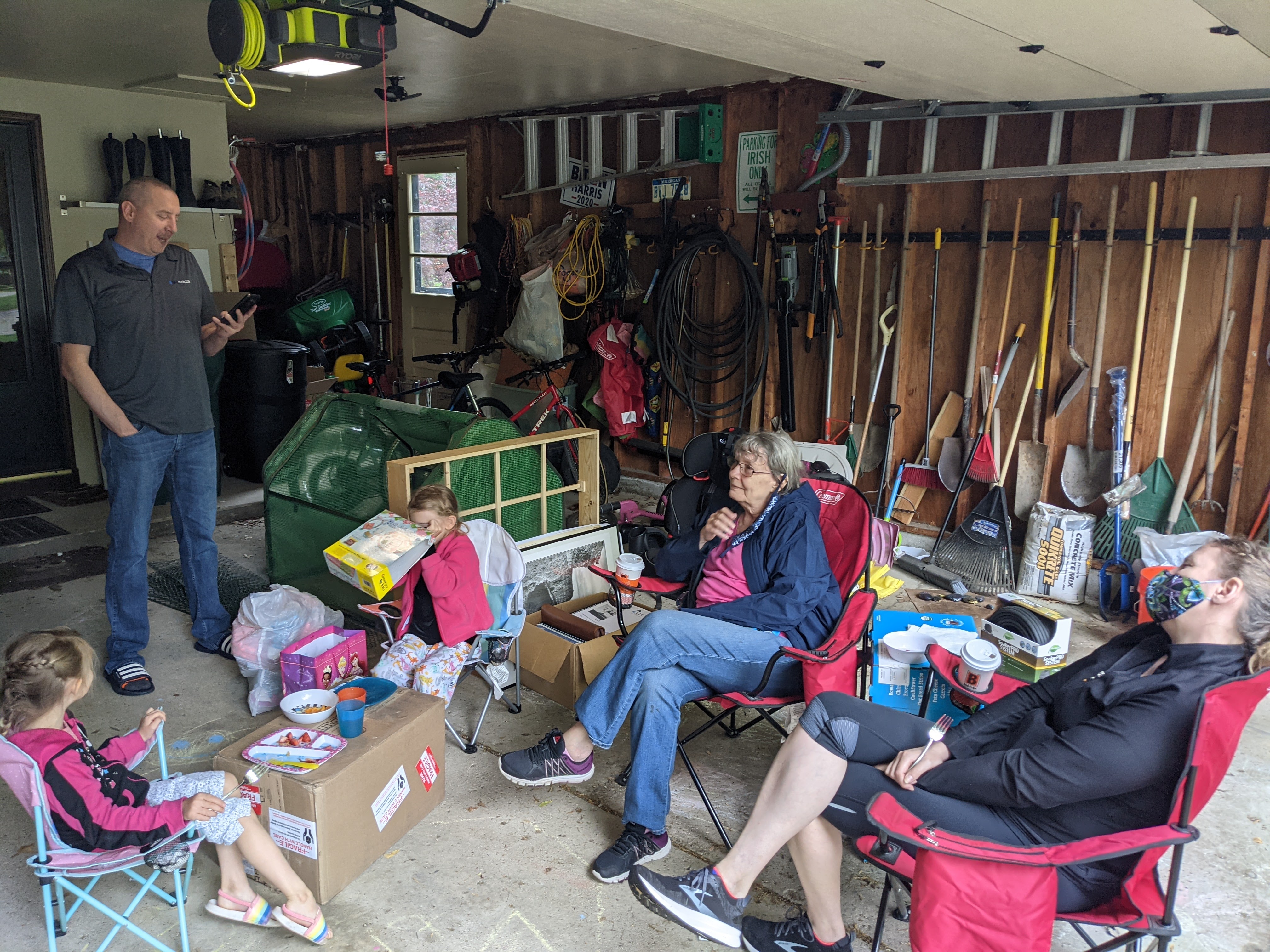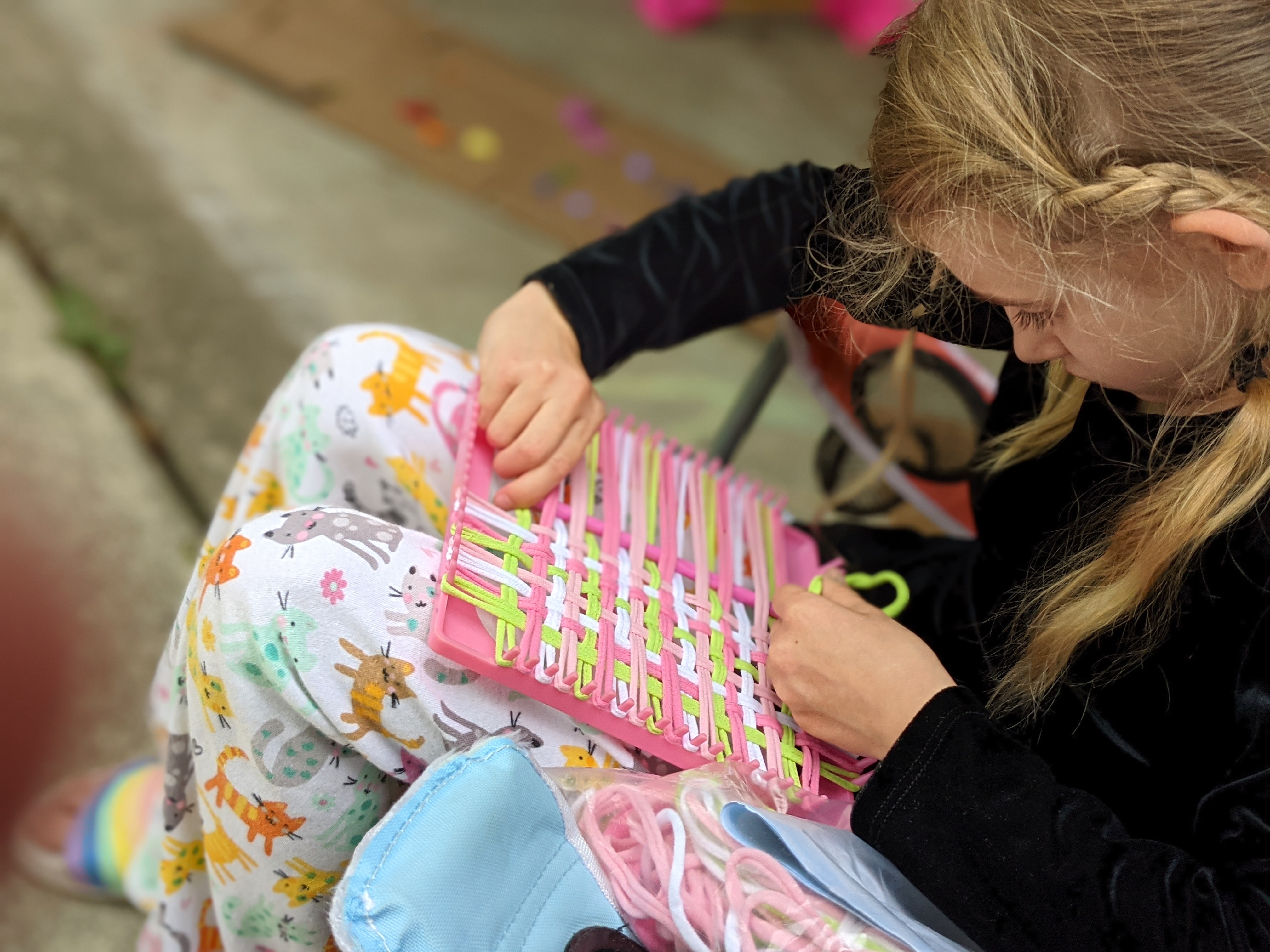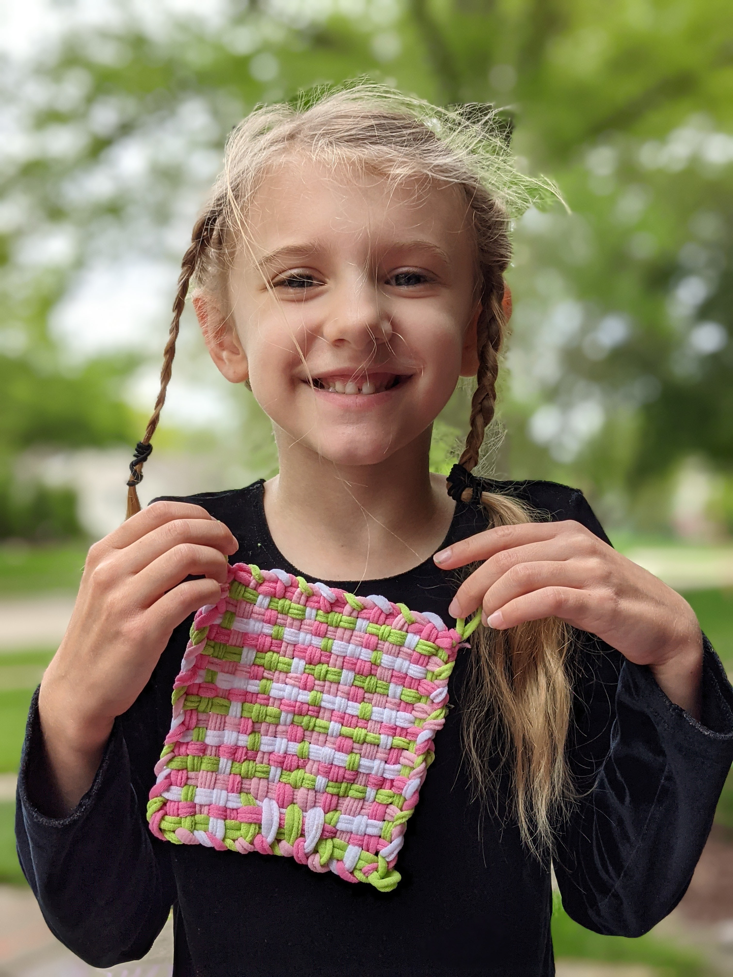 May 26, 2021: We got special visitors today! Grandma and aunt Susie stopped by to see us. Aunt Susie wanted to drop off my birthday present. I know, I know…it was a while ago, but who cares? I got an awesome present and started using it right away. Everybody…I can make potholders! Guess what Aunt Susie is getting for her birthday?