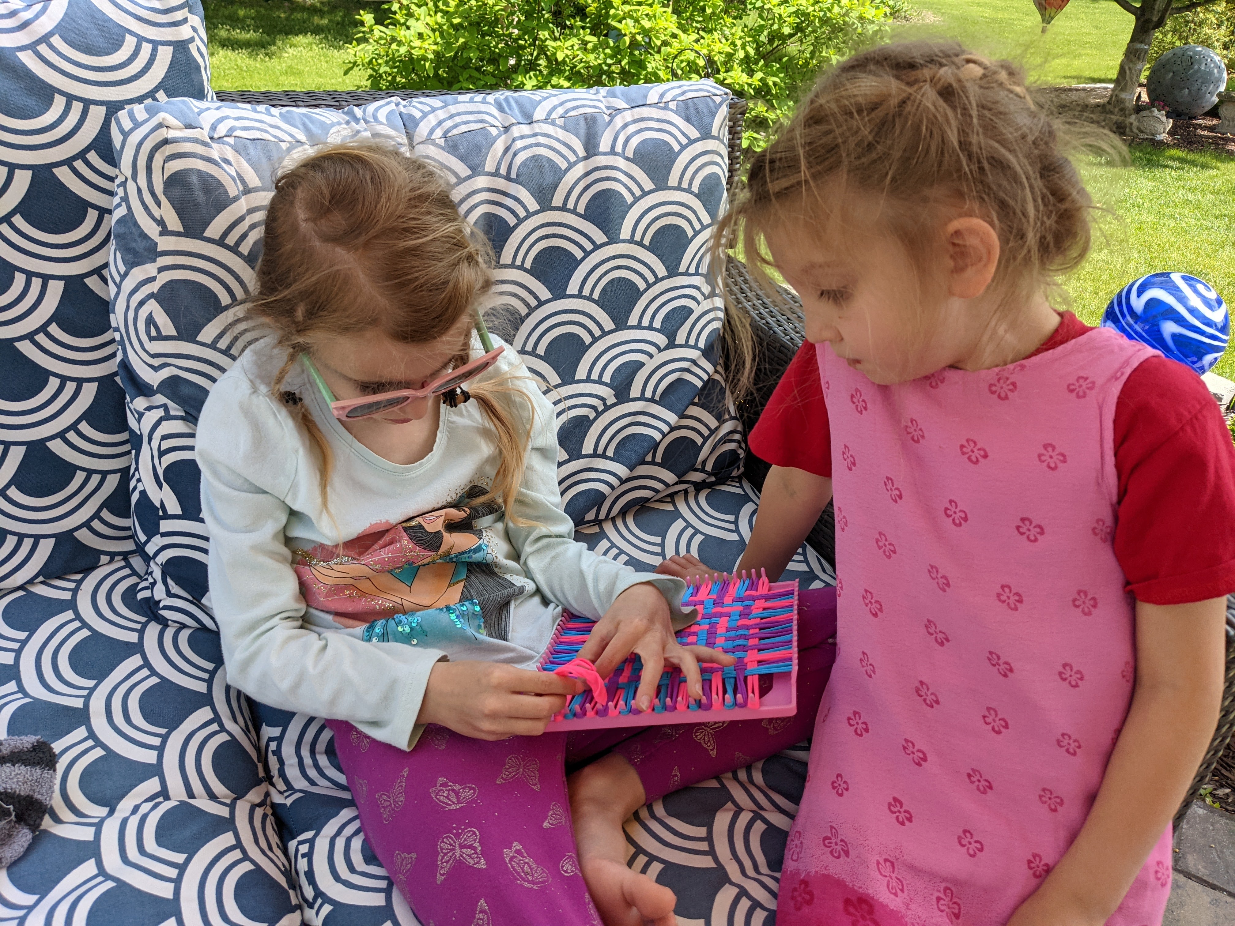 May 27, 2021: If I’m going to give a bunch of potholder gifts to people, I’m going to have to step up production. I started teaching Finley today. She wasn’t as focused as I am, but I think she got the gist of it. I might be giving Papa his water bottle warmer a few days later than I hoped.