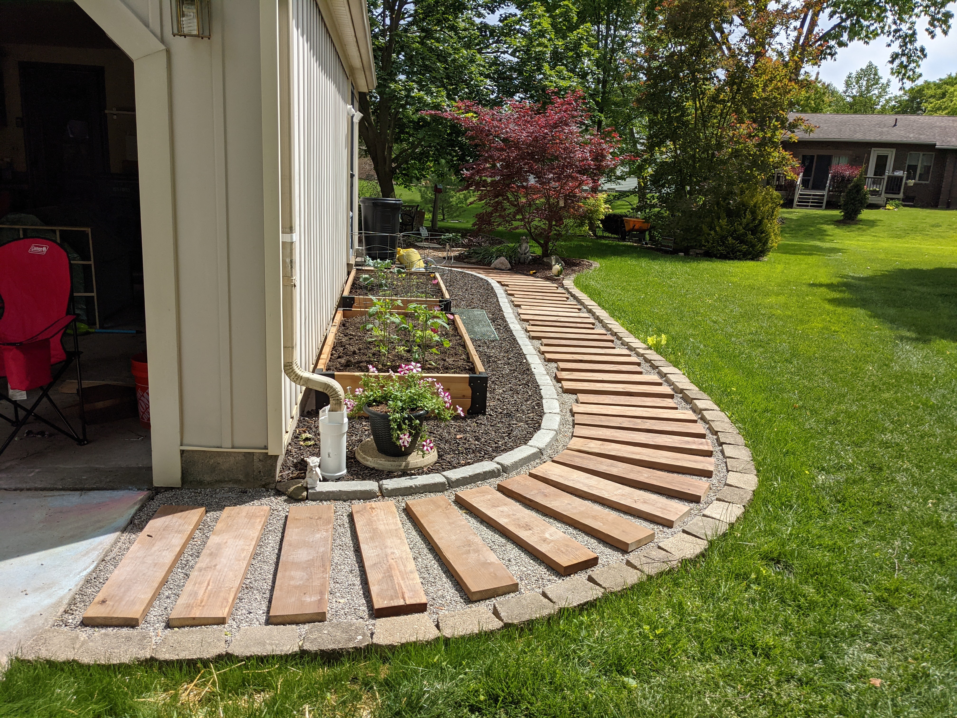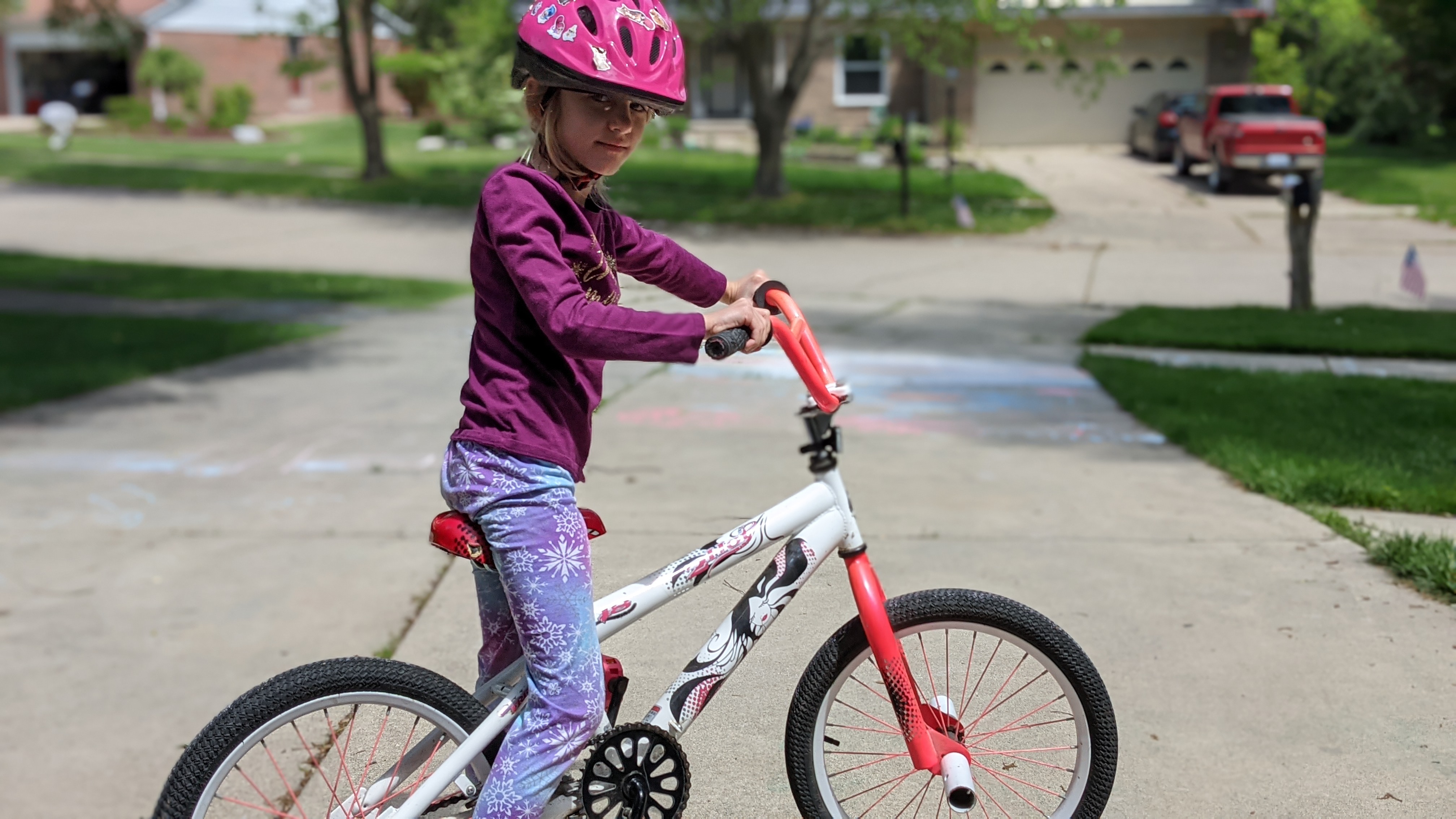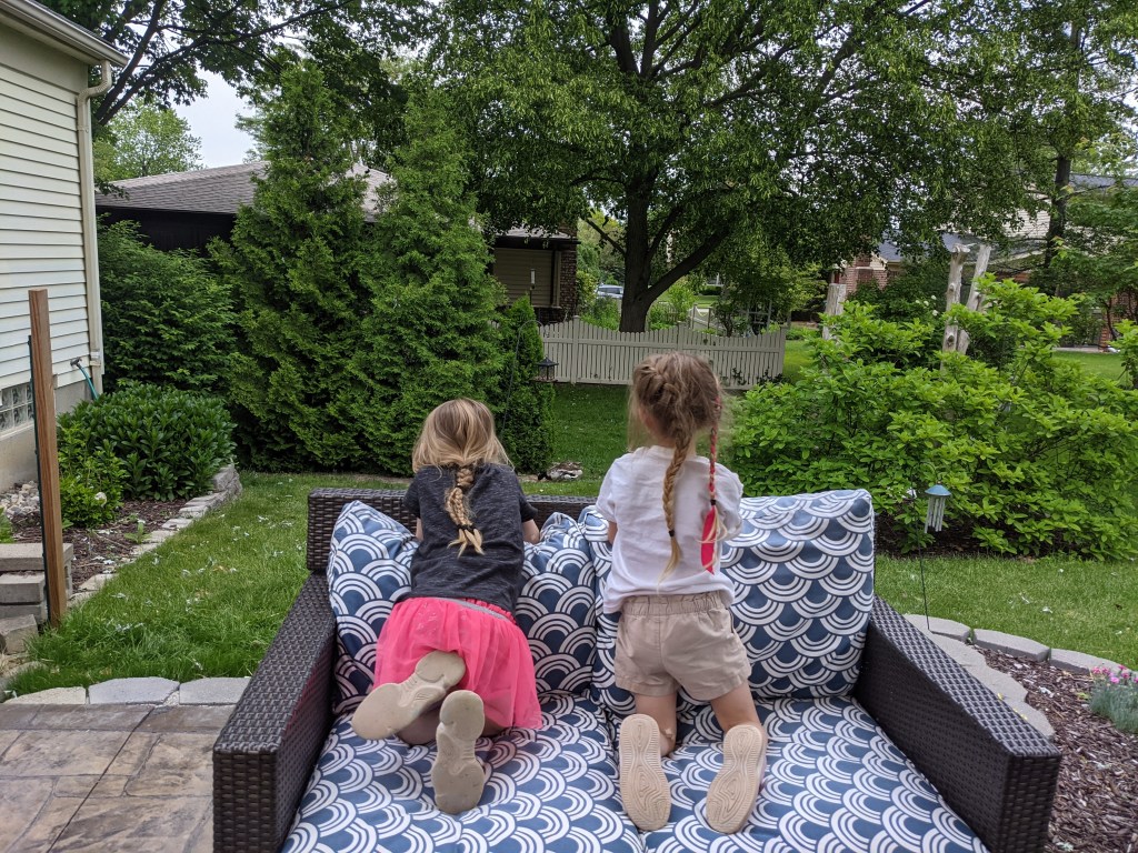 May 31, 2021: On holidays we don’t have school and mommy and daddy don’t work. But on this holiday we all worked outside all day long. Mommy and daddy worked on the path, and Jameson and I worked on washing our bikes and decorating the driveway. We have a lot more bikes because Jameson got her old new bike back from papa’s house and I started riding Jameson’s bike. Plus we have my old bikes AND our scooters! So much for relaxing on the day off!