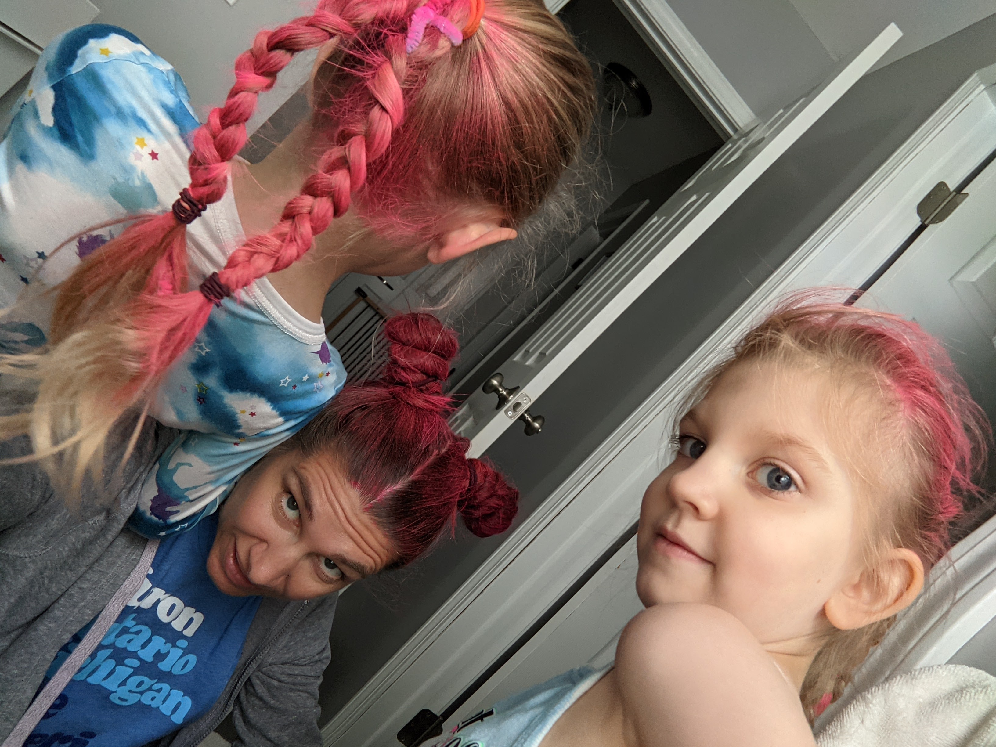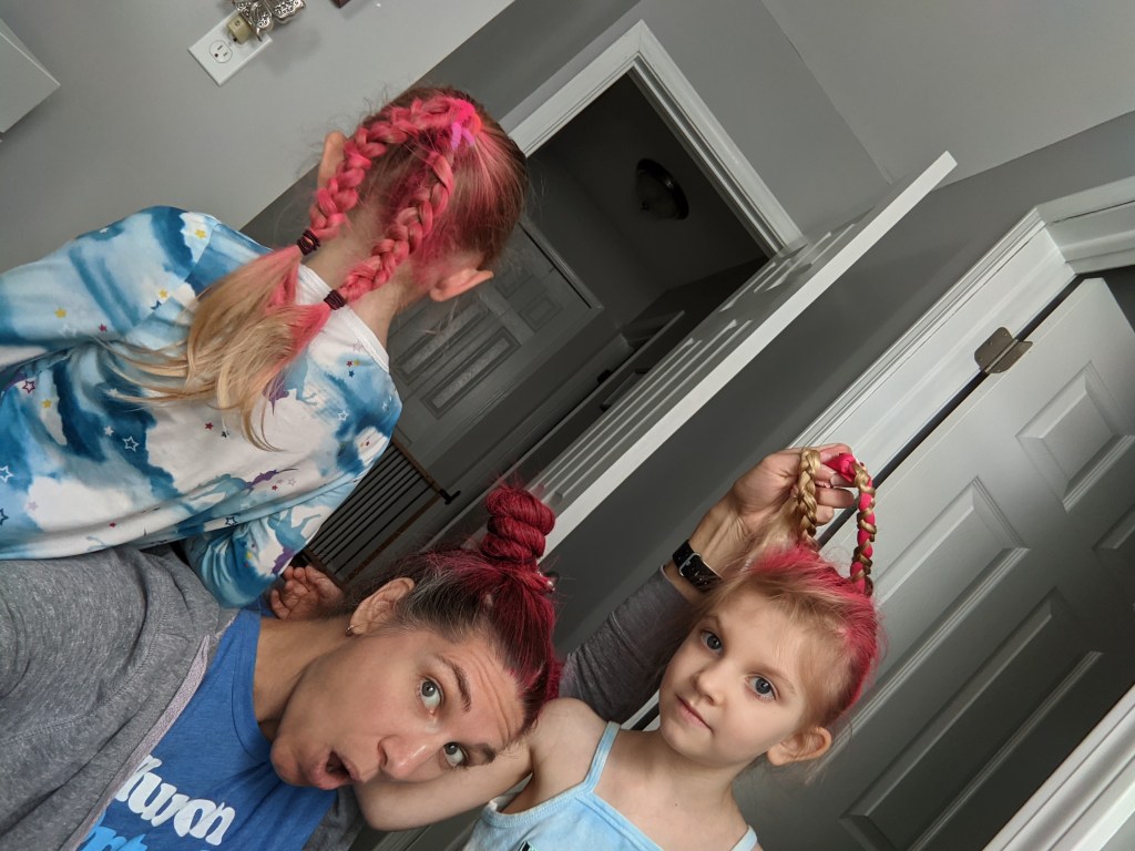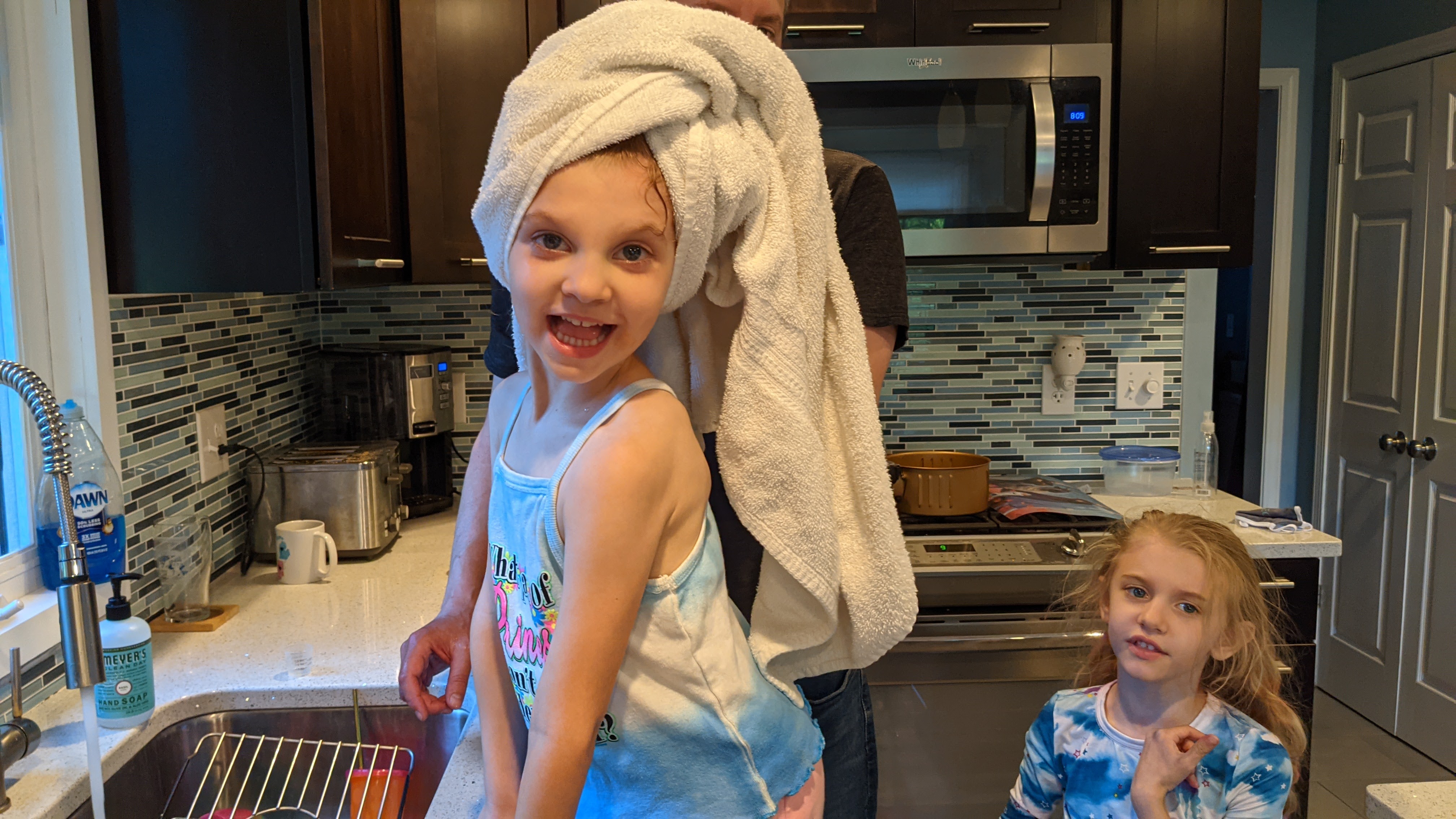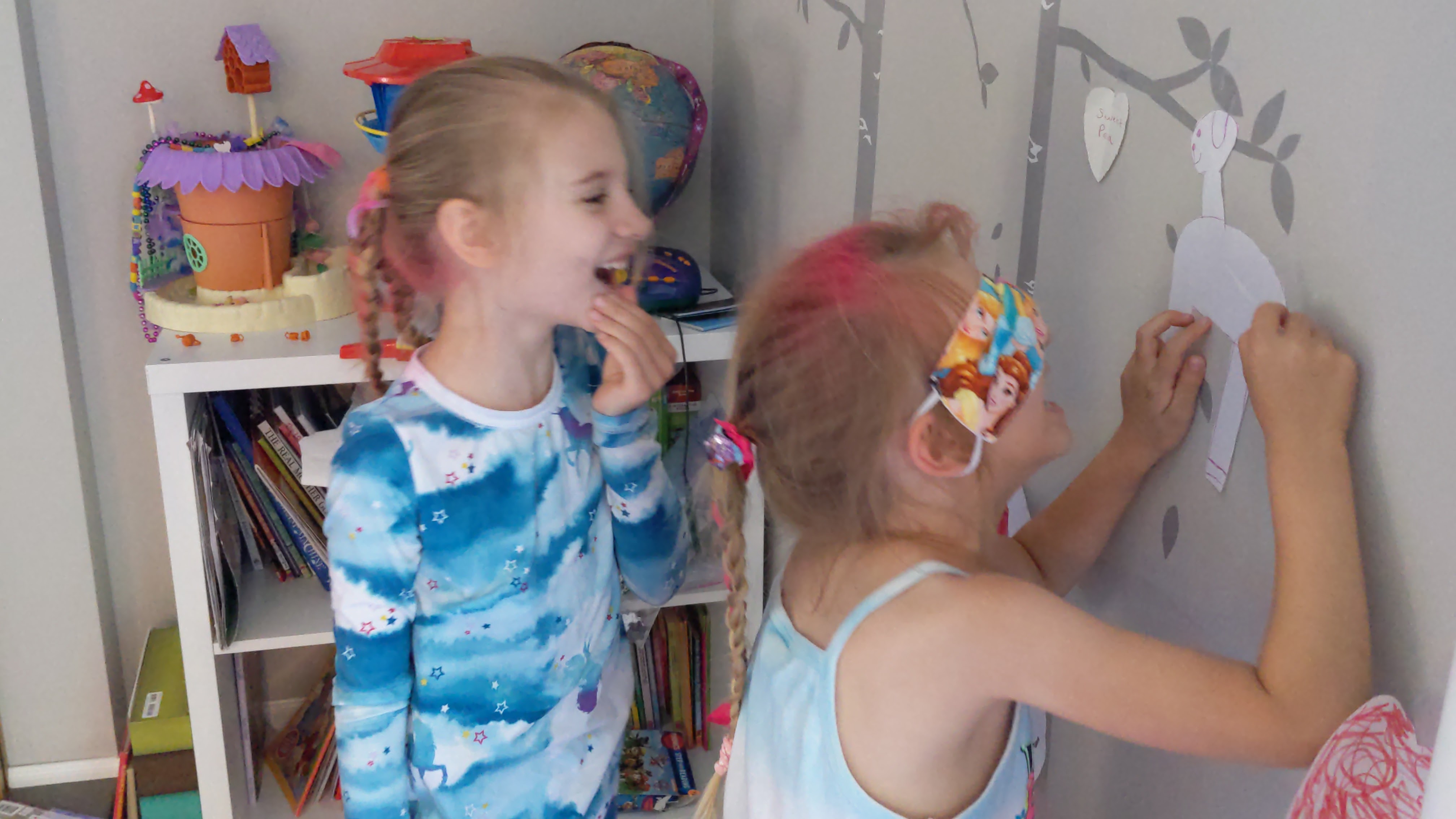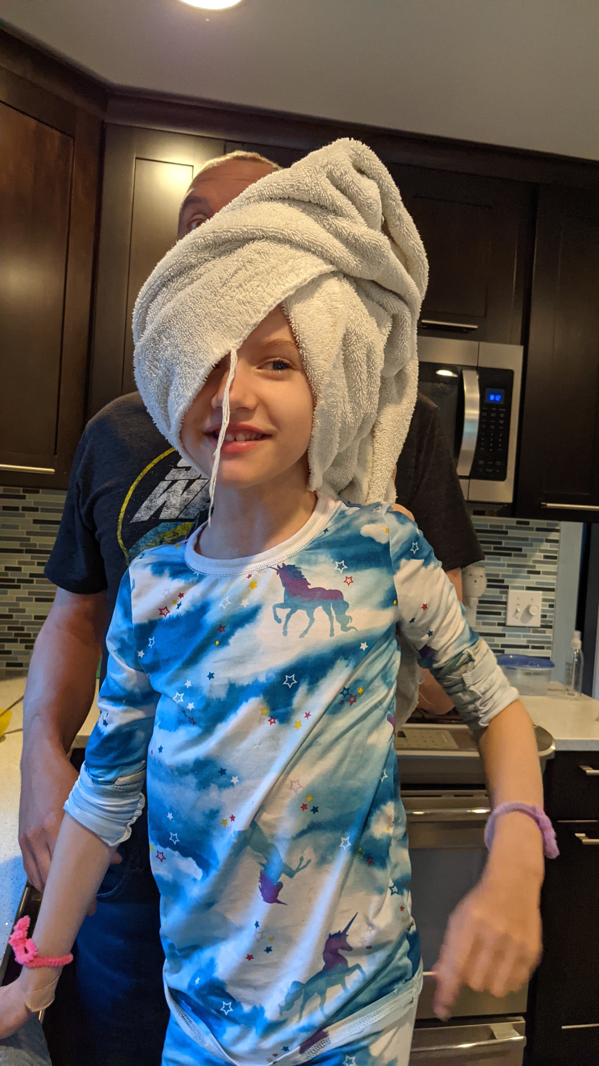June 15, 2021: Spirit Week continued today with Crazy Hair Day. Mommy and daddy even joined in the fun. It’s fun to have silly hair at first, but then you forget about it and wonder why people are giving you silly looks on your walk. Oh, and Jameson made a Pin the Tail on the Puppy game. So funny!