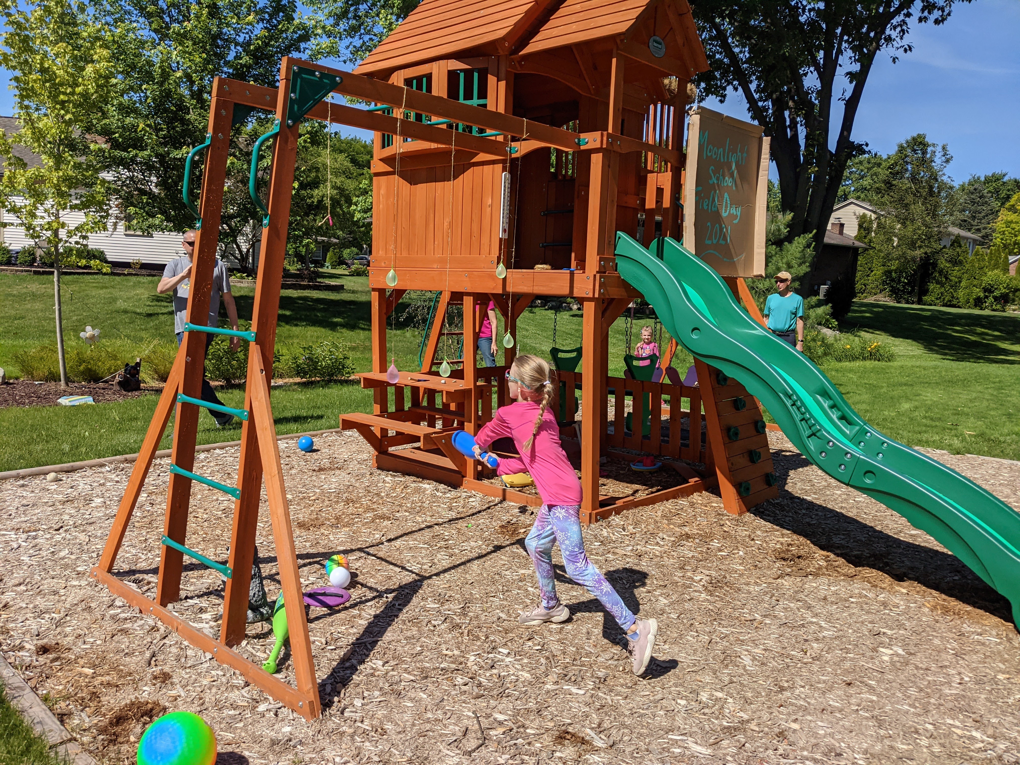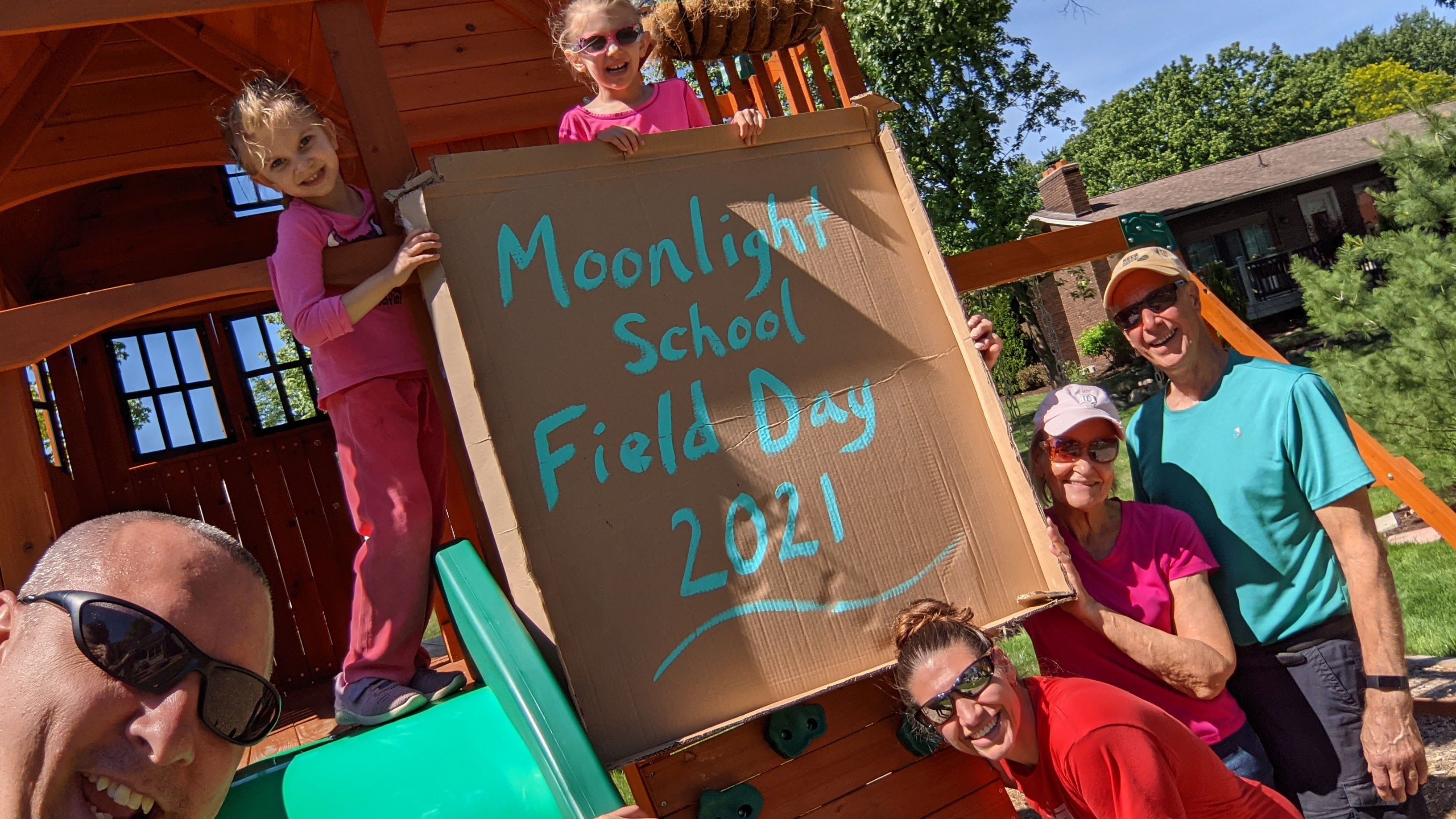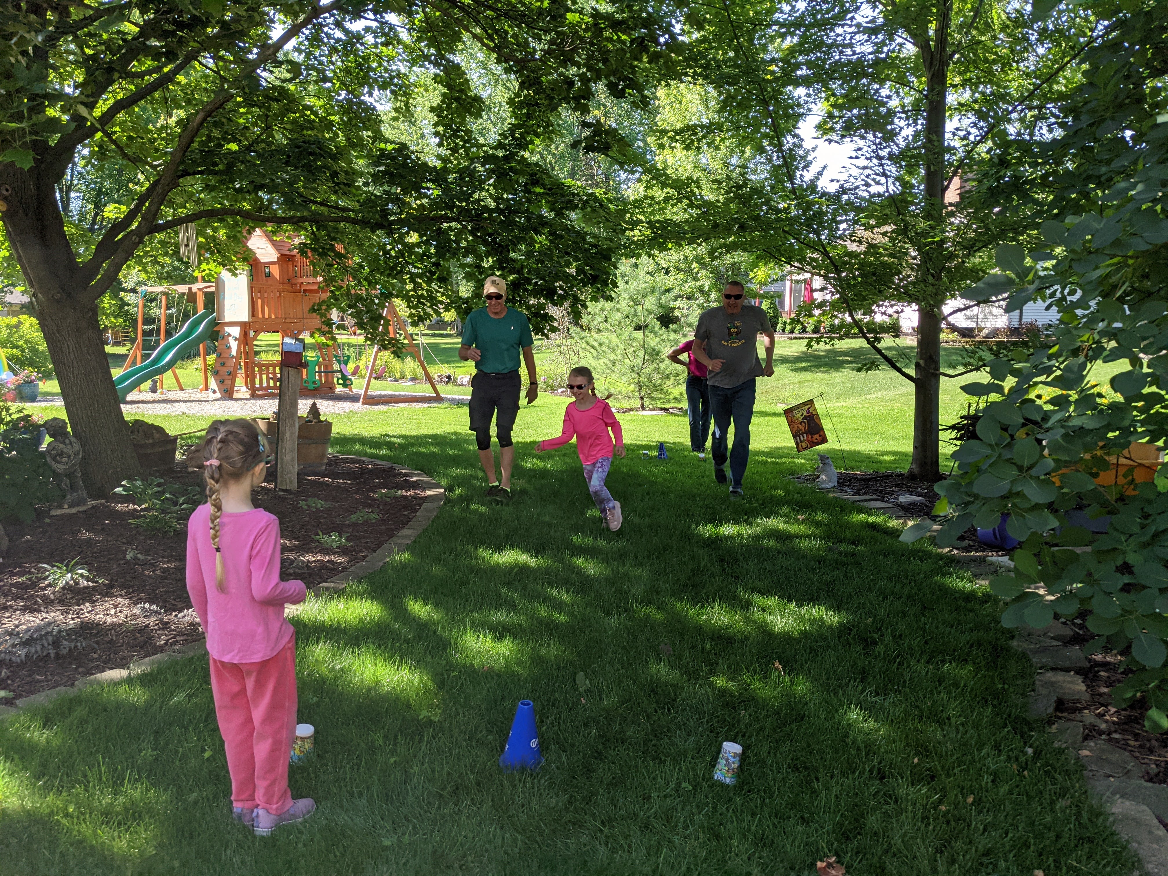 June 17, 2021: We were supposed to do Field Day tomorrow, but it’s supposed to rain a whole bunch so we bumped it up a day. Luckily mommy and daddy had all the field events planned out and ready to go. We did three-legged race, shuttle run, water balloon toss, shoulder-to-shoulder ball race, train run around the block, fill the jug relay, spoon relay, and the grand finale obstacle course. We didn’t keep score, but I’m pretty sure the fast kids beat the slow grown-ups.