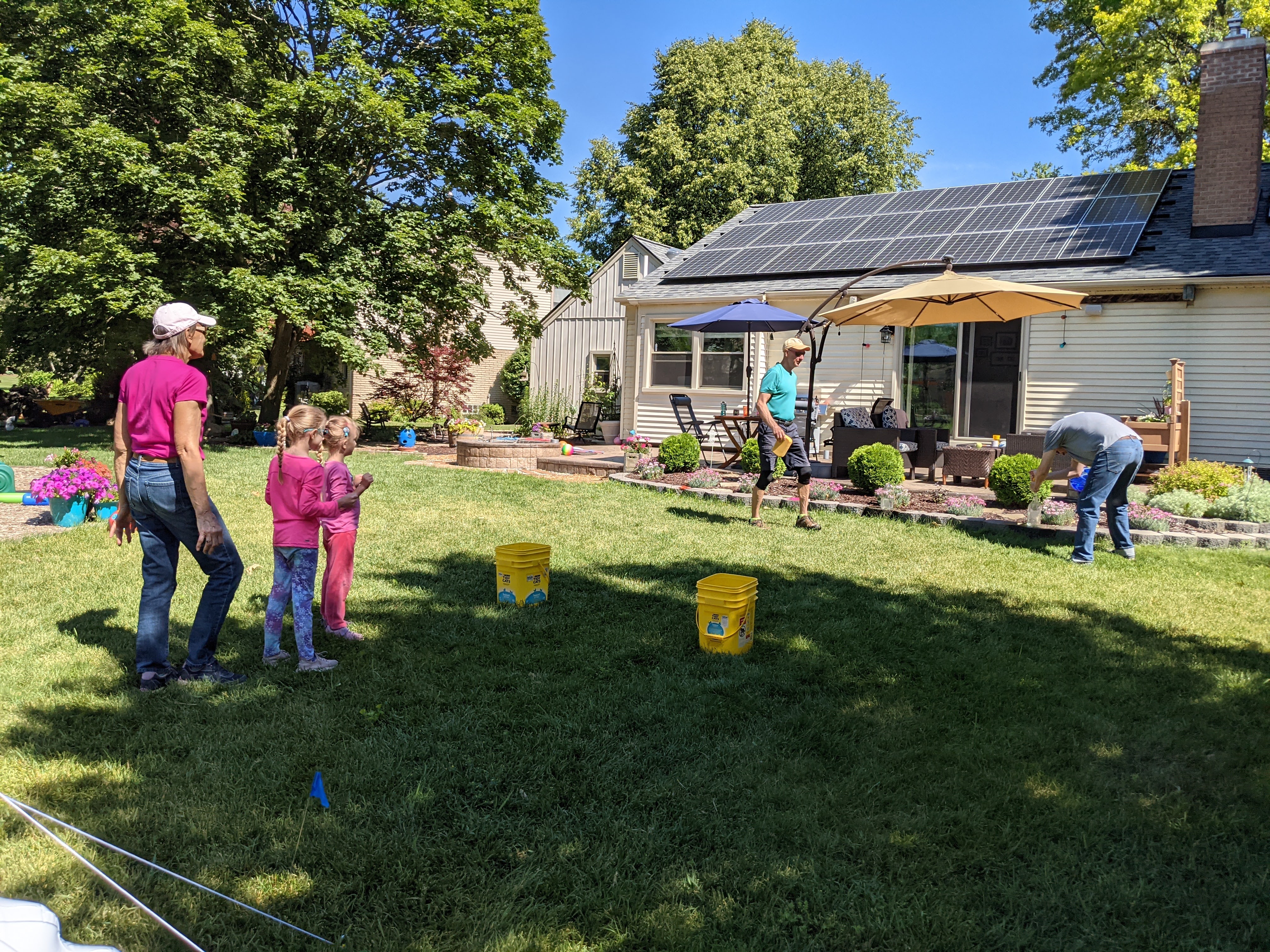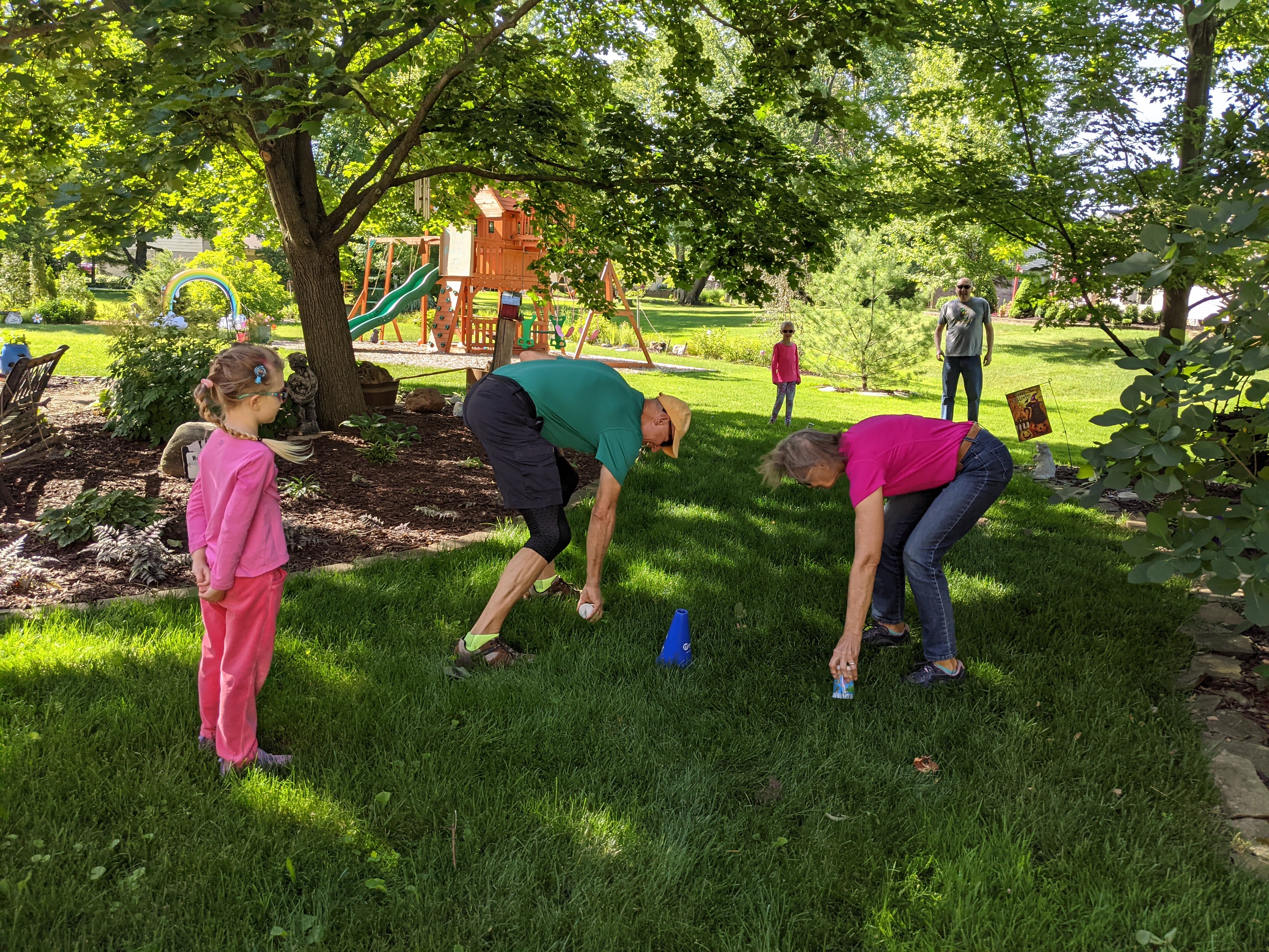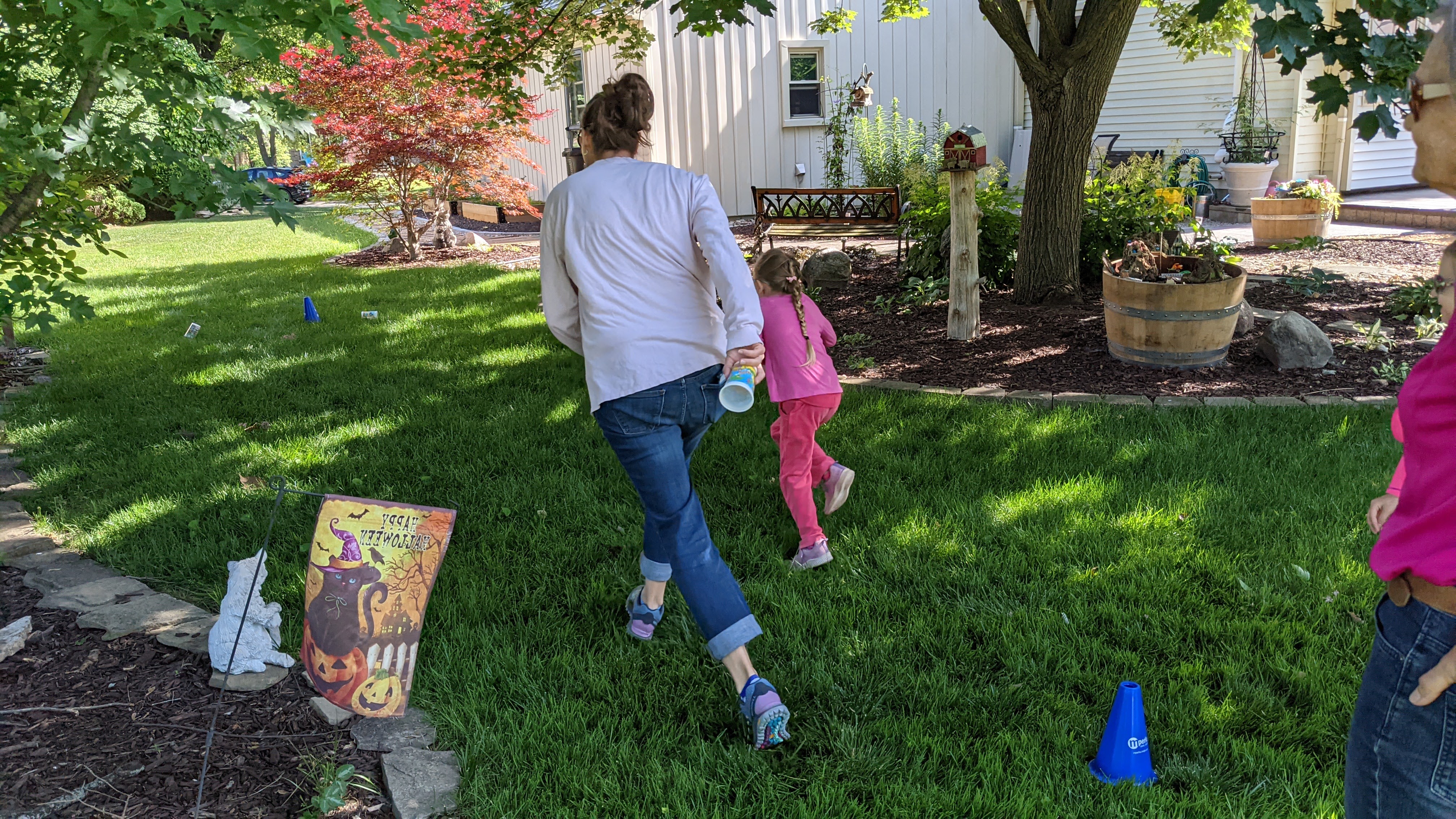 June 17, 2021: We were supposed to do Field Day tomorrow, but it’s supposed to rain a whole bunch so we bumped it up a day. Luckily mommy and daddy had all the field events planned out and ready to go. We did three-legged race, shuttle run, water balloon toss, shoulder-to-shoulder ball race, train run around the block, fill the jug relay, spoon relay, and the grand finale obstacle course. We didn’t keep score, but I’m pretty sure the fast kids beat the slow grown-ups.