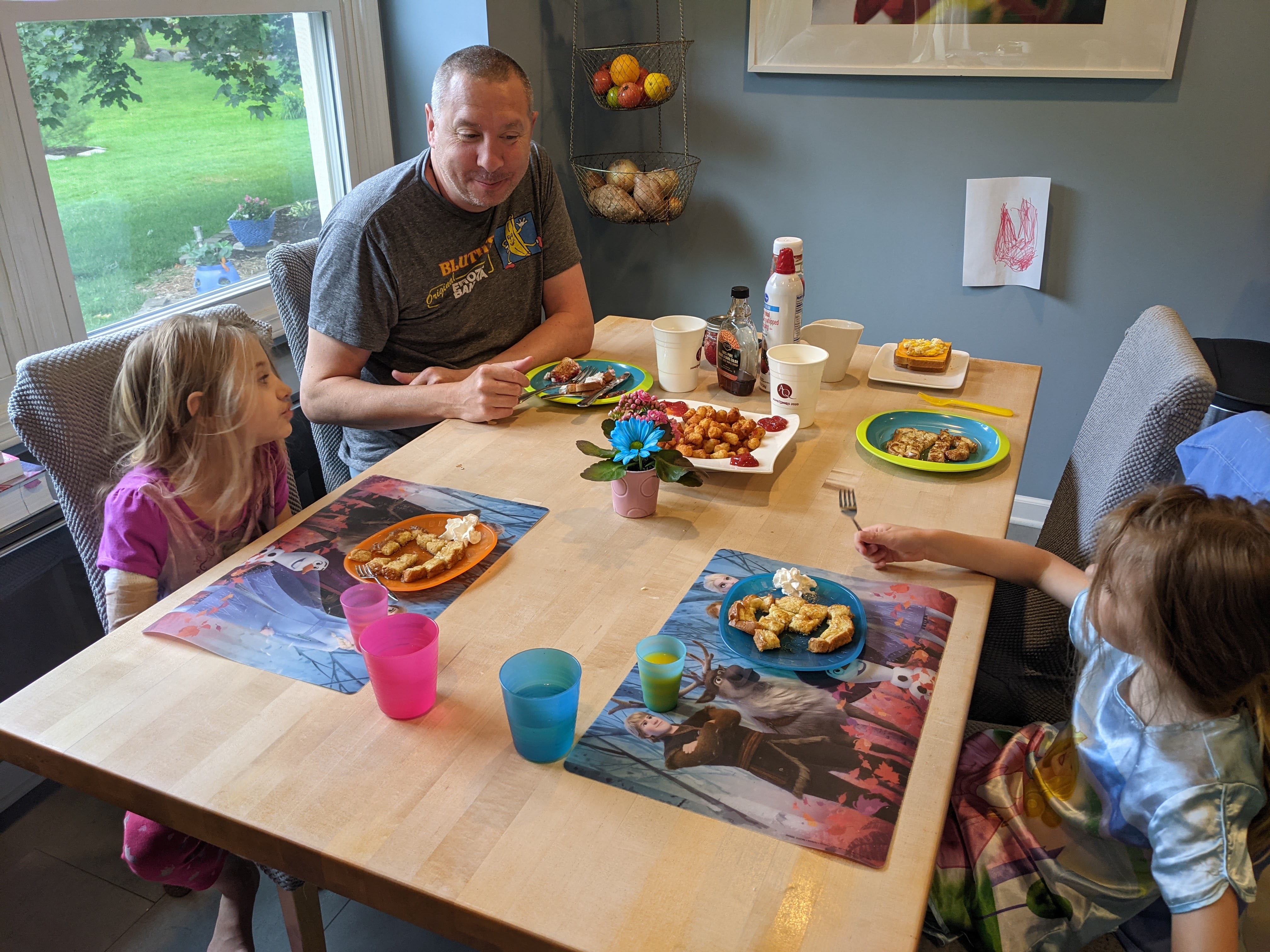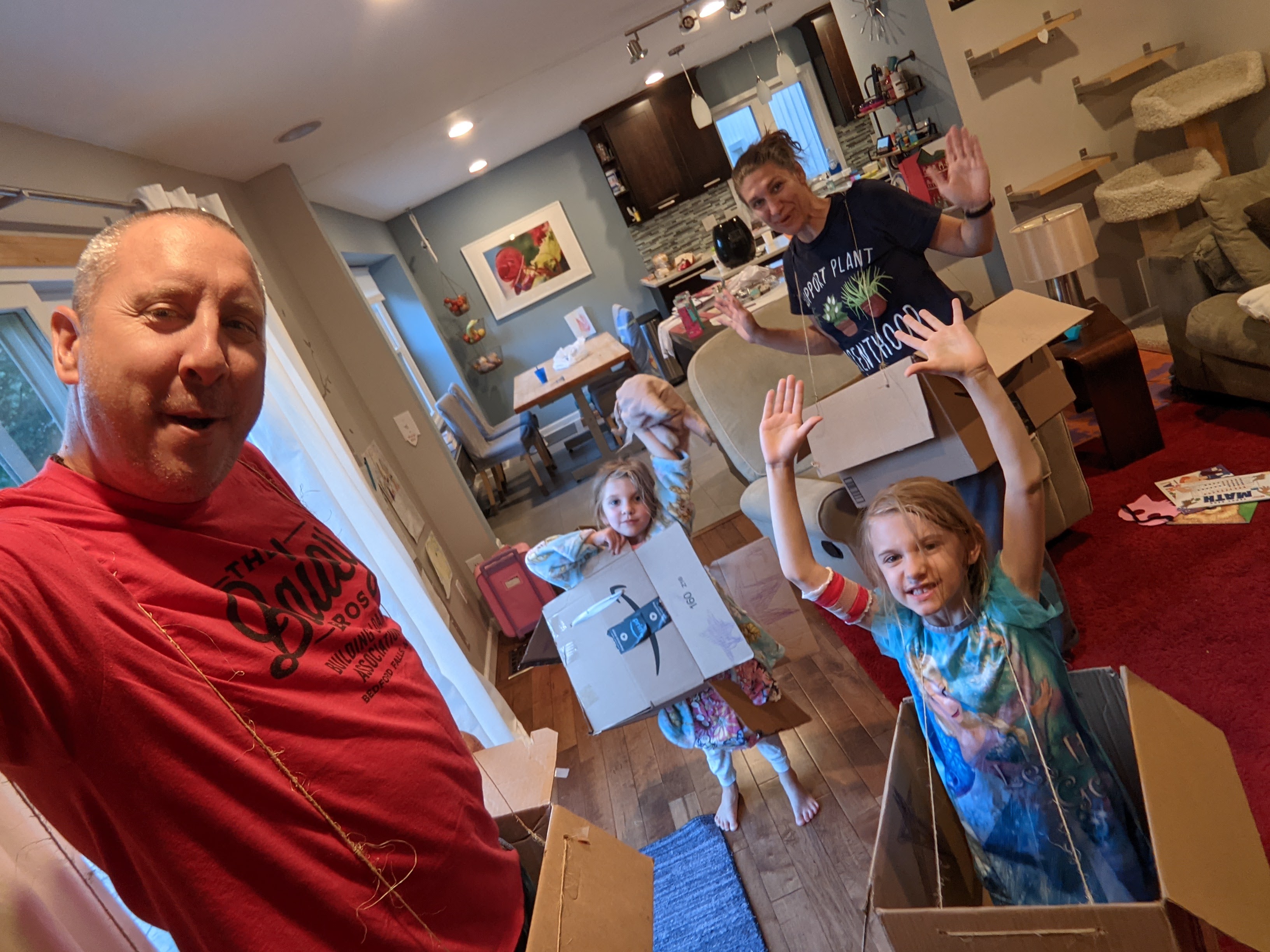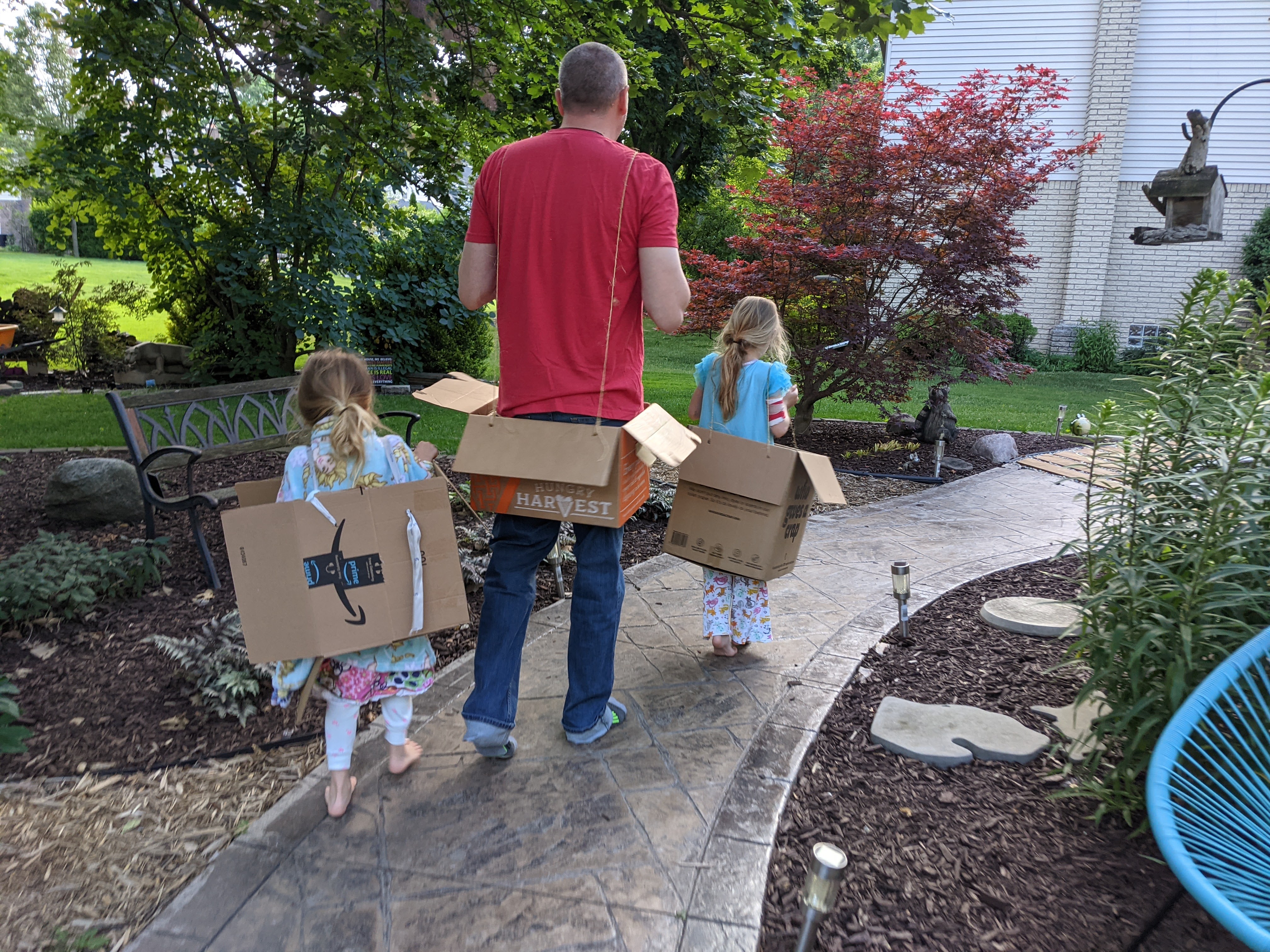 June 20, 2021: Poor daddy. He hasn’t been able to go to the cottage since before sick week started. He really misses it and it it makes him sad. I thought of the perfect Father’s Day present. A pretend trip to the cottage! We made him breakfast and packed his suitcase while he was still in bed, went for a long car ride, swam in our kiddy pool lake, and even built boats out of cardboard. I hope it made him a little less sad. Happy Father’s Day to the best dad in our house!!