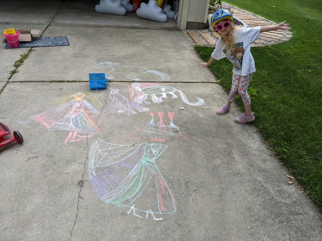 June 21, 2021: Summer vacation officially started today! We began the day with watching TV and playing Barbies, and finished with chalk drawing and potholders in the driveway. This is the life!