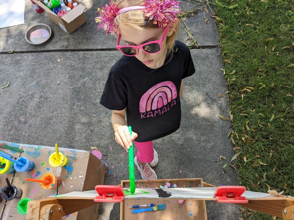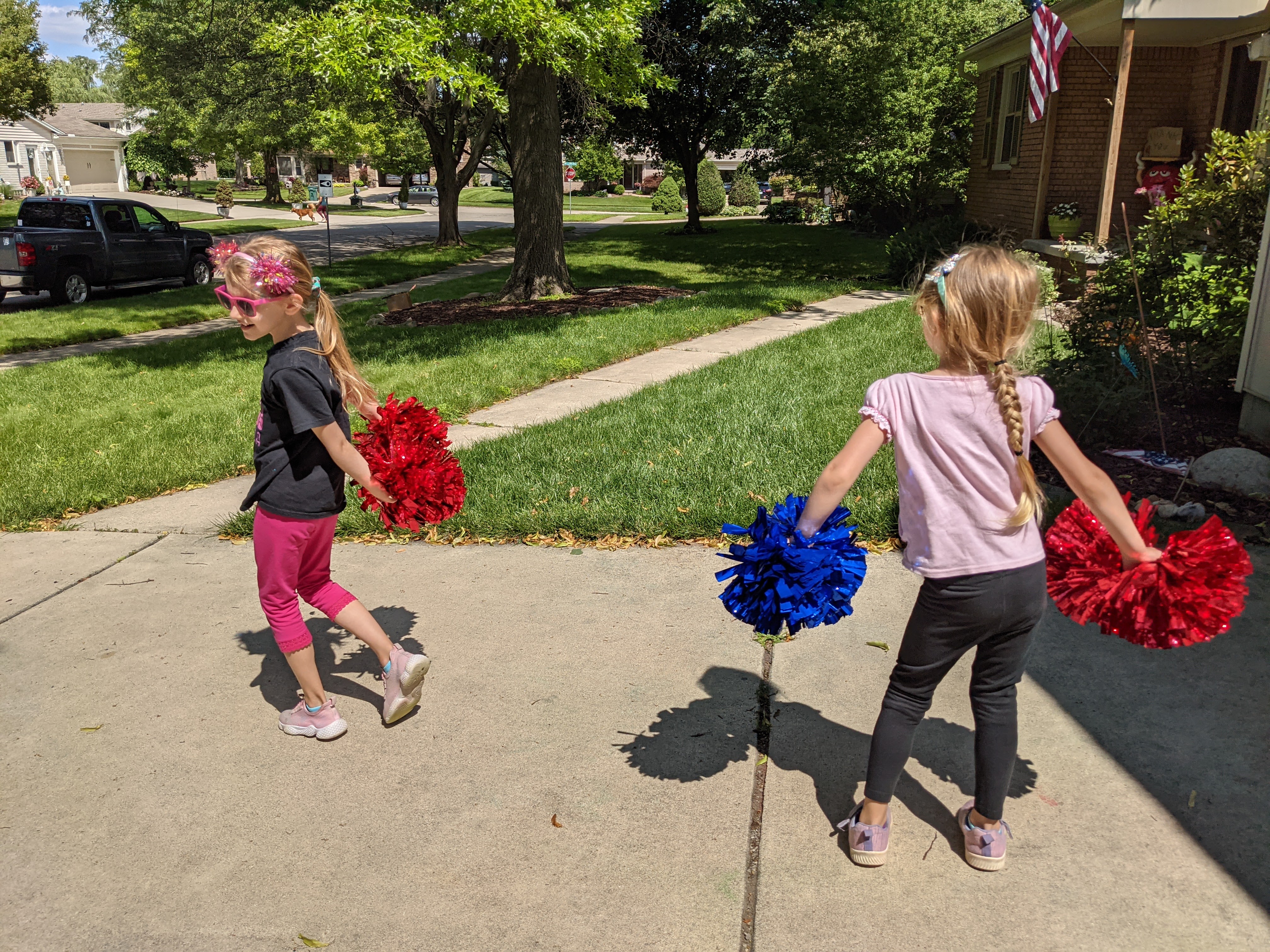 July 21, 2021: Art brings people together. We like to bring them together while they walk by our driveway. Our sidewalk chalk drawings have become pretty popular in the neighborhood. People stop by all the time to thank us for our drawings and mommy’s quotes and funny jokes. Sometimes they even bring us presents, like chalk or pom poms. It’s not why we do it, but we’re glad people like it!