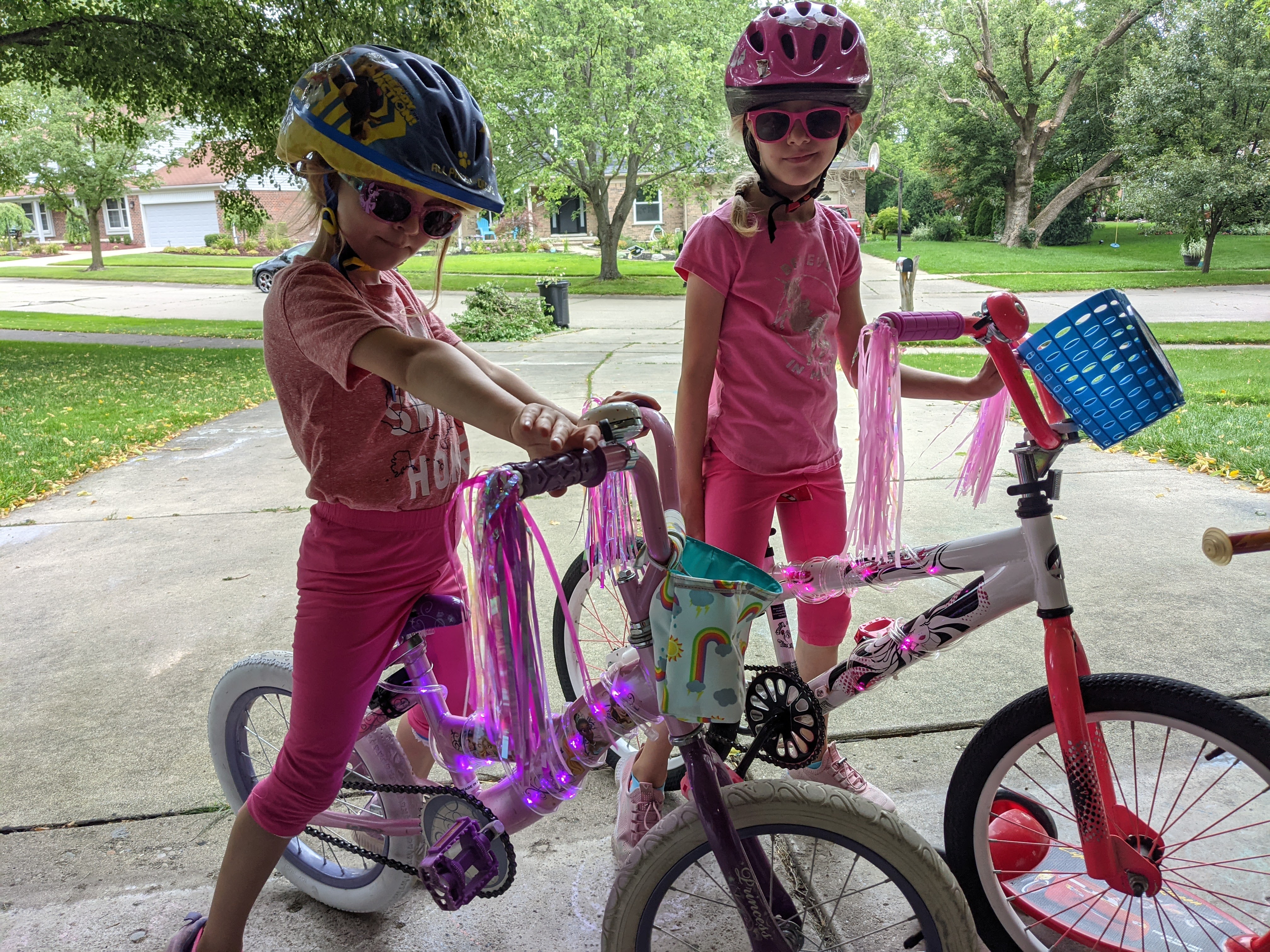 August 1, 2021: A long time ago, grammie and papa bought us lights to put on the wheels of our bikes. The only problem was the lights were made for grown-up bikes. Not sure why, grown-ups are boring. Anyway, we’ve been asking daddy to help us figure out a workaround, but he’s been busy. Today we convinced him he wasn’t too busy. Now we can ride in the dark! We did a test drive before bed. Our bikes look so cool.