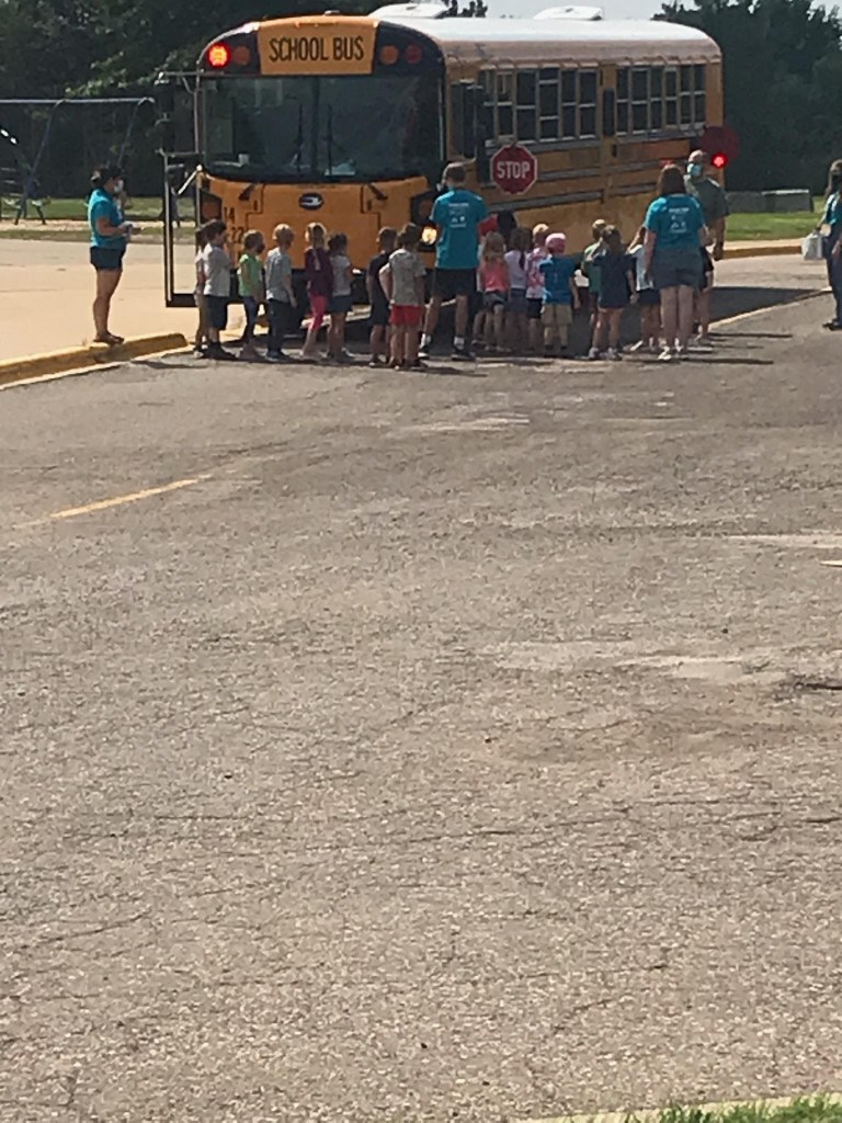 August 4, 2021: OK, I’ve been obsessed with buses since I was a little kid. After mommy and I used to drop Jameson off at school we’d go looking for school buses driving around. Have you read that funny book ‘Don’t Let the Pigeon Drive the Bus!’ Oh my gosh, it’s so good. Anyway, I’ve always wanted to ride the bus and today at Safety Town we practiced riding the bus safely! I felt like such a big kid! Too bad I don’t get to ride the bus until high school. Is that a long way off?