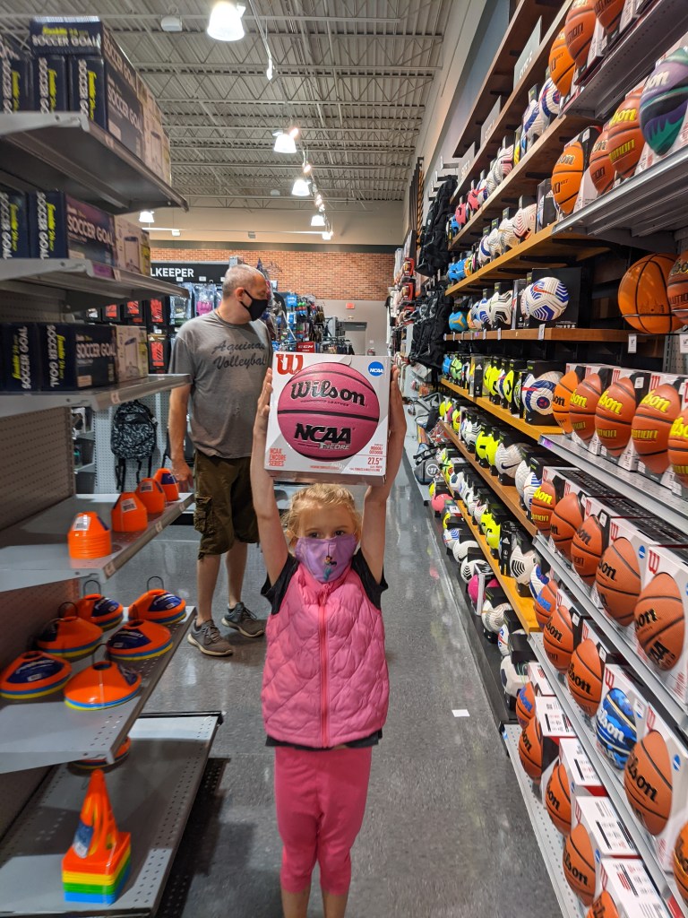 August 7, 2021: My cousin Cici is super nice and whatever she does is cool. She loves basketball and is really good at it. After shooting hoops in the park last week, I told mommy I want to play basketball too. This morning she surprised us and let us pick out our own basketball balls! I got pink and Fin got blue. Now we need someone to teach us. Mommy and daddy will probably just have us watch You Tube tutorials. Too bad Cici lives so far away!