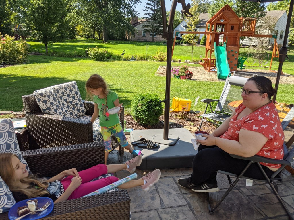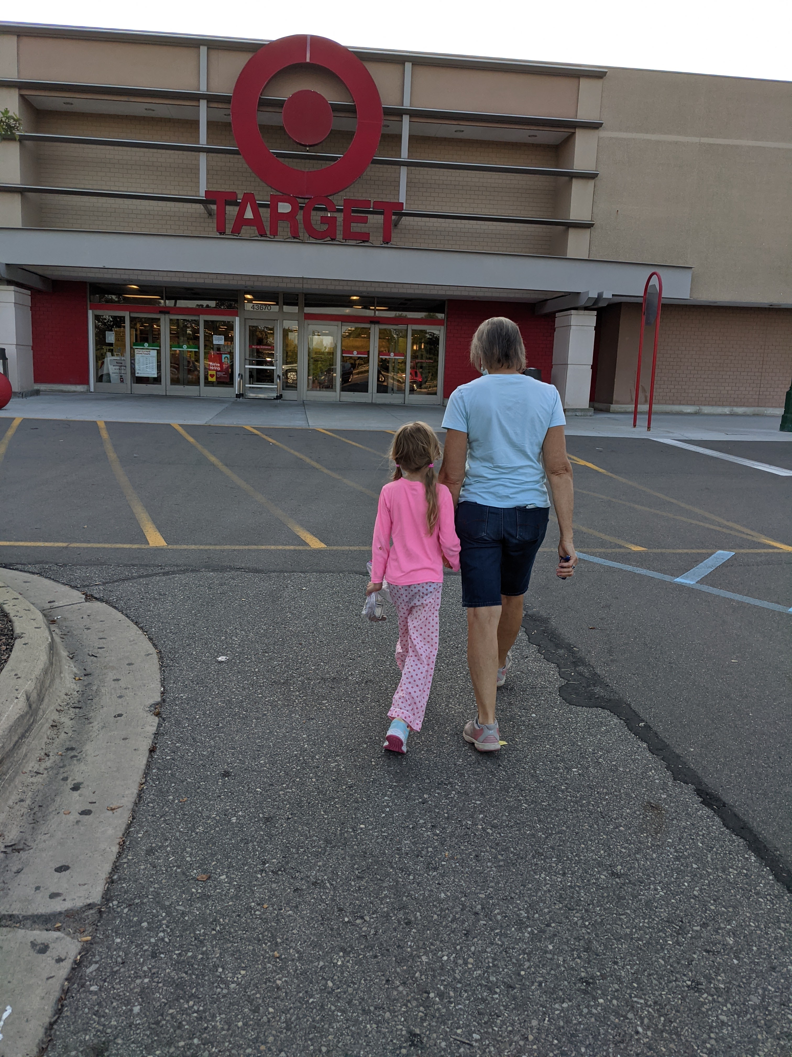 August 23, 2021: We didn’t even get out of our pajamas. We just grabbed grammie on the way. That’s what you need to do to beat the shopping crowds. I needed to start looking for Finley’s birthday present. I know just what I wanted to get her, but they didn’t have it. Oh well, mommy was able to find it online. I made her take my money. This is MY present to Finley. It’s important that I pay for it. Don’t worry, I changed out of my pajamas before mommy’s friend Christine came for a visit.