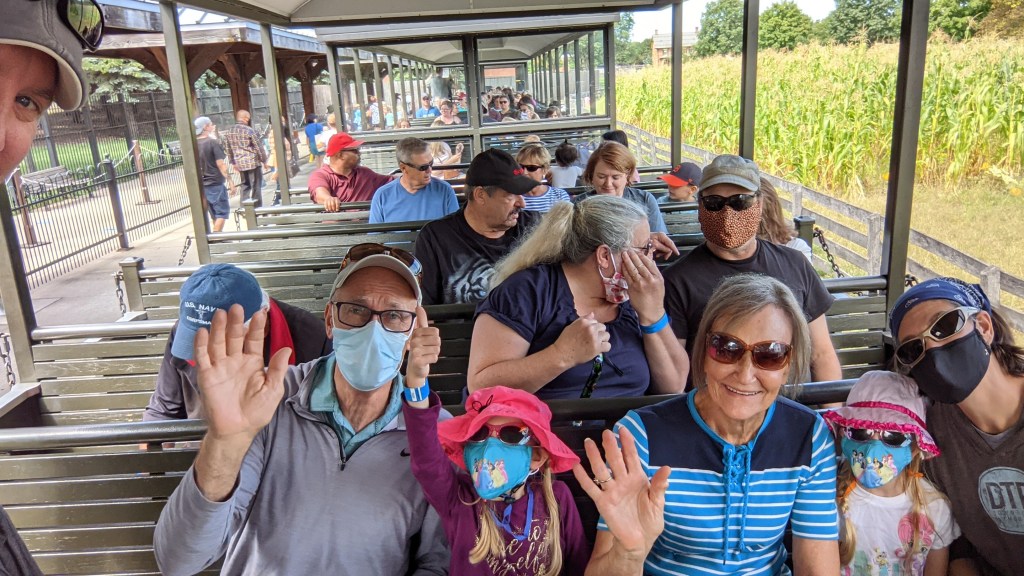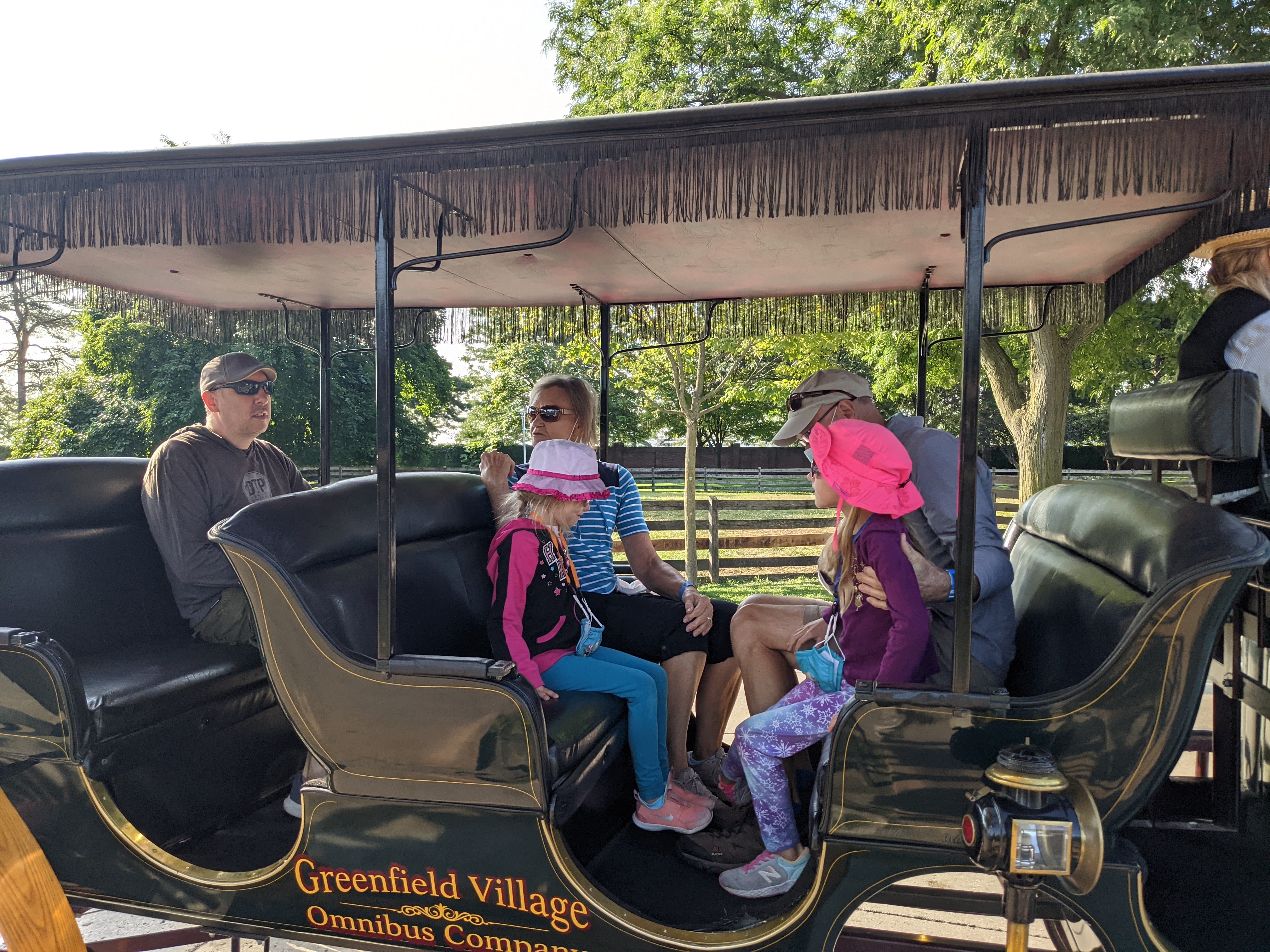September 3, 2021: We didn’t think it would be fair to go to Greenfield Village with grammie and papa without mommy. She’s been working hard all week while we have fun without her. So she finished her work early and came with us. We rode our second train this week! Daddy got stung by a bee, but he didn’t even cry. This week has been so much fun!