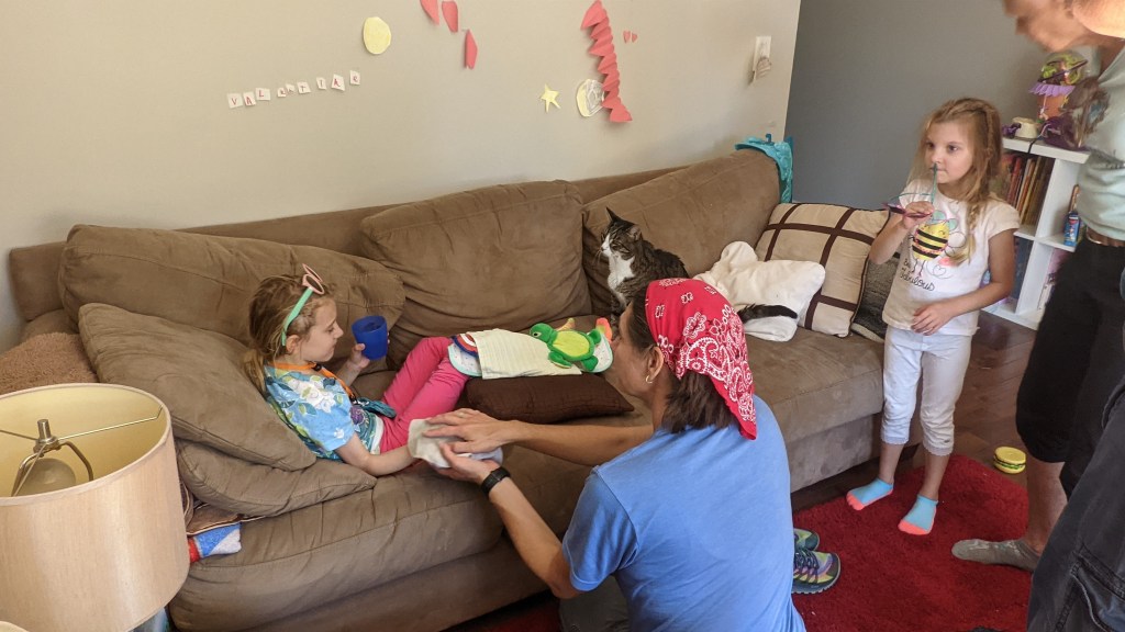 September 6, 2021: Falling off your bike hurts. Like, it really hurts. But, it feels a little better when your cat comes running up onto the couch to see if you’re okay and then headbutts your hurt leg. Harley is the best! Getting hurt wasn’t part of the plan today. All we were trying to do was have a lot of fun on the last day of summer vacation. You know, bike ride, ice cream, playing at the park, nerf darts…guess I have a cool conversation starter for school now. Besides the bike issue, the rest of the day was great. Fin and I are sooooo excited about starting school tomorrow! It’s unbelievable. We are ready!