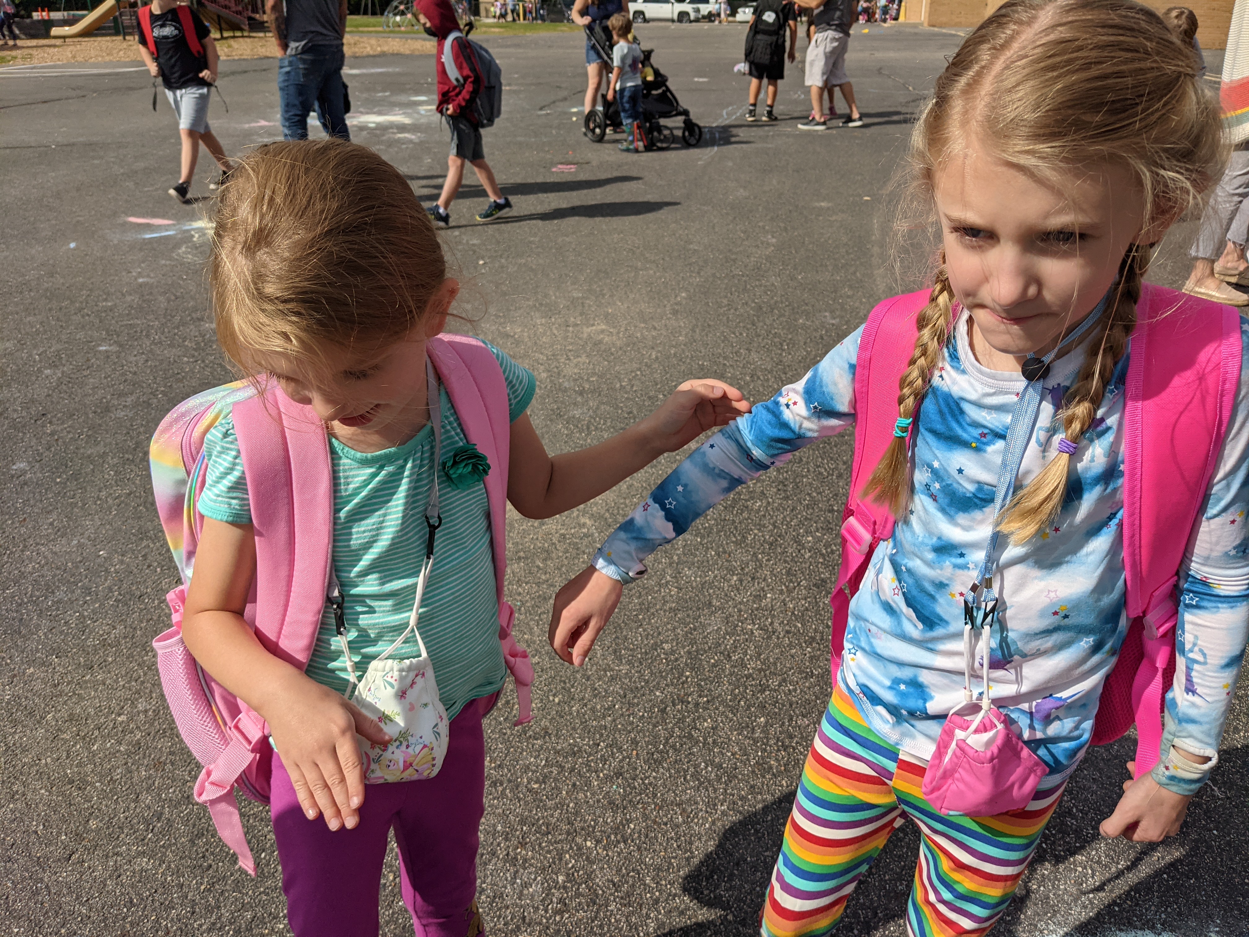 September 10, 2021: Mommy and daddy have been leaving notes in our snack and lunch boxes. It’s so exciting to get a note! Today I got an even cooler surprise. Jameson left two notes in my backpack! She passes my cubby on her way to the playground. When she was in class, she wrote the notes and sneakily drop them in my bag! I can’t believe she did that. Best sister ever.
