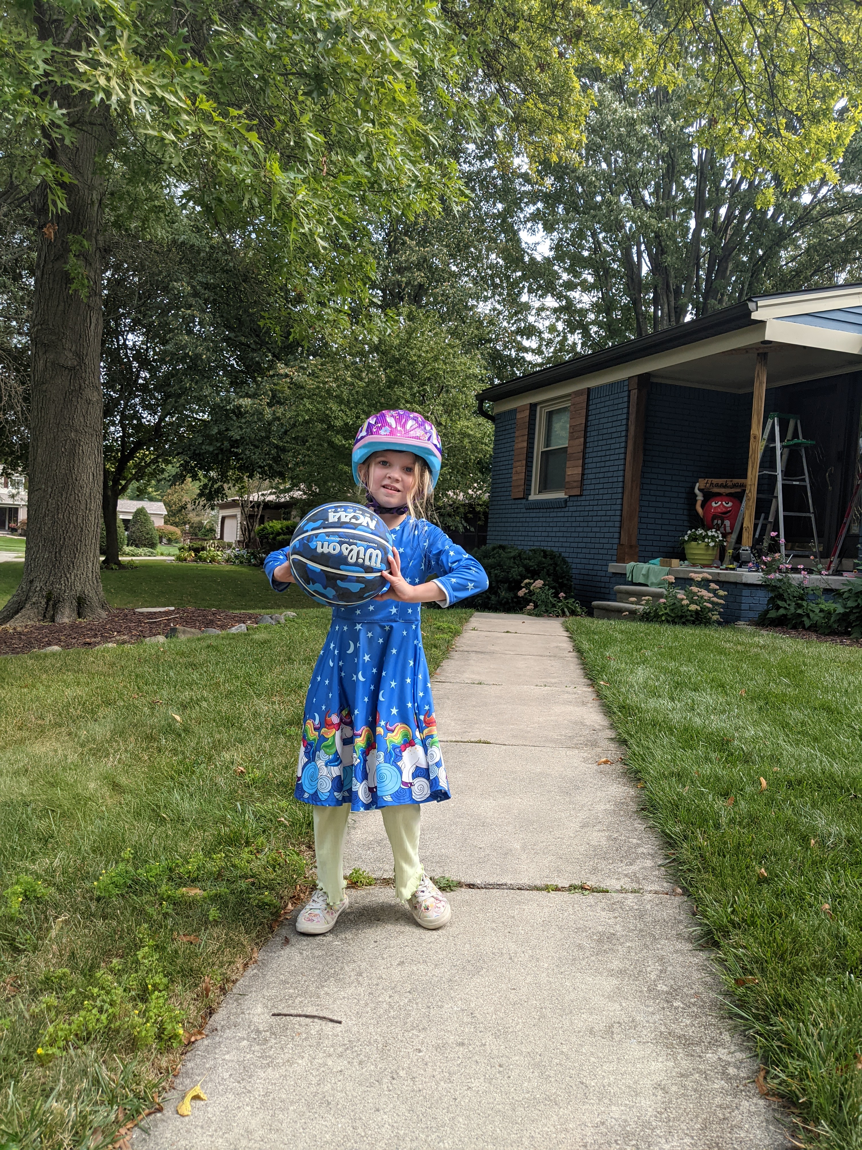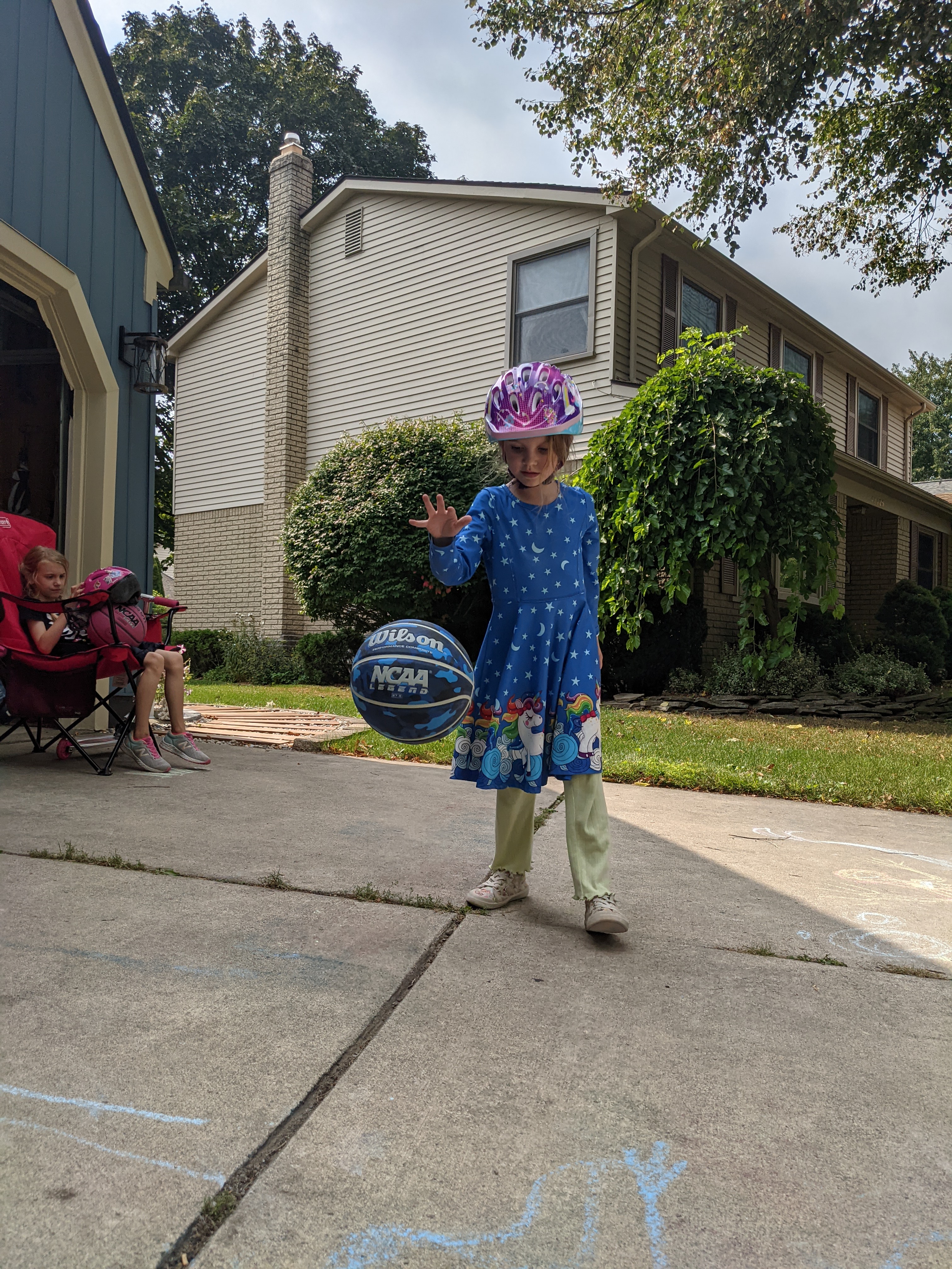 September 12, 2021: My best friend Linda surprised me and stopped by unexpectedly this afternoon! I was worried when we painted our house that she wouldn’t be able to find it, but she did. Thank goodness daddy was outside finishing the porch posts so she knew which house was ours. We told her all about school, read her some books, and then showed her our new basketball skills. I love surprise visits!
