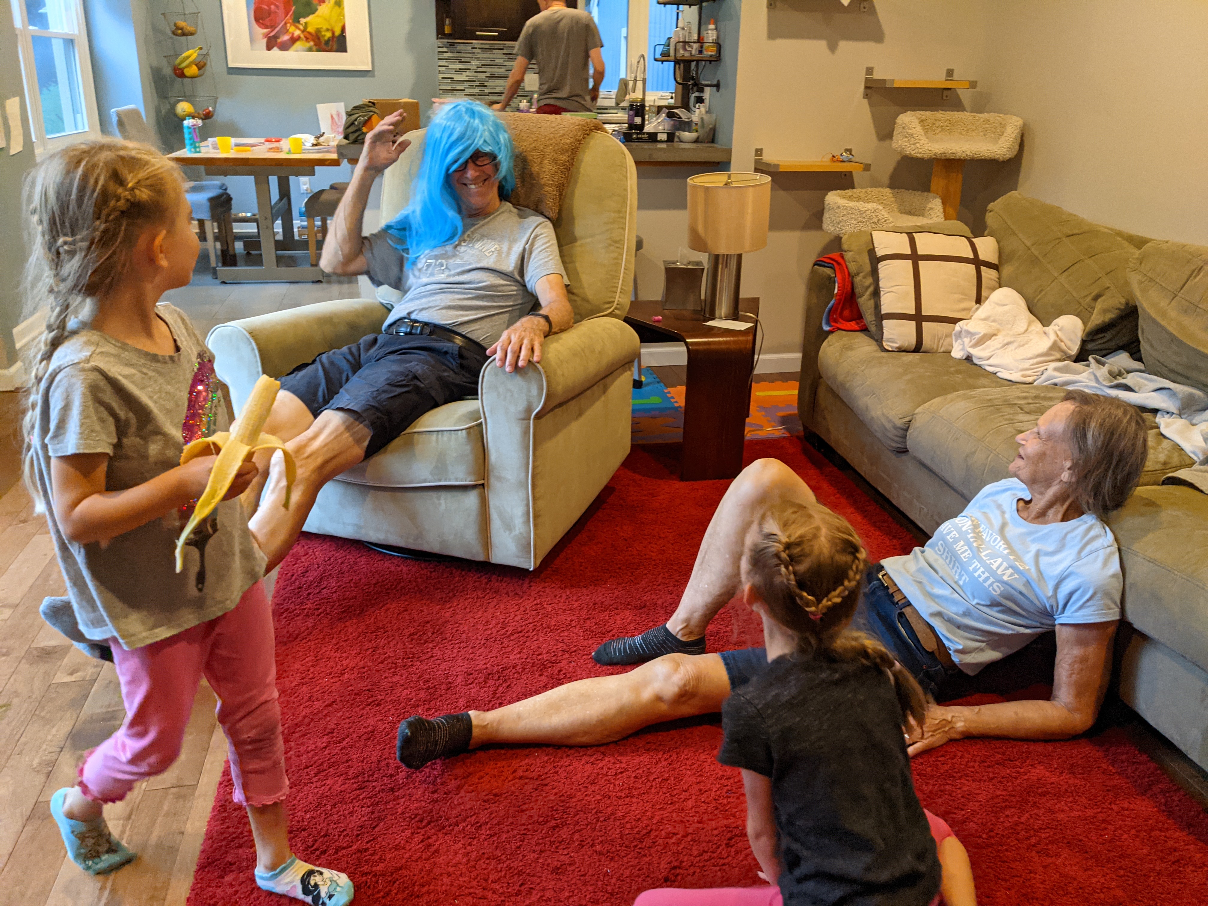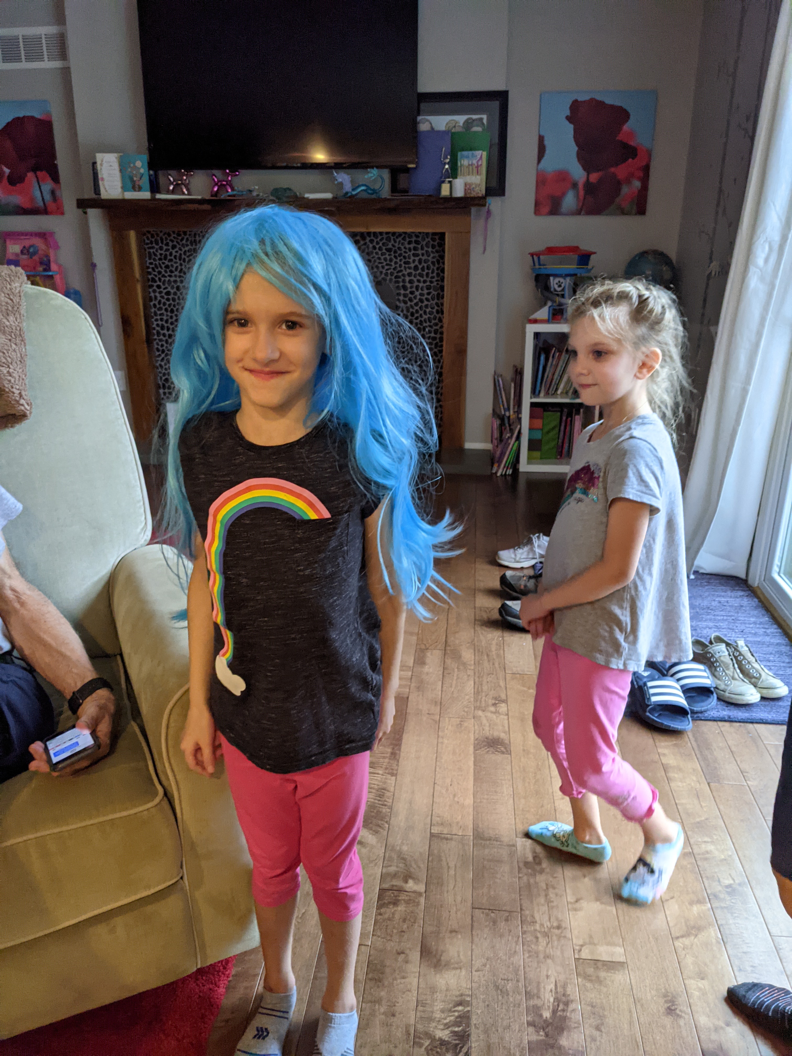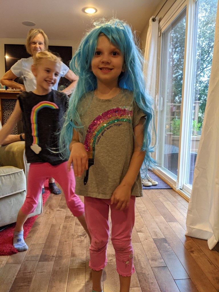 September 14, 2021: We are so geeked for Halloween. We already have our costumes! Jameson is going to be Raya and I’m going to be Sisu. But I’m going to be the human version of Sisu not the dragon…they haven’t made any costumes for Sisu yet – human or dragon – so daddy and I had to improvise. He ordered me all kinds of things but they aren’t all here yet. So far I have a sweatshirt and wig. We took turns trying the wig on. I look good in my wig, but I think papa wore it best!